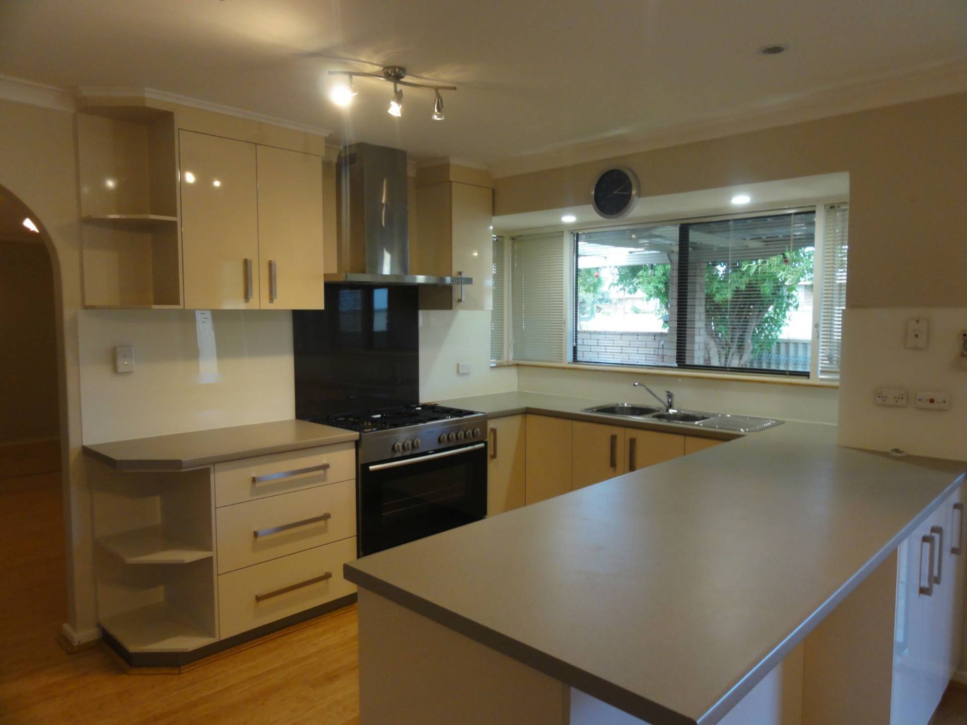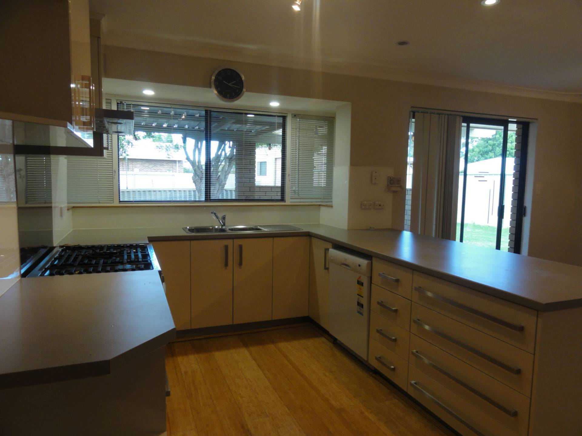 Beautiful modern kitchen with heaps of cupboard space, large gas oven and stove and dishwasher.