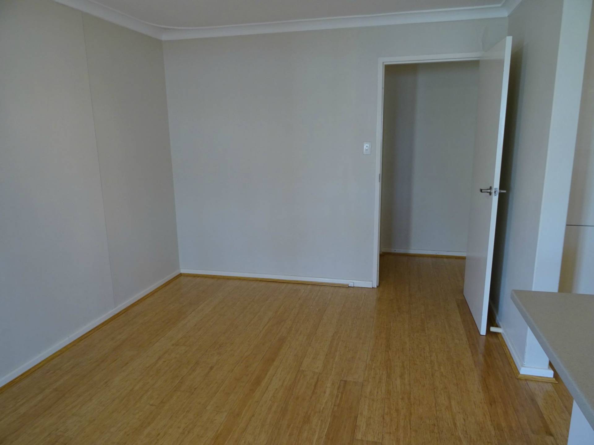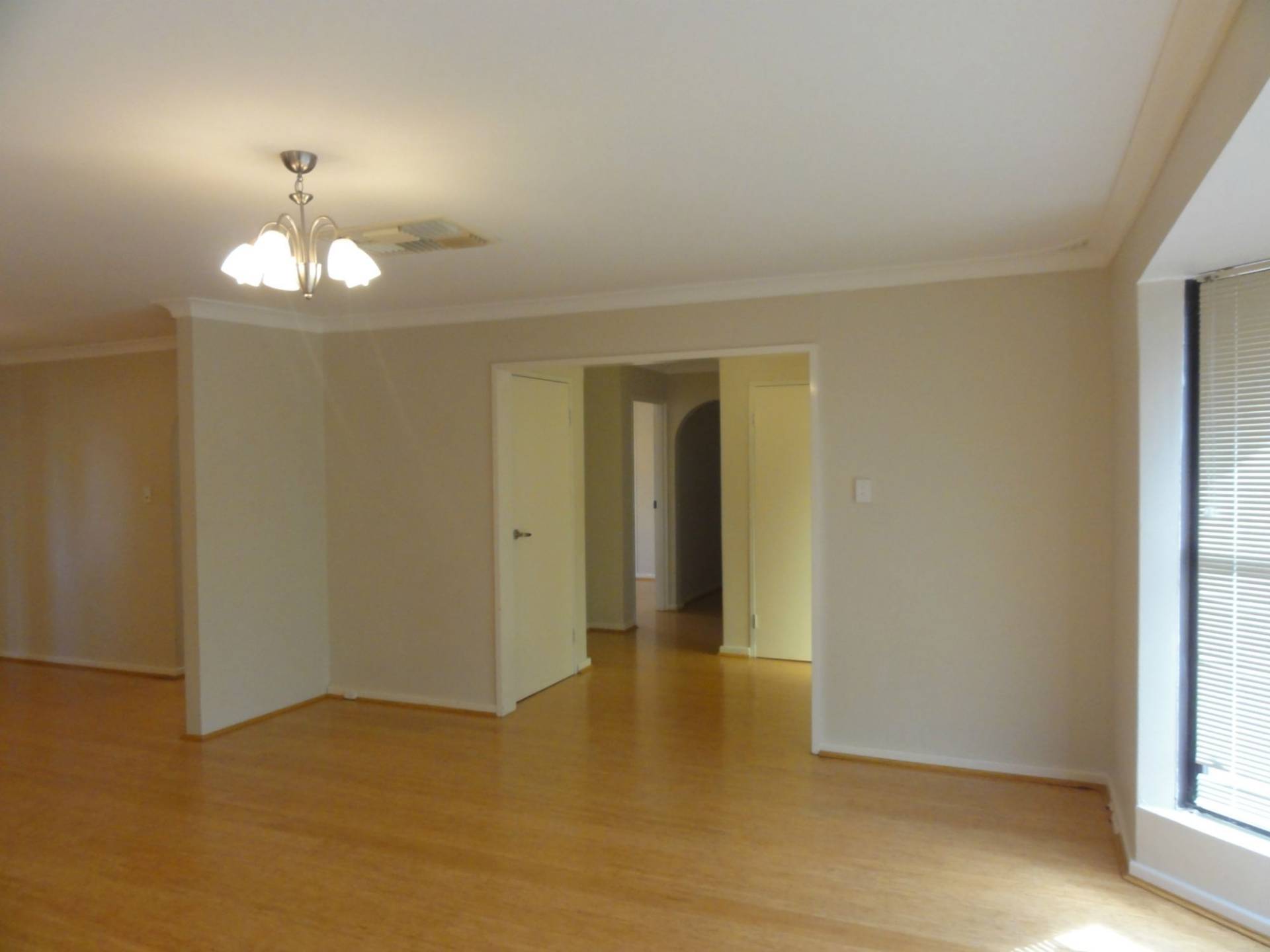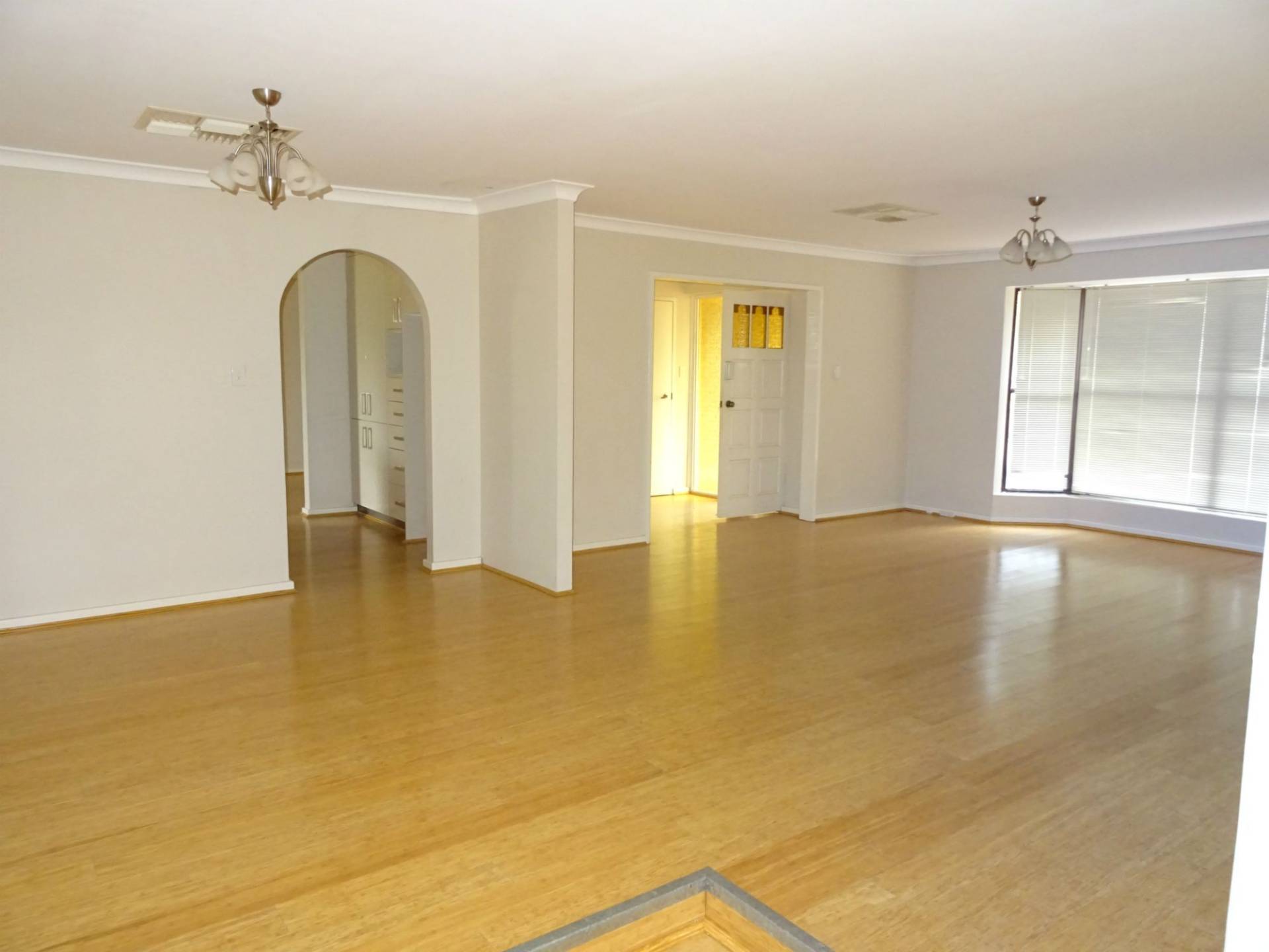Timber laminate floors to the dining room.