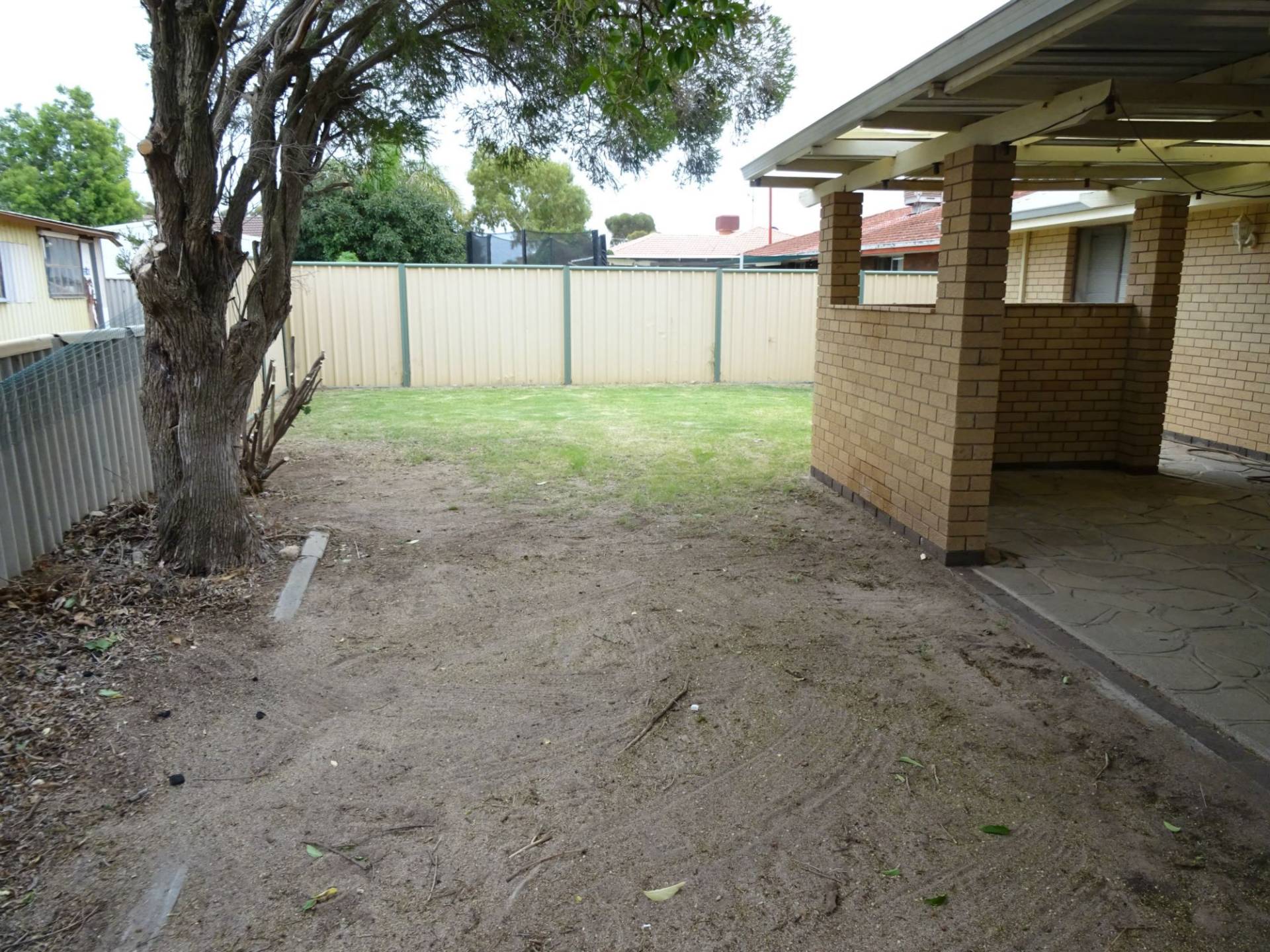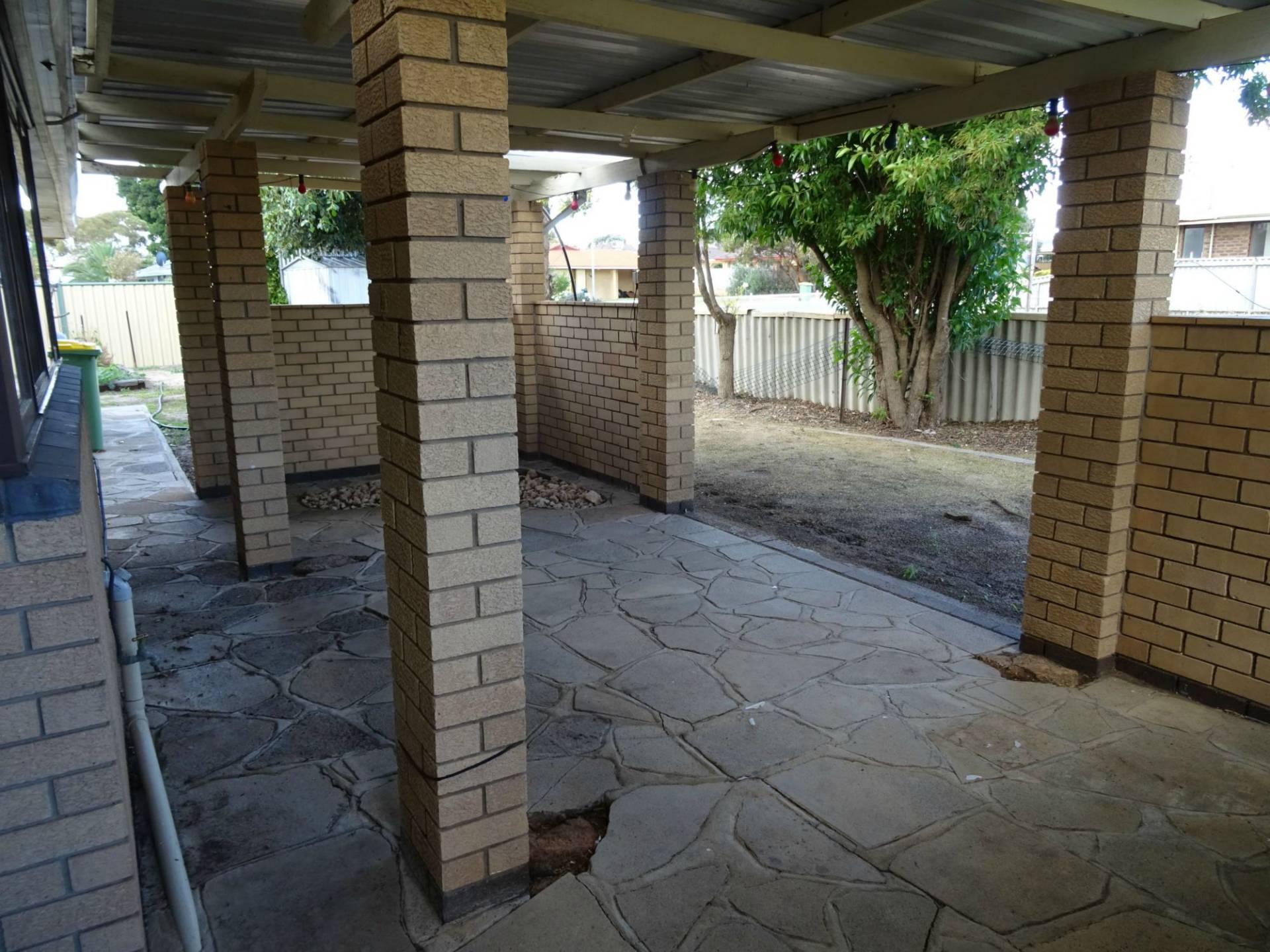 Paced back patio / undercover area off the dining room and small rear lawn area as well.