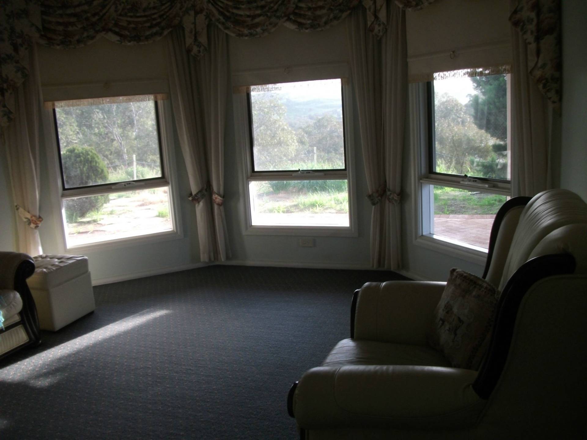 Living areas comprise of a family area of open plan dining/kitchen and family room, French doors leading out of the family room onto the front verandah, expansive windows in the kitchen to take in the views. Aformal dining room with French doors opening to front verandah/undercover entertainment area, tiled double door entrance, a formal lounge with bay window again the the most stunning views views over Toodyay hills plus spacious office with a separate secure entrance