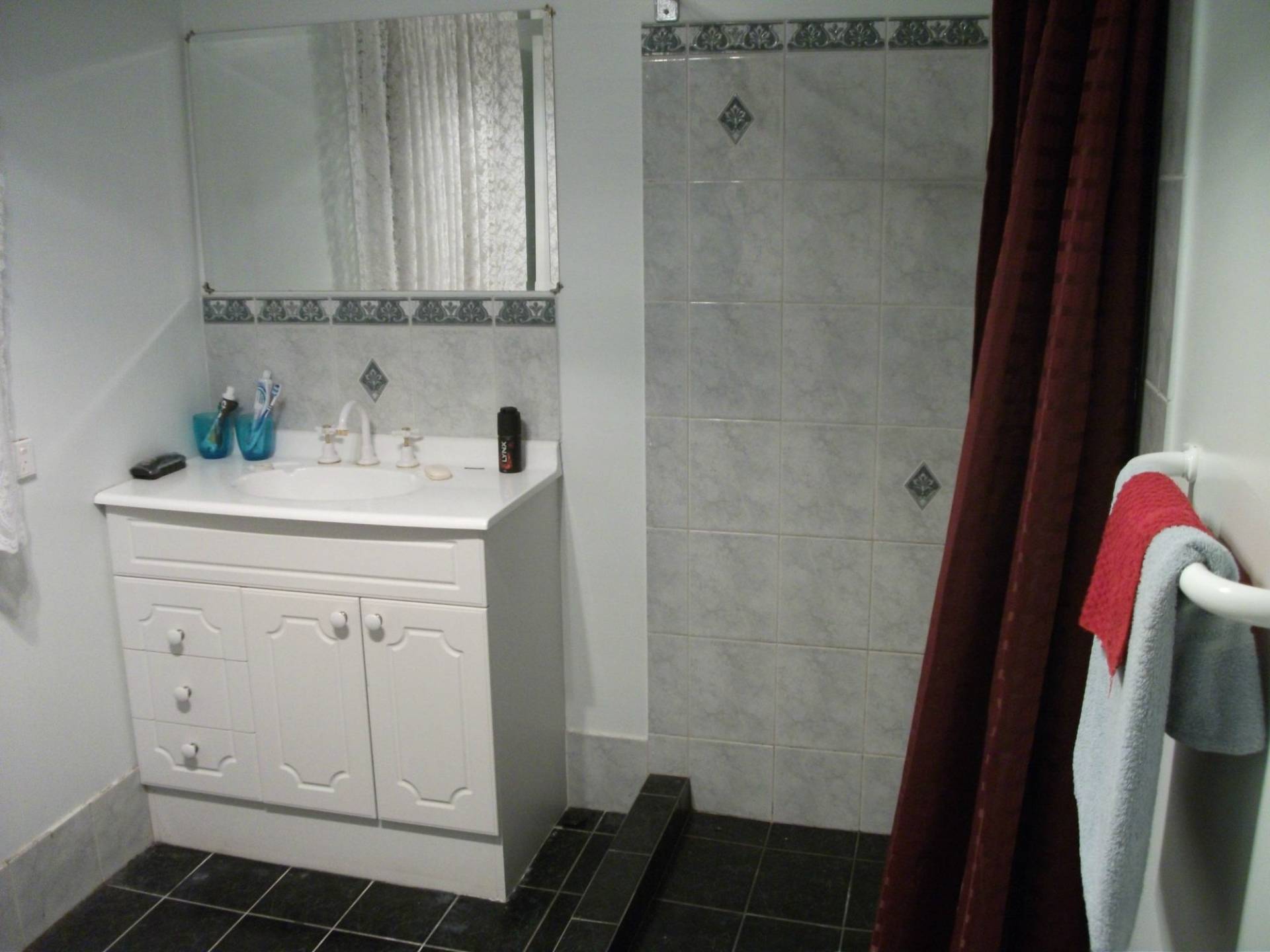 Family bathroom, fully tiled, bath, shower, toilet & vanity