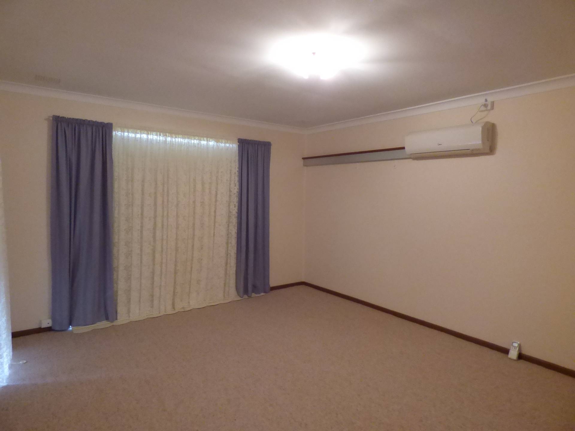 The large split system air conditioner in the lounge room can easily cool the whole duplex and curtains will keep the hot sun out.