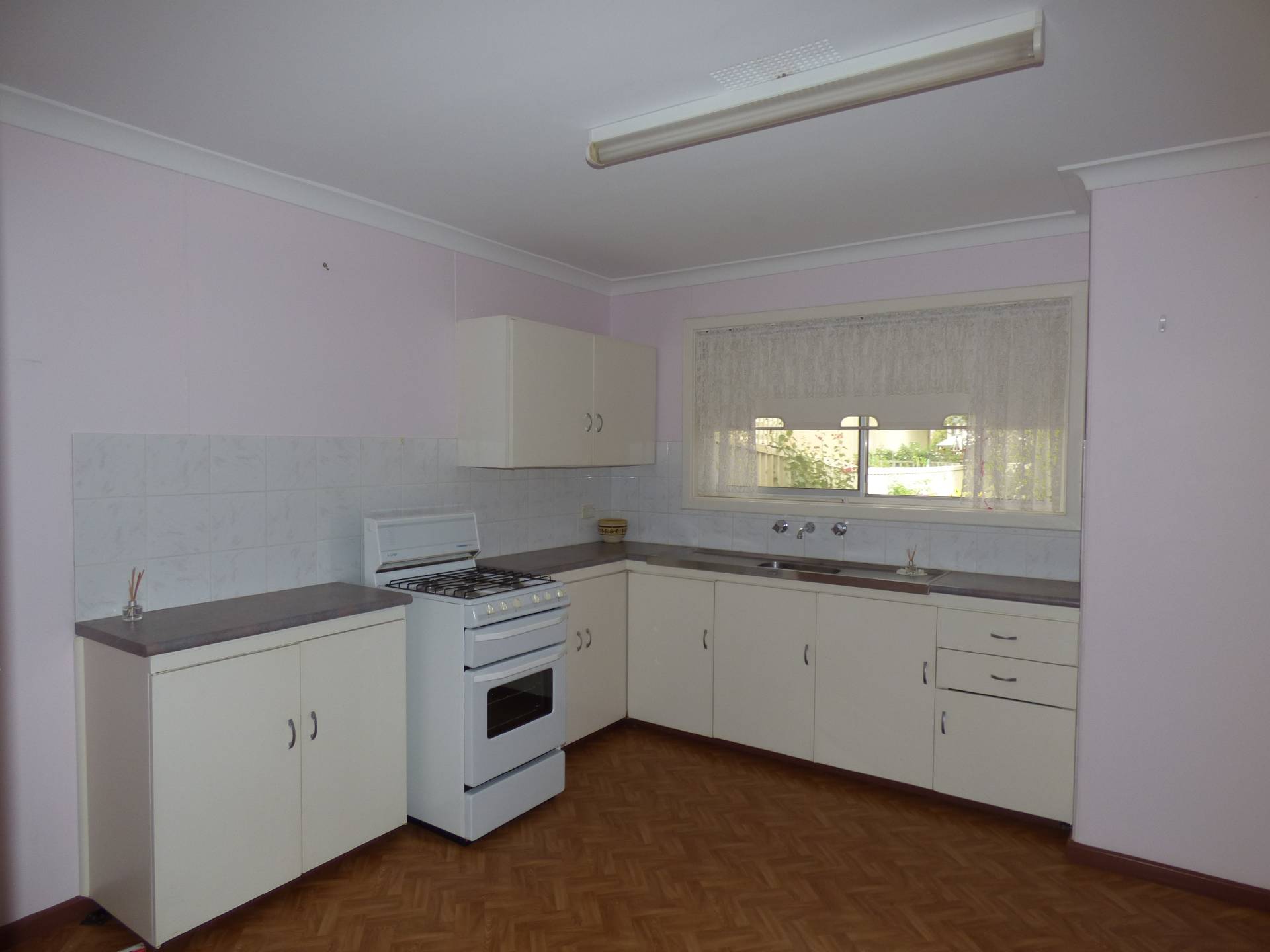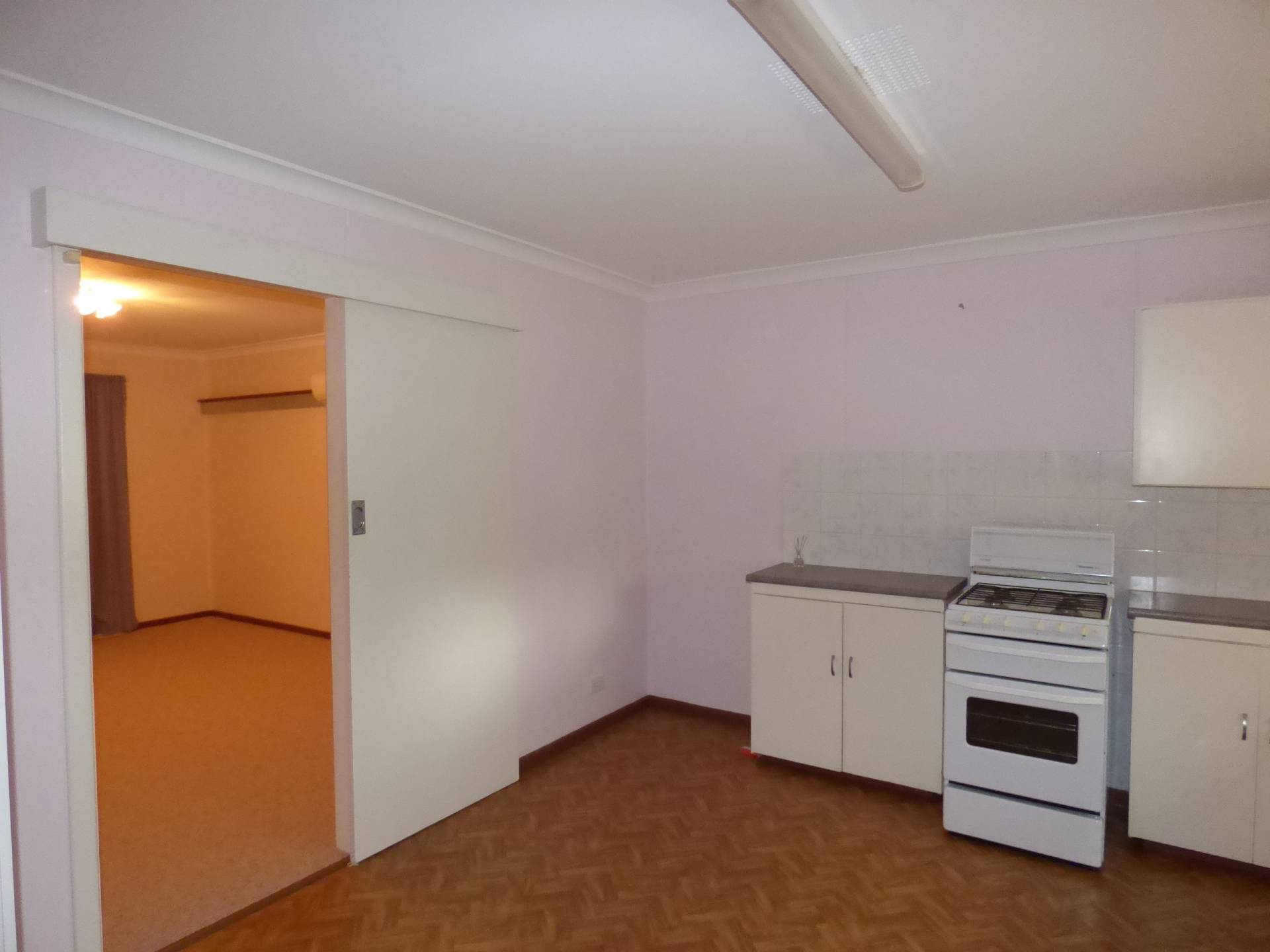 Carpeted throughout with lino in the kitchen for easy cleaning. Plenty of cupboard and bench space in the kitchen with a gas upright stovetop and oven.