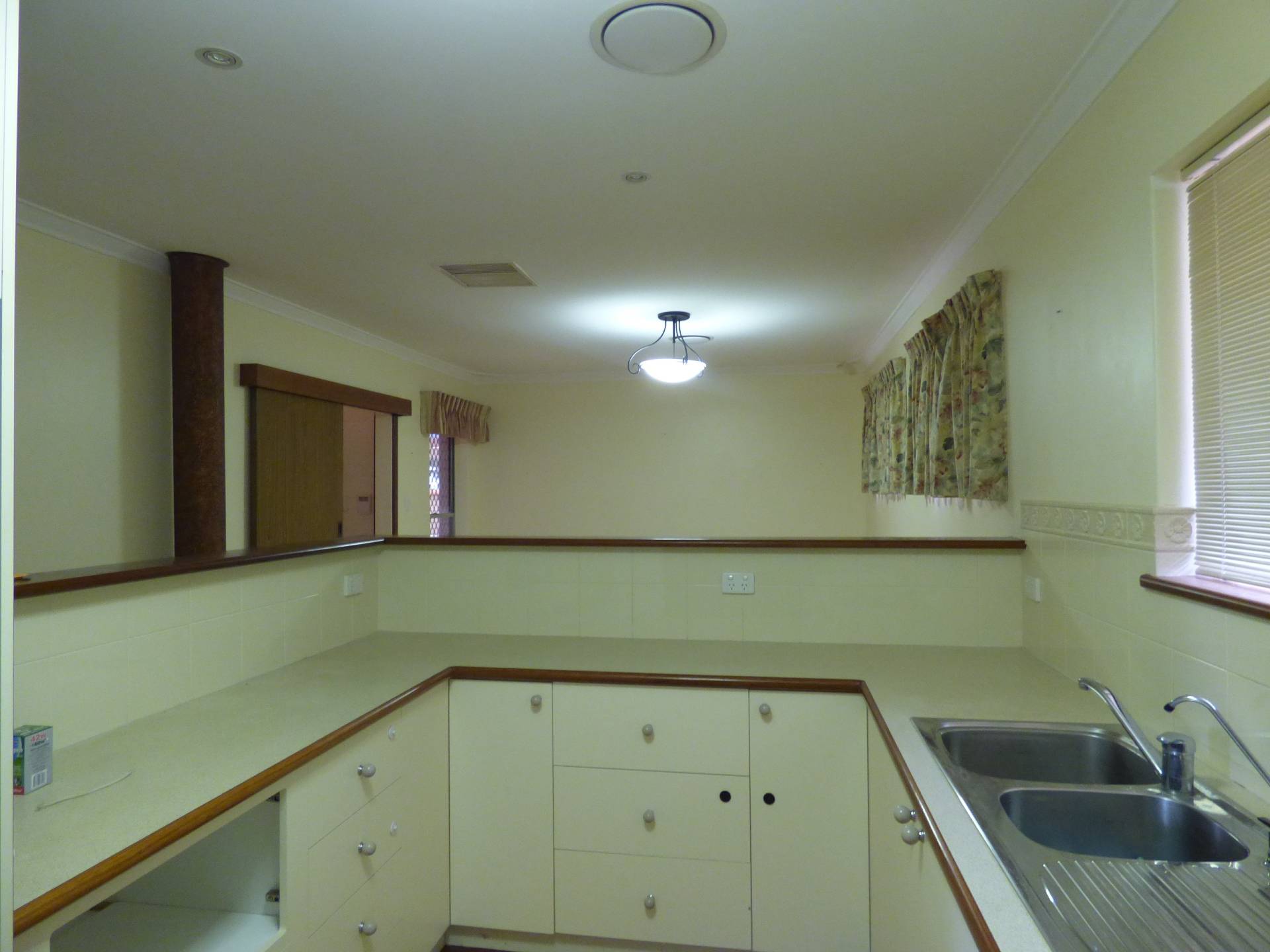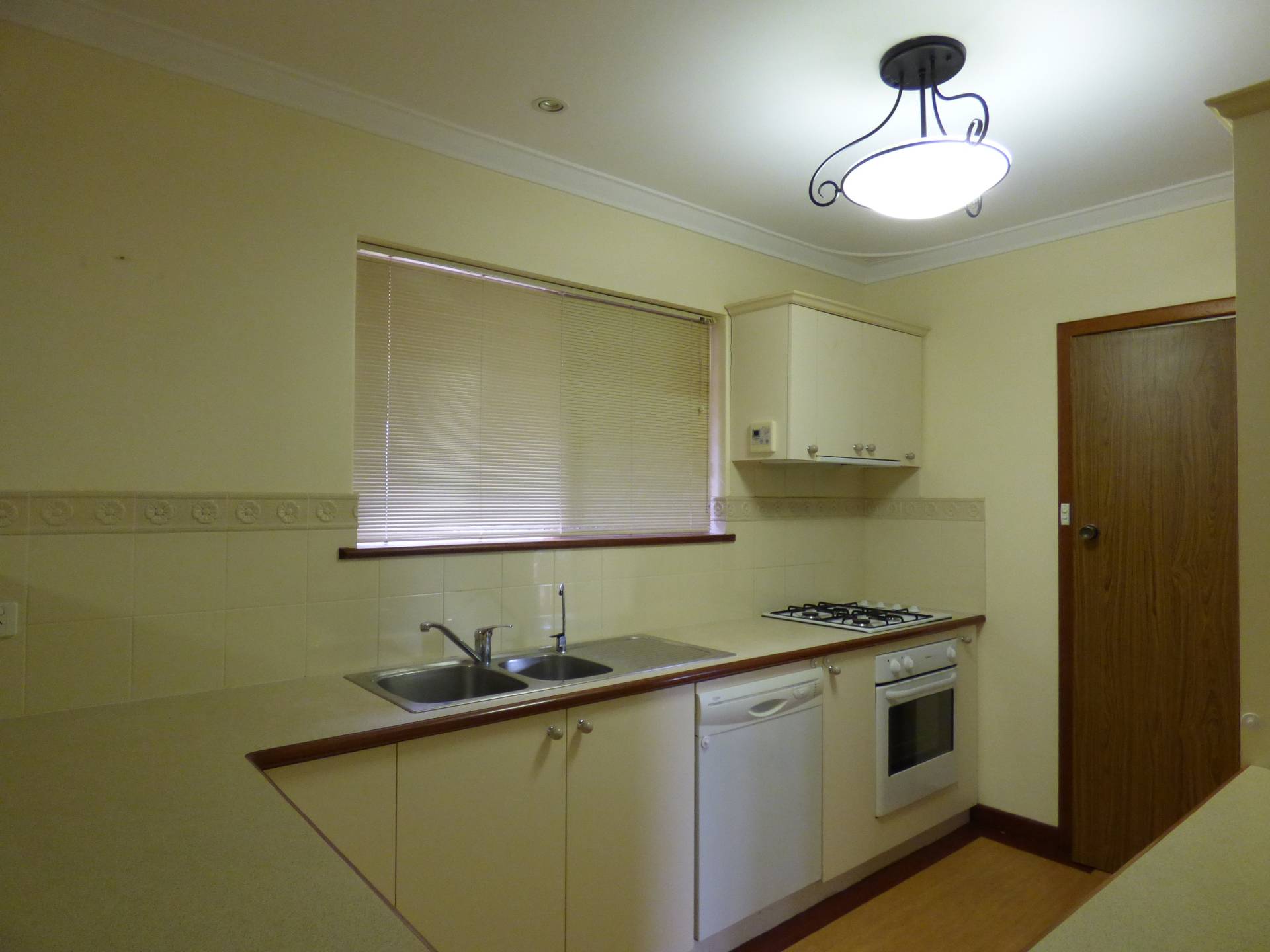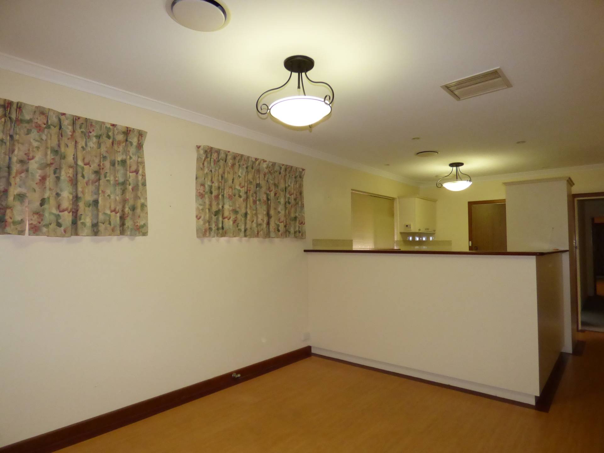 Modern kitchen central to both ends of the house with lots of bench space and under bench cupboards plus a walk in pantry.  Dishwasher, electric oven and gas stove top. Dining room has timber laminate floors and evap air con services both the kitchen and dining room.