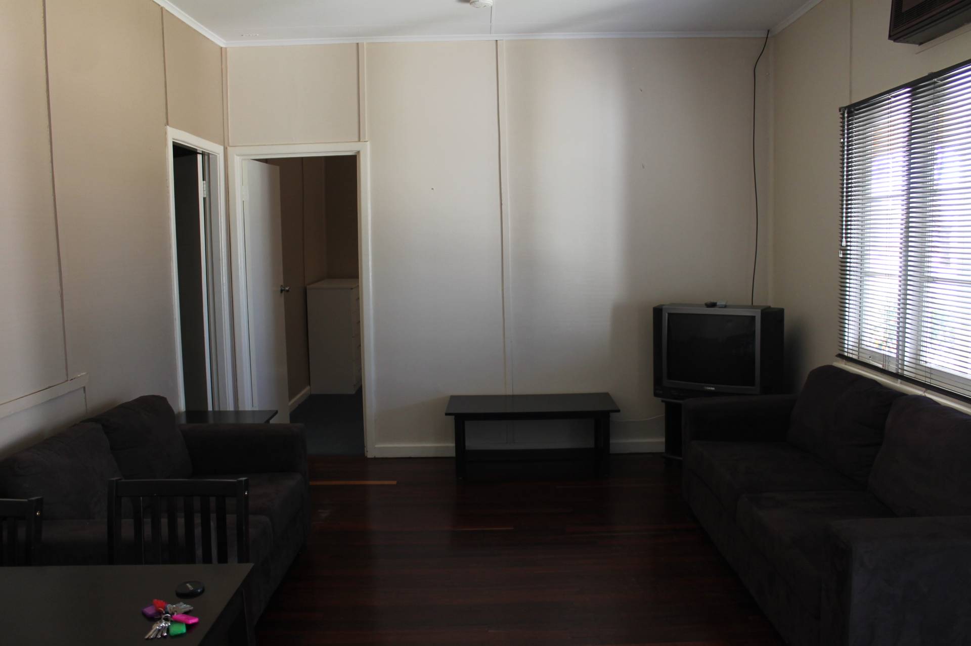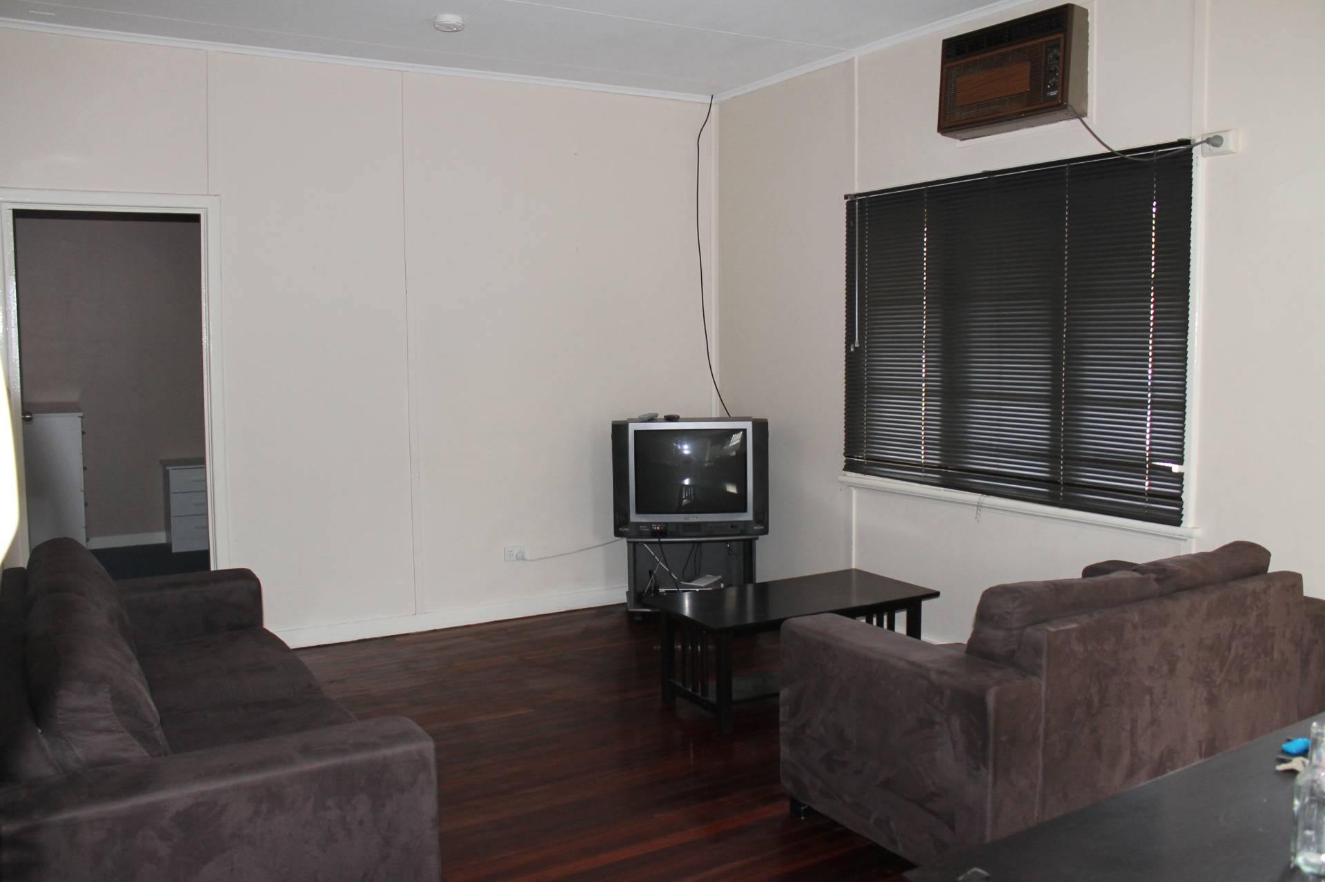 The lounge room has a wall unit air conditioner and floor boards. Furnished with a lounge suite and coffee table.
