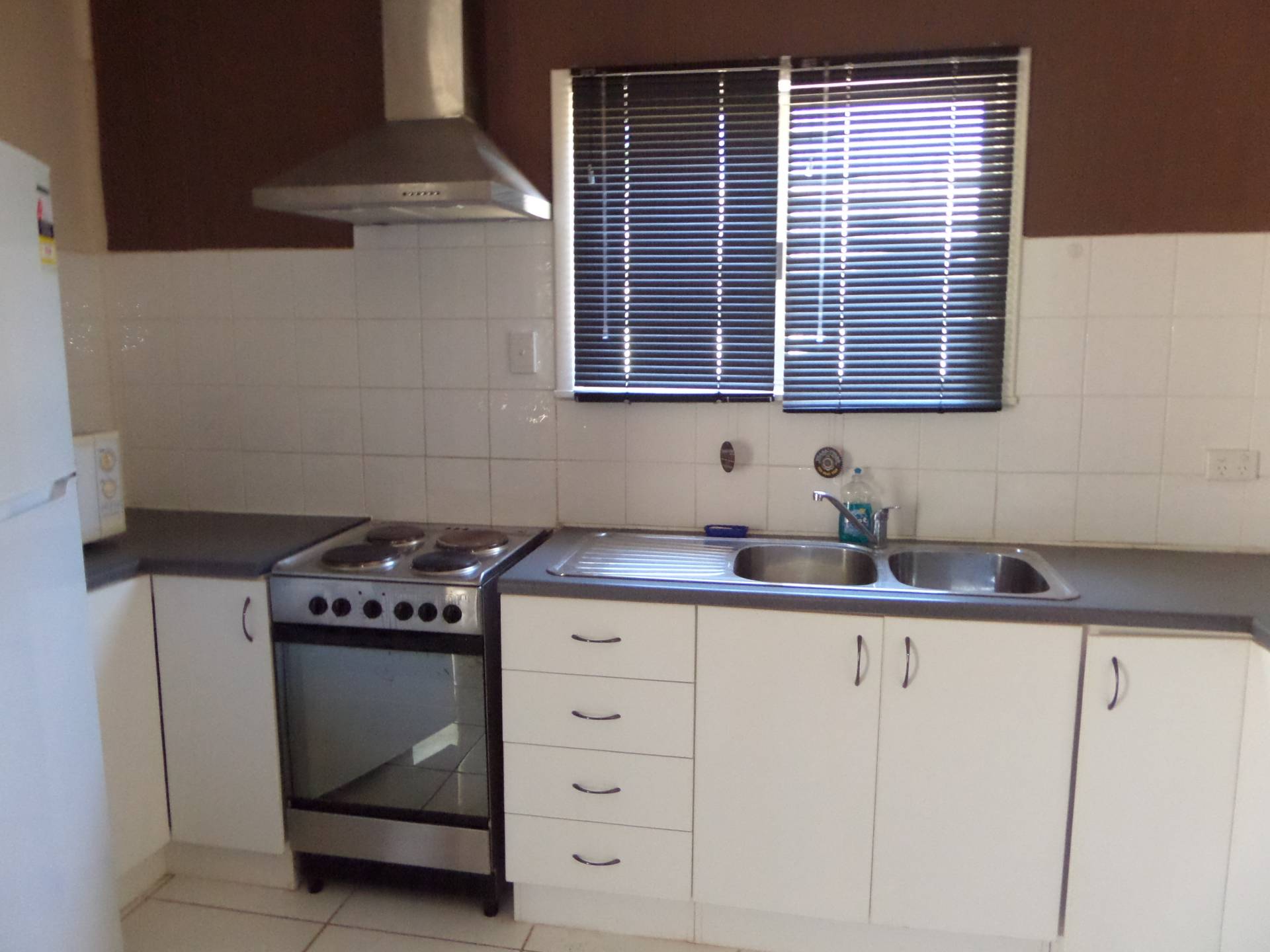 The kitchen is modern and features an electric oven and stove top and lots of cupboards, plus a good sized fridge and dining table.