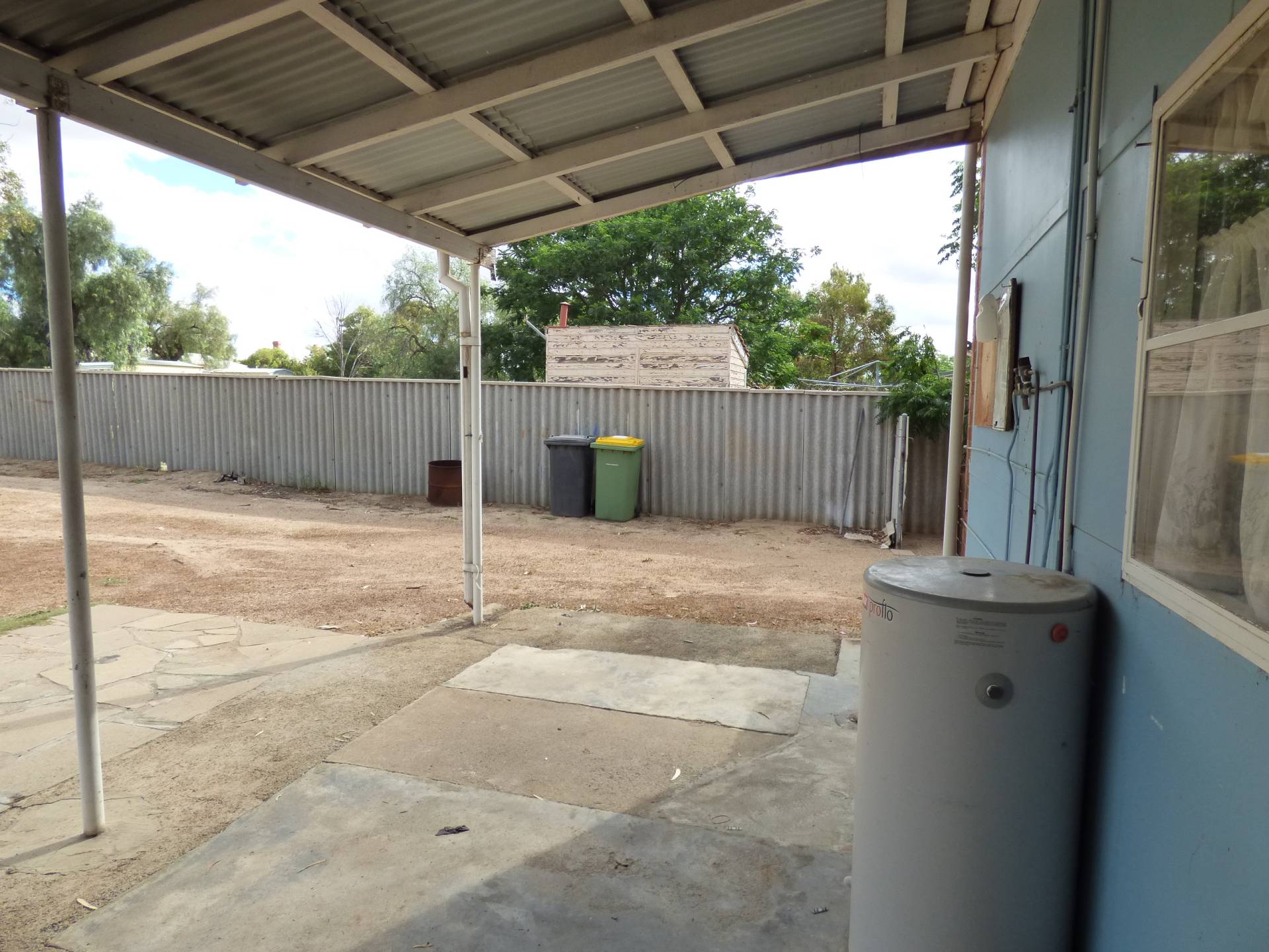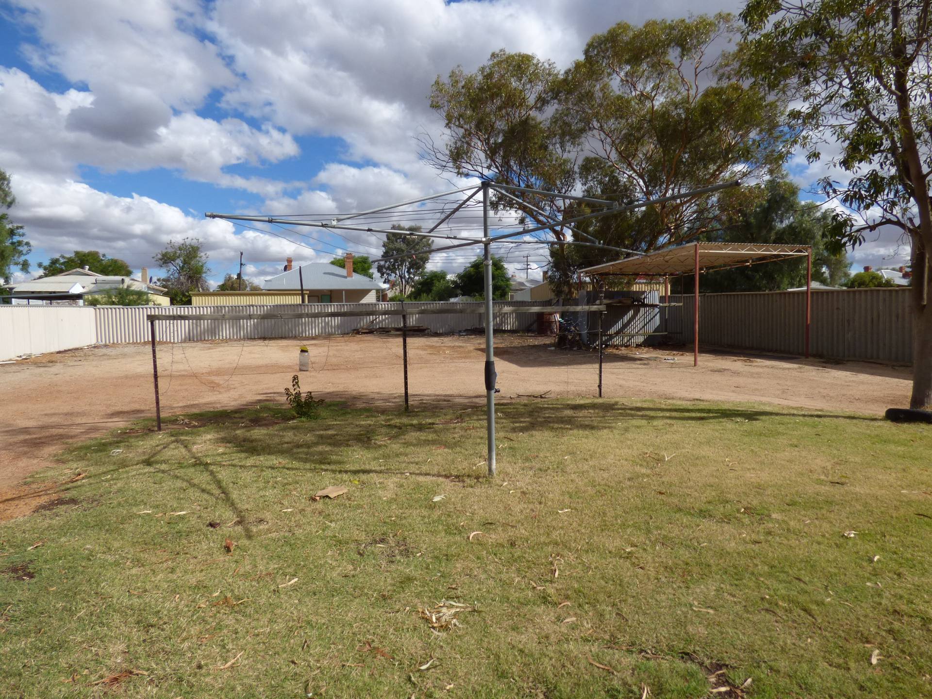 Large back yard with a small carport in the rear.