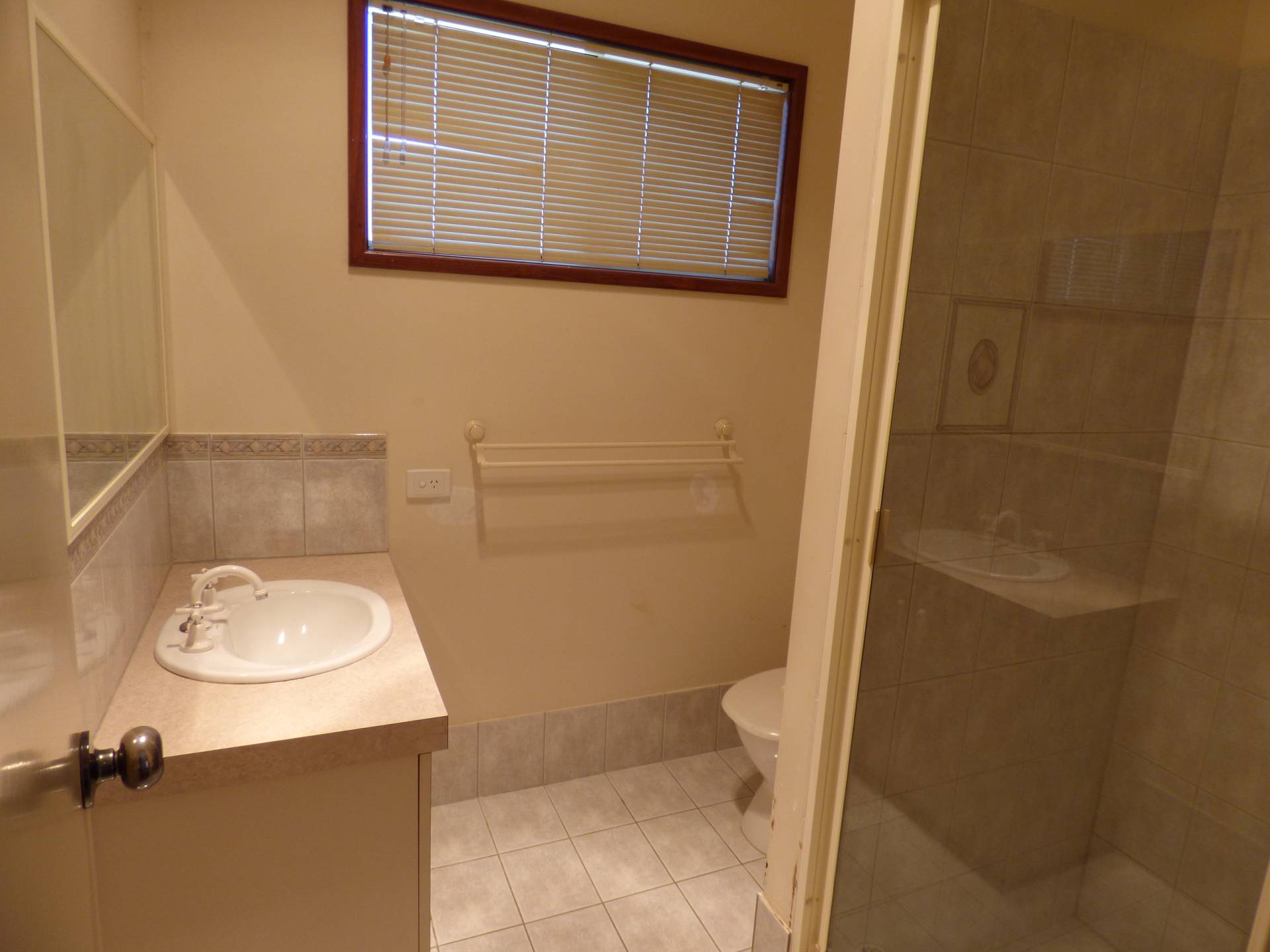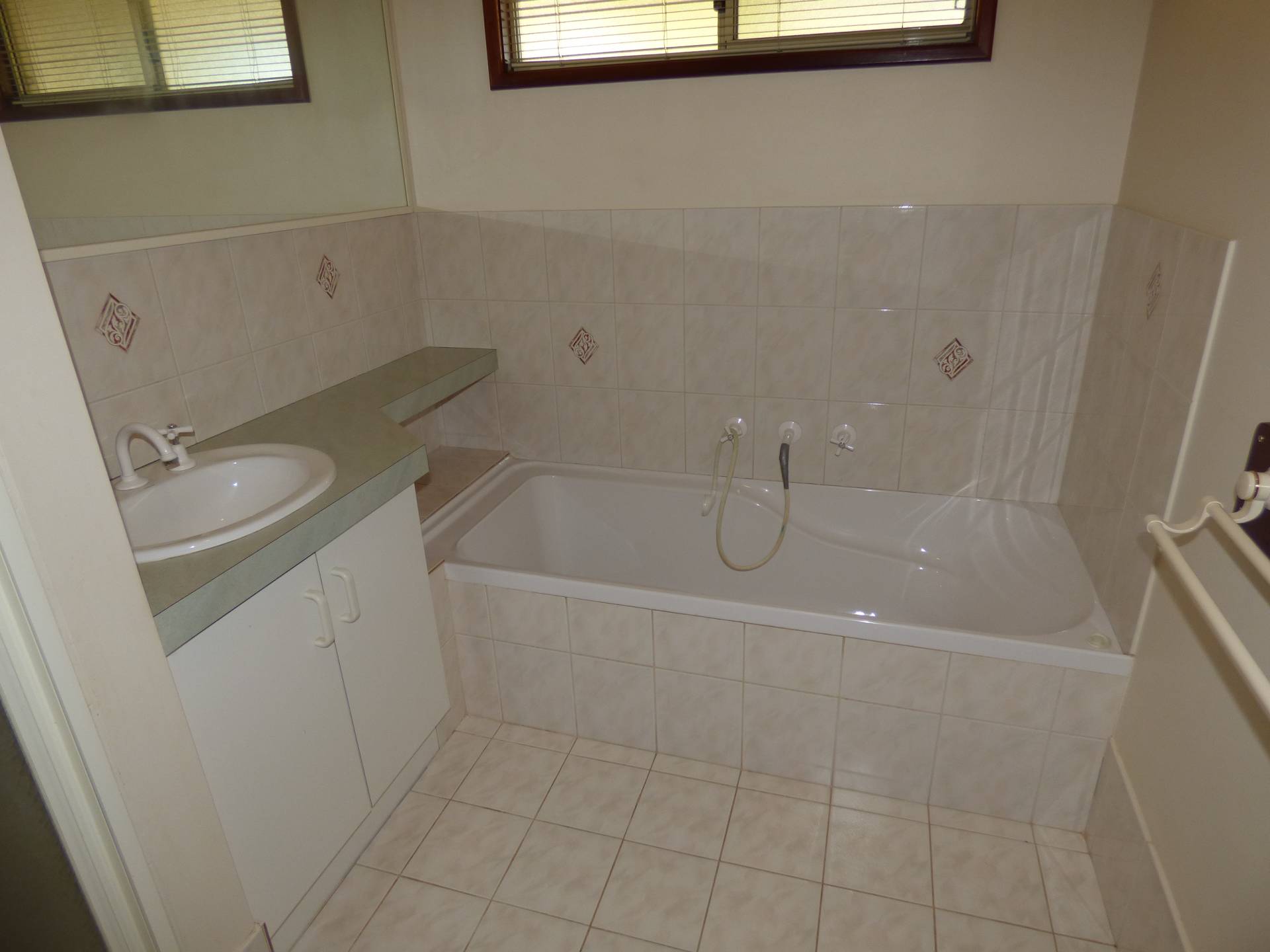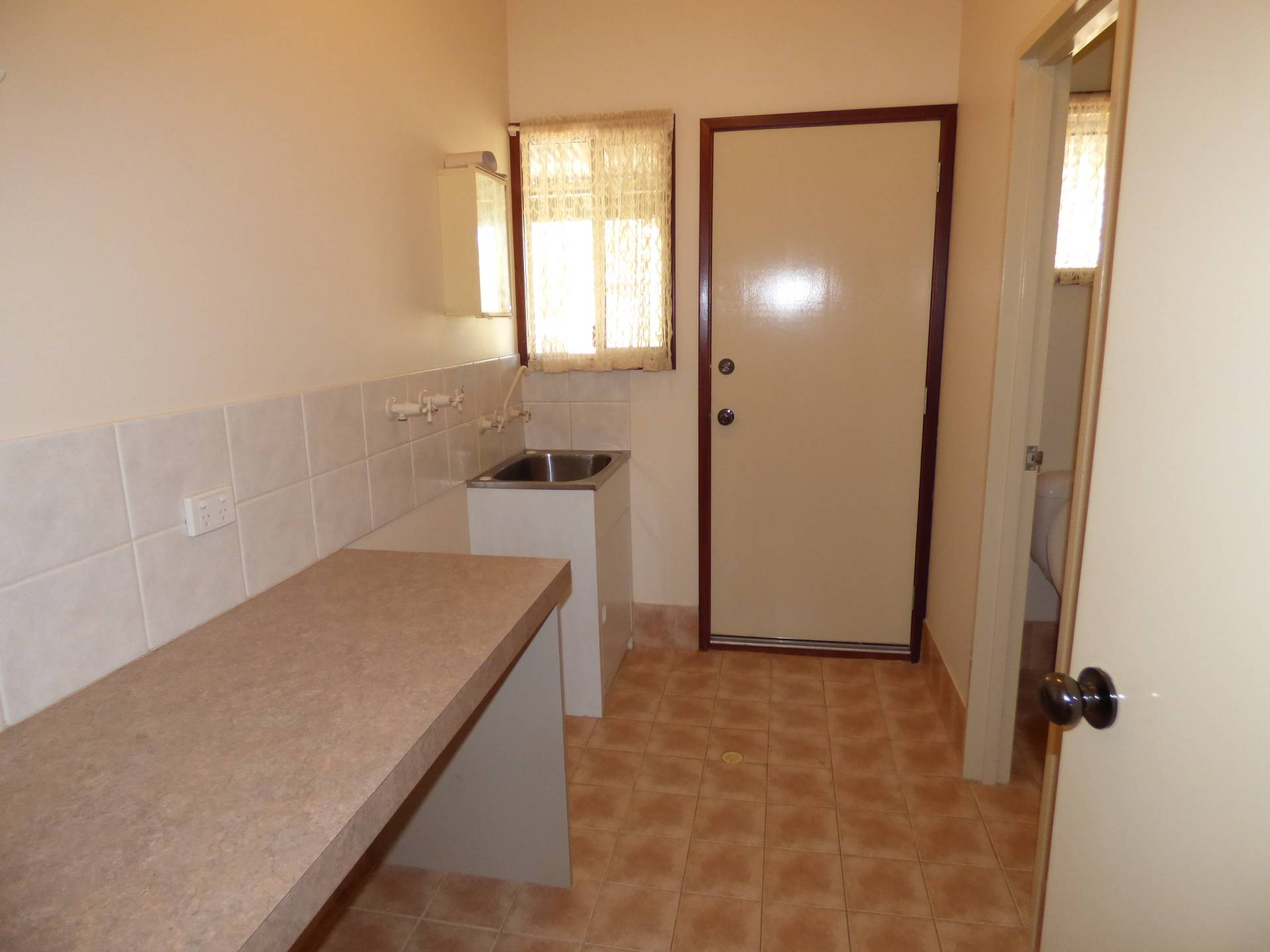 The laundry has a large bench and wash trough. The toilet is off the laundry.