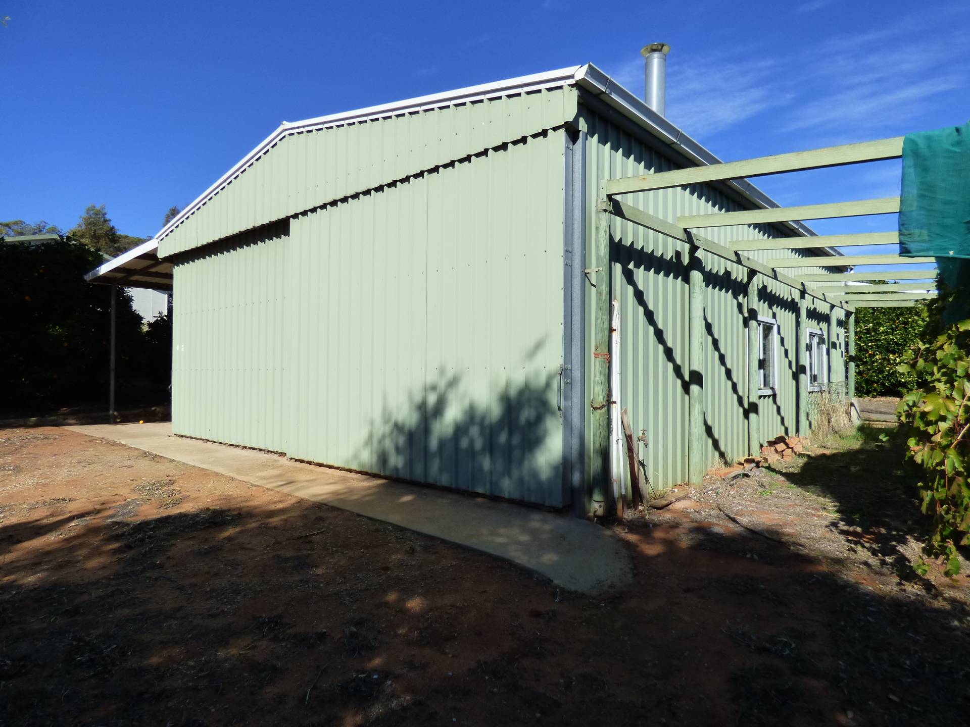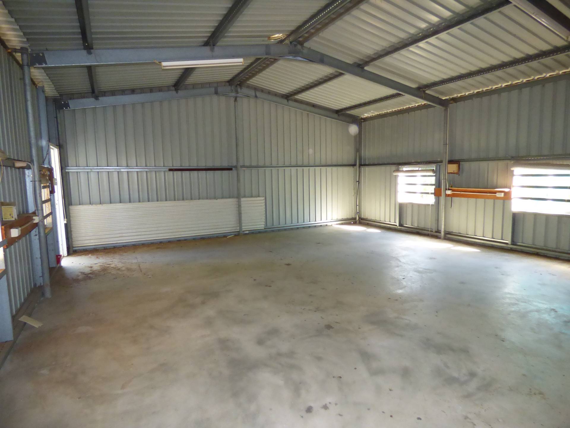 A 10m x 8m  colourbond workshop with sliding doors and a personal door.
