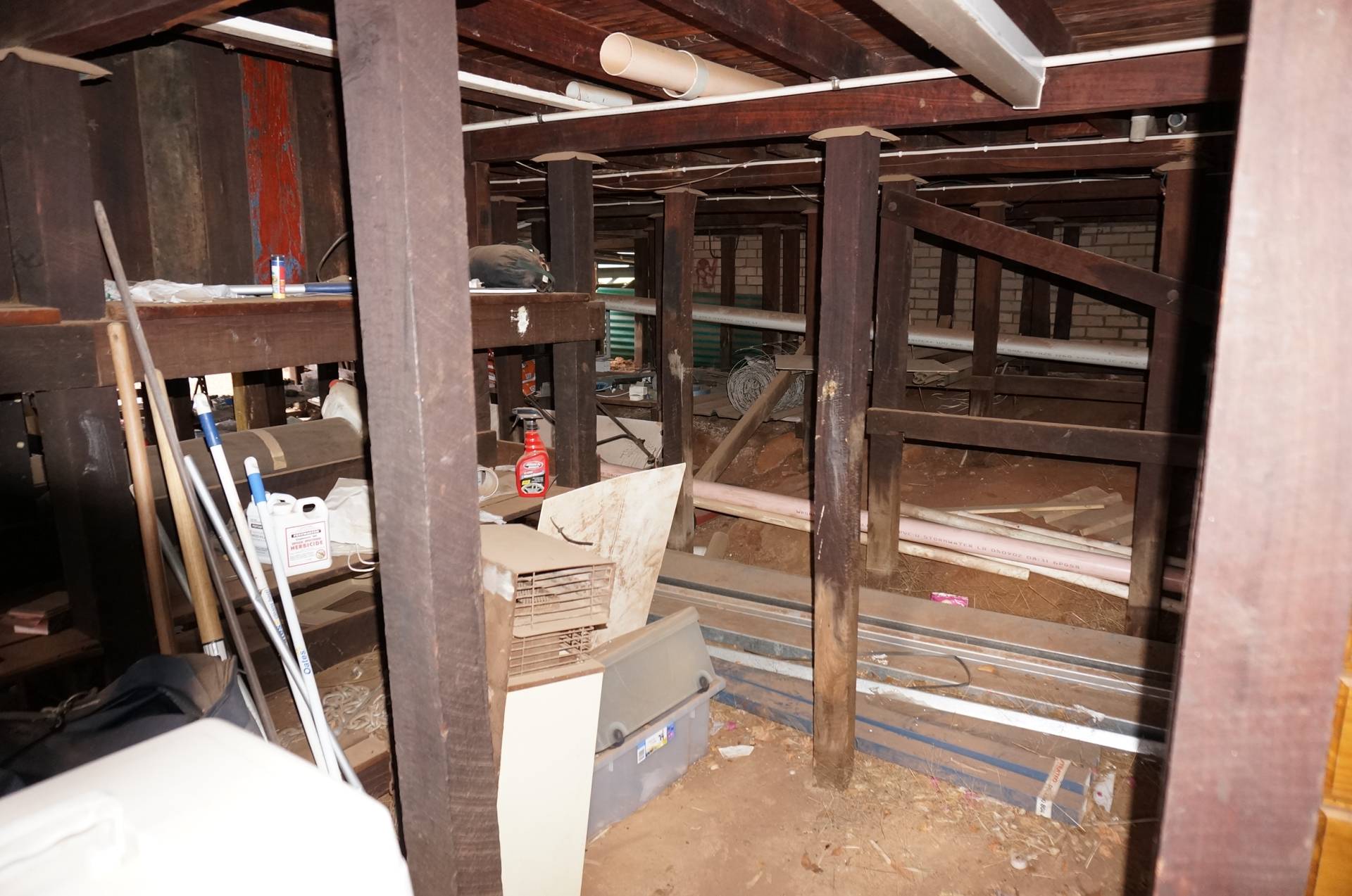 Under the house there is potential to develop a man-cave. The ground is dry and the stumps are good solid jarrah with head room for most people.