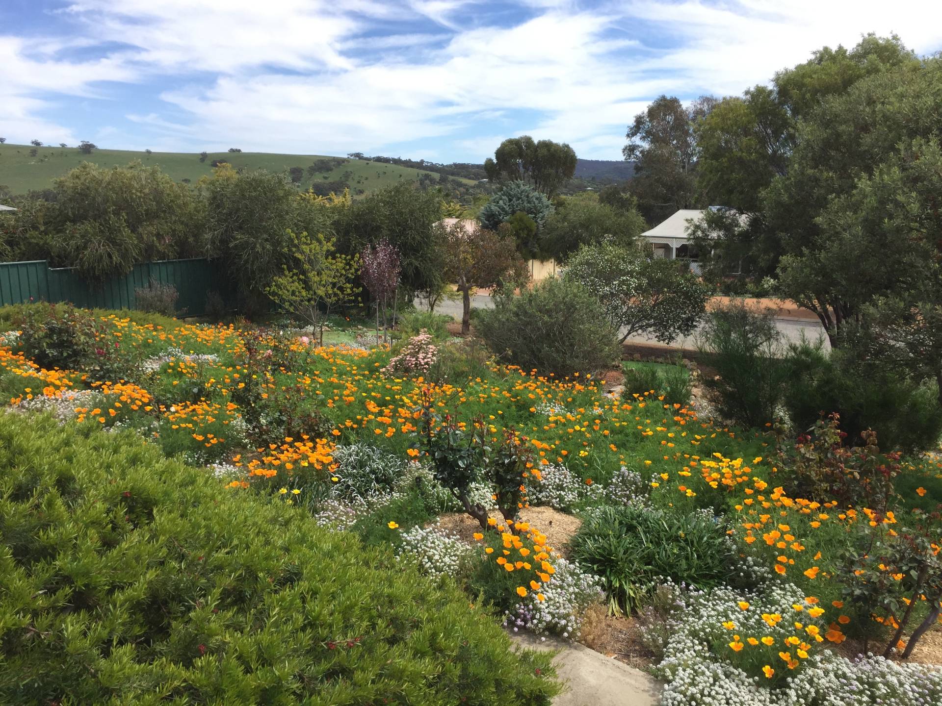 The property is situated on the top of a hill and catches a pleasant breeze most of the time. It is a large block (1422m2) so there is plenty of space outdoors for the attractive garden - which bloomed beautifully throughout the springtime and nicely screens the home from the street - with double garage; caravan parking bay; workshop and undercover entertaining area.