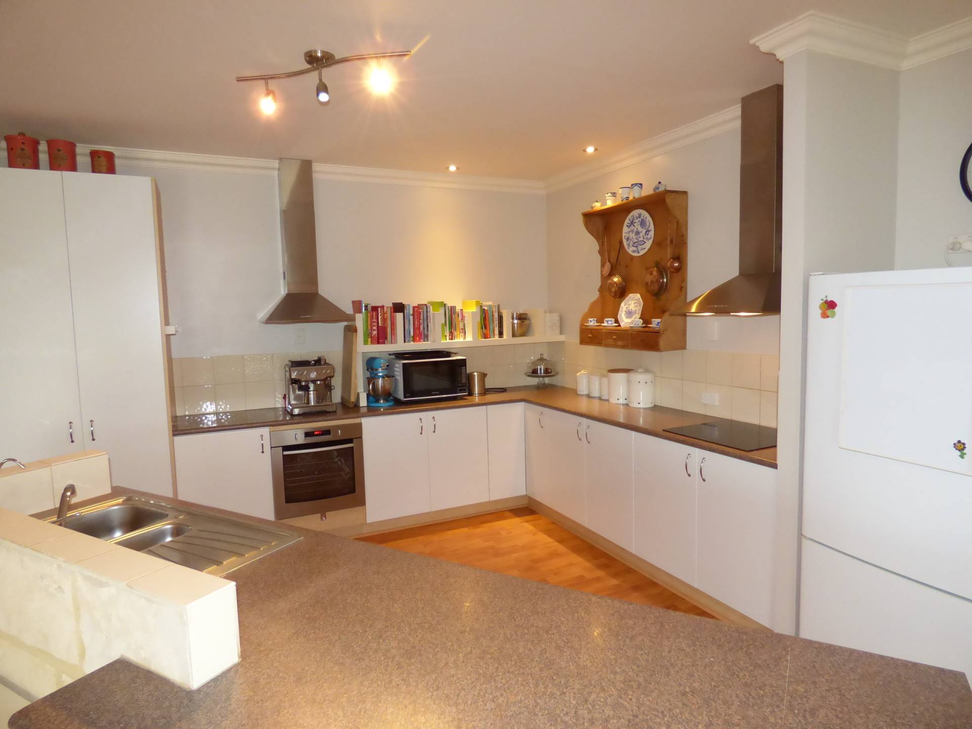 The kitchen is separated from the other areas by an island breakfast bar that includes a double stainless-steel sink and plenty of bench-top space for food preparation. The kitchen also has large pantry; under-bench electric oven; induction hot plates with stainless-steel range-hood; dishwasher and a recess for a family-sized fridge.