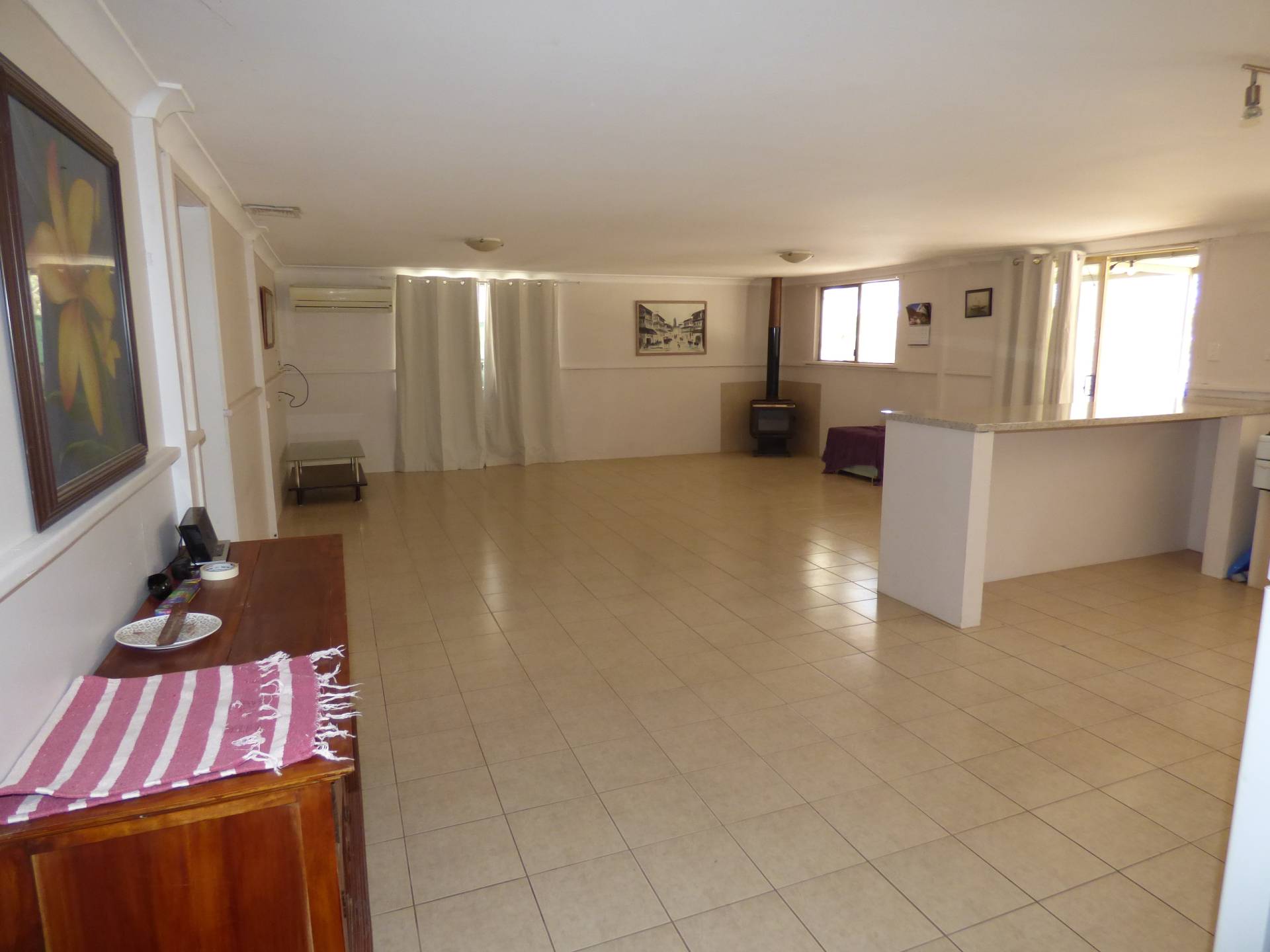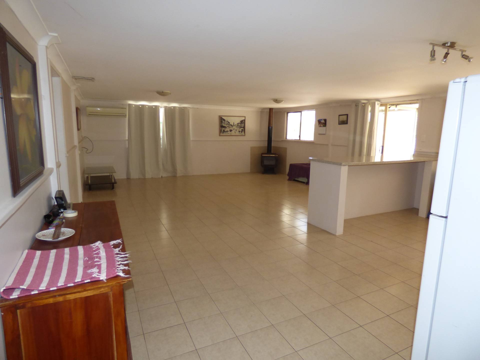 The house is colourbond clad with a pleasant verandah that leads into a huge living area that combines the kitchen.