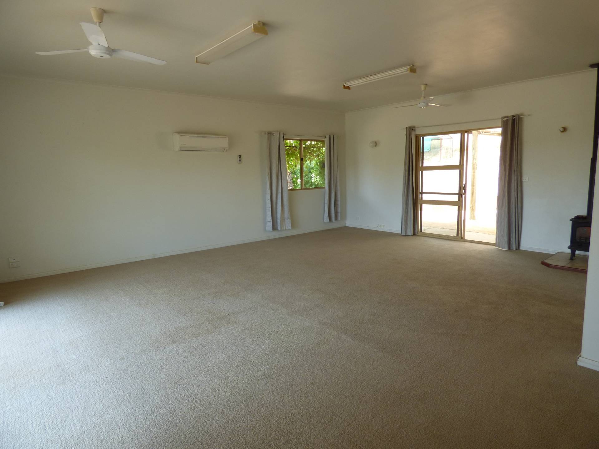 The house features an enormous living area, combining the lounge room, dining room, and opens onto the kitchen. There is a split system airconditioner plus a log fire for the winter nights.