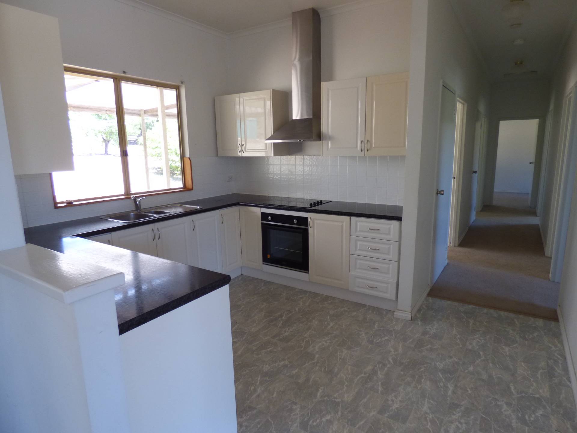 The kitchen is modern and bright with electric hotplates and under bench oven.