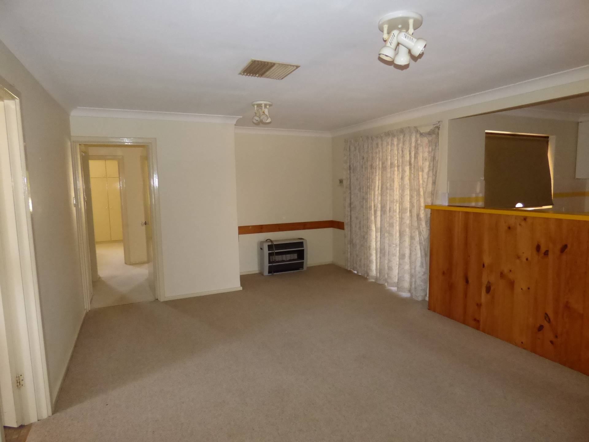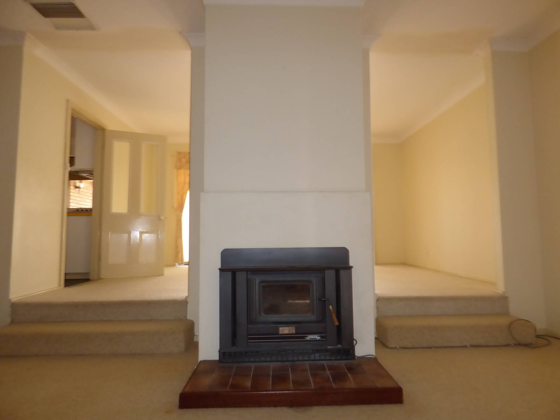 Or you go across the main entrance hallway and into the sunken formal lounge room which has a fan forced slow combustion fireplace to keep you cosy and warm in the winter.