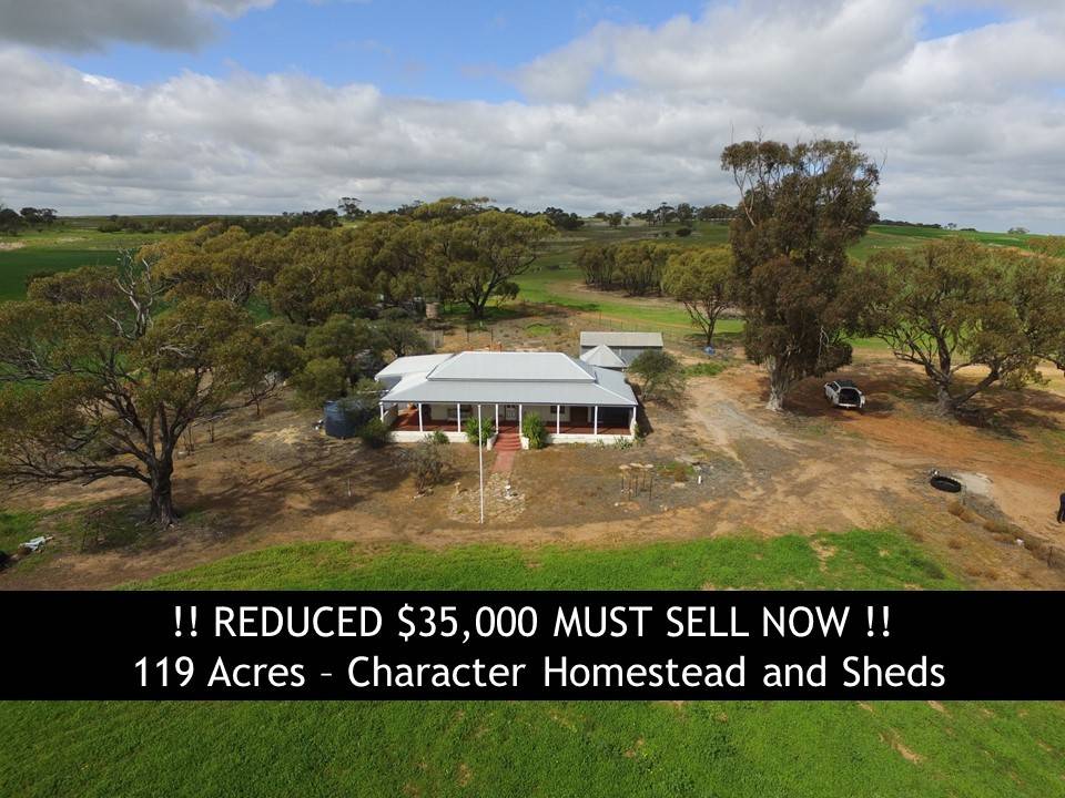 Yes this has it all. Historic Homestead, Shearing Shed, Machinery Shed, 119 Acres, Bore and  massive Rocky Hill.
