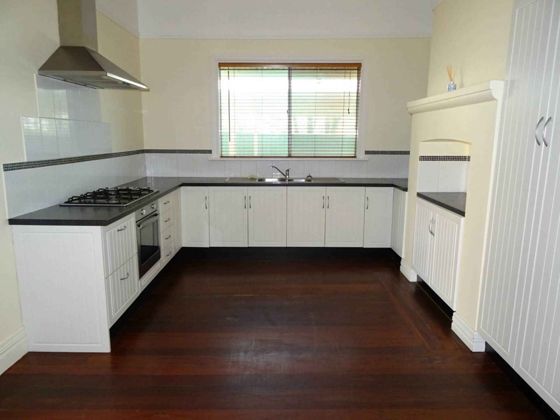 In the middle of the house you will find the large kitchen with heaps of bench space, a built in gas stove top and electric oven and polished floors.