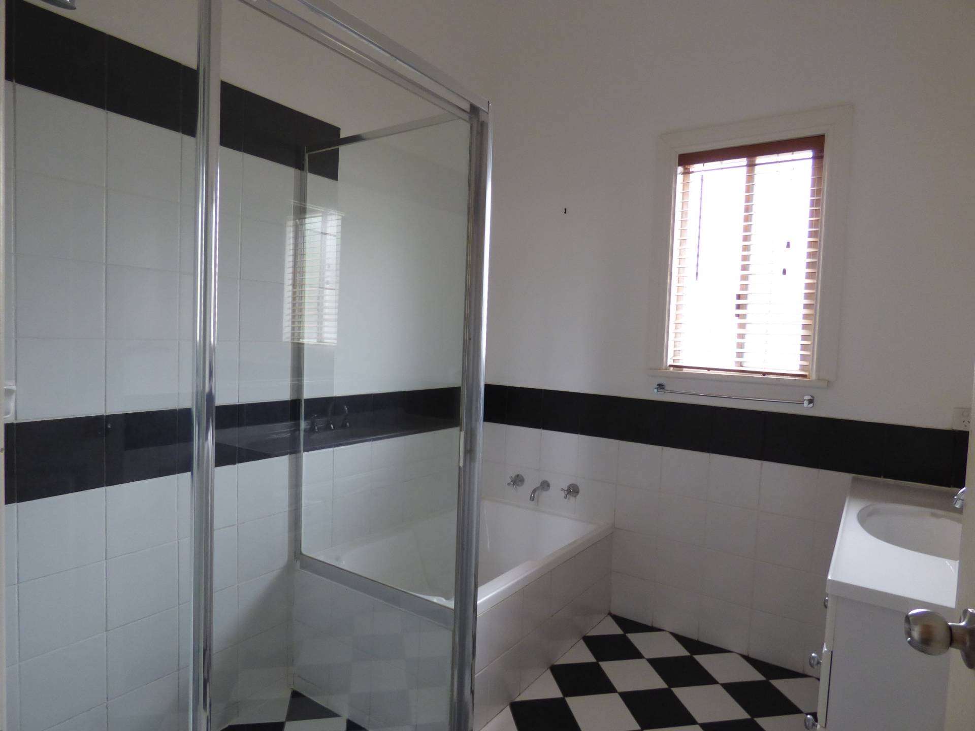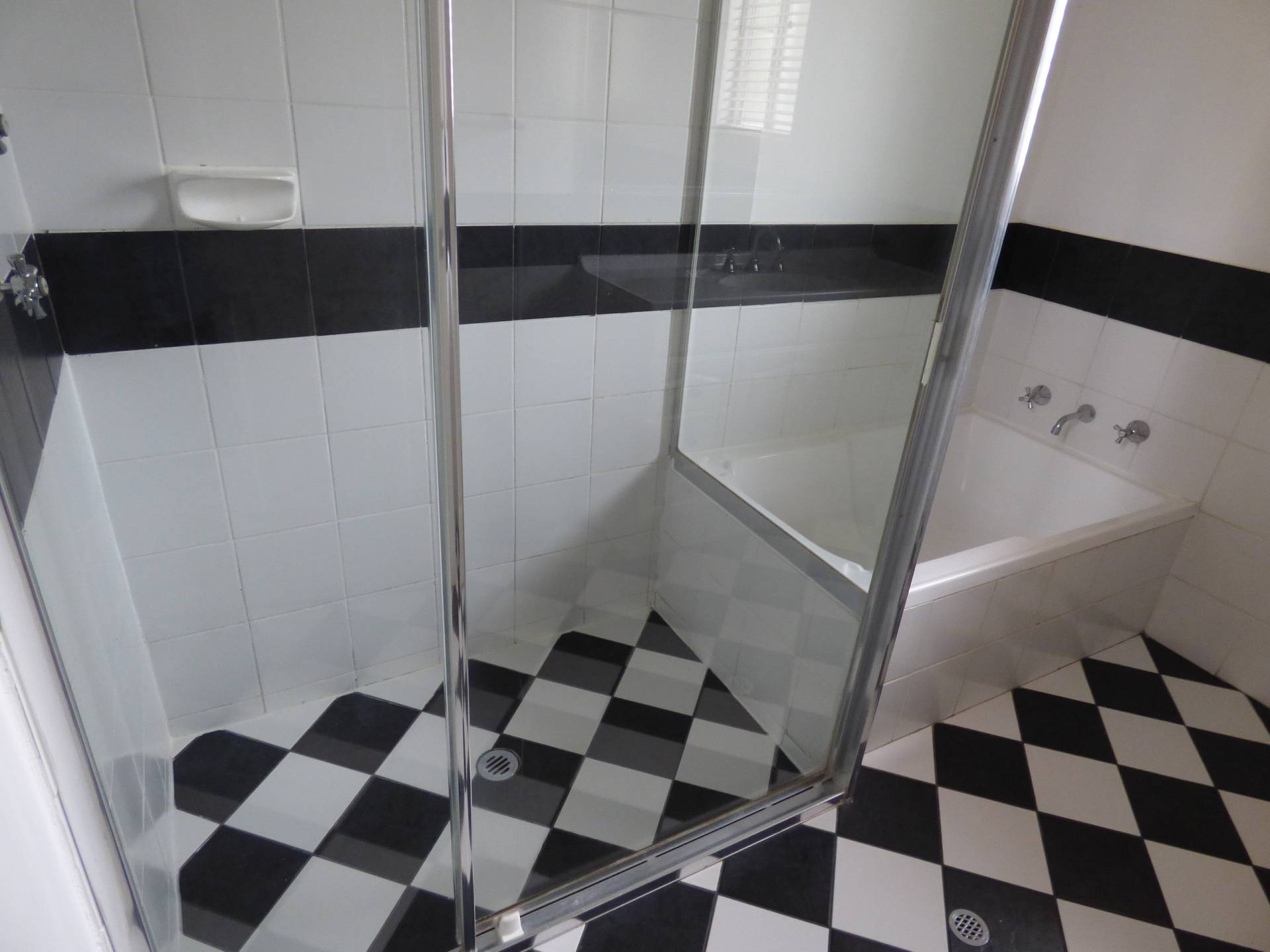 The main bathroom is just next to the master bedroom and is brightly tiled with a separate shower and bath tub and modern vanity.