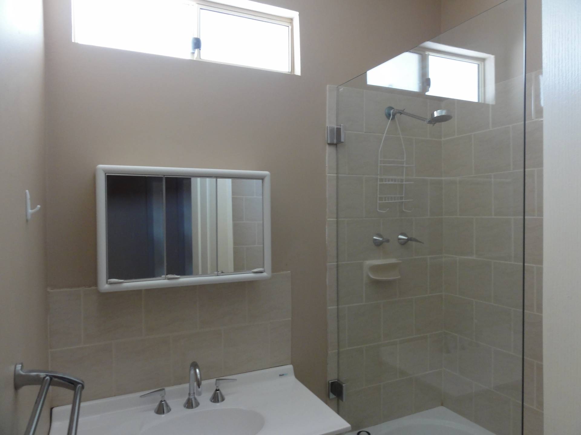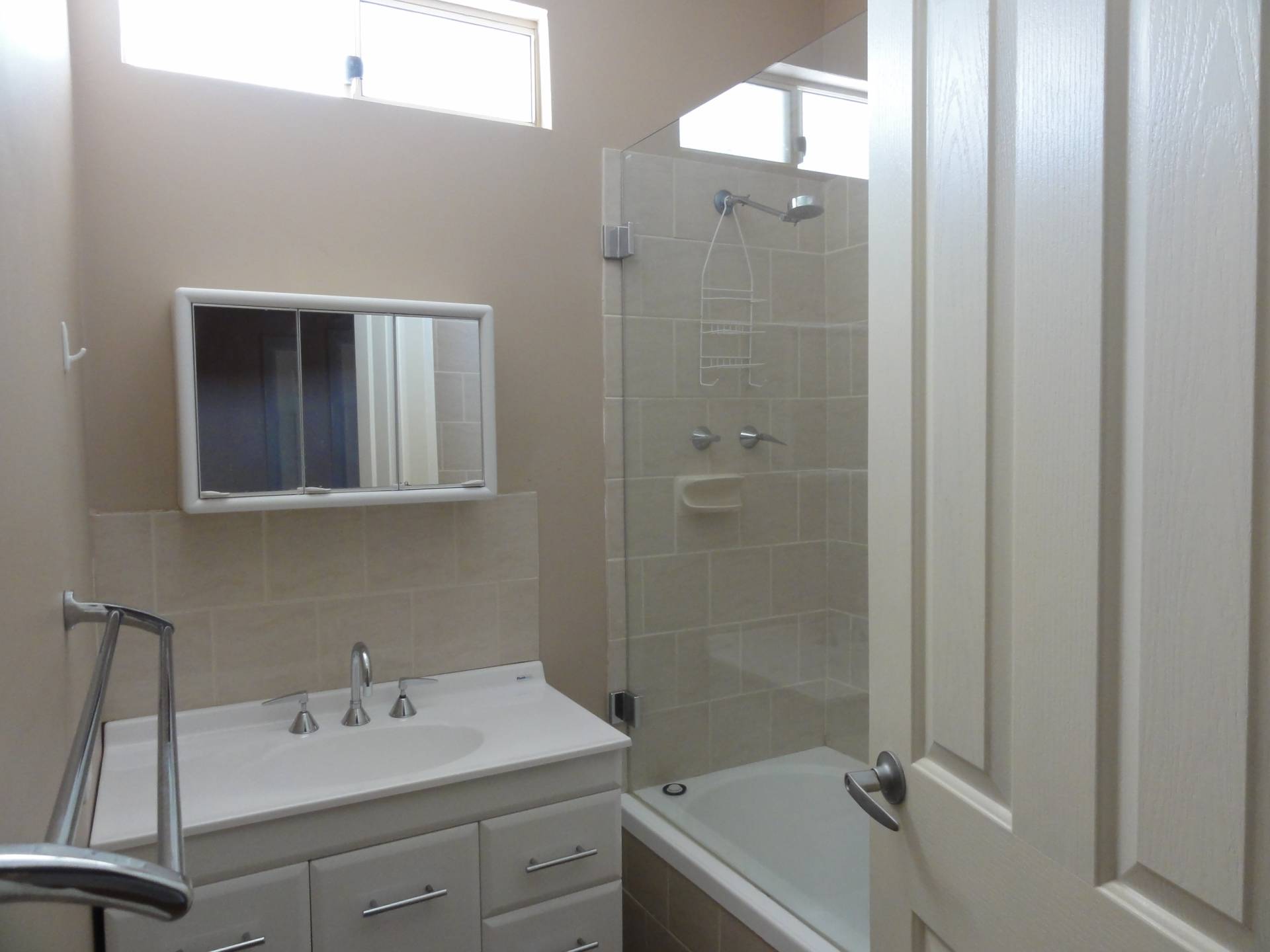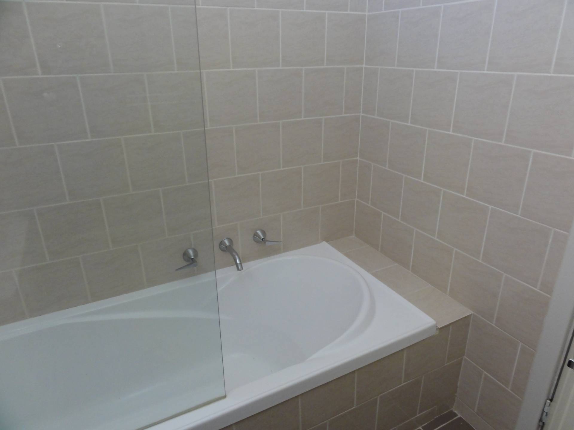 The fresh look bathroom is space saving with a shower over bath arrangement. The separate toilet is located just off the large laundry to the side of the home.