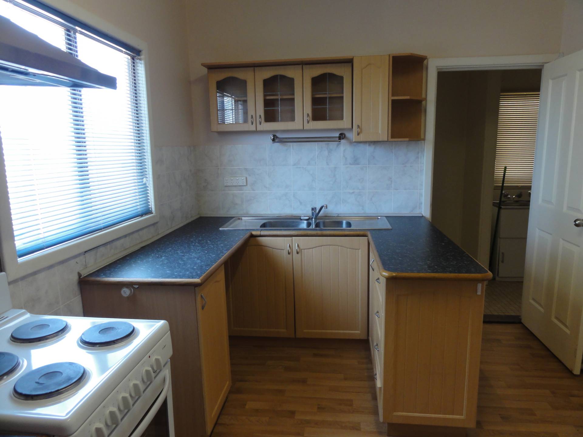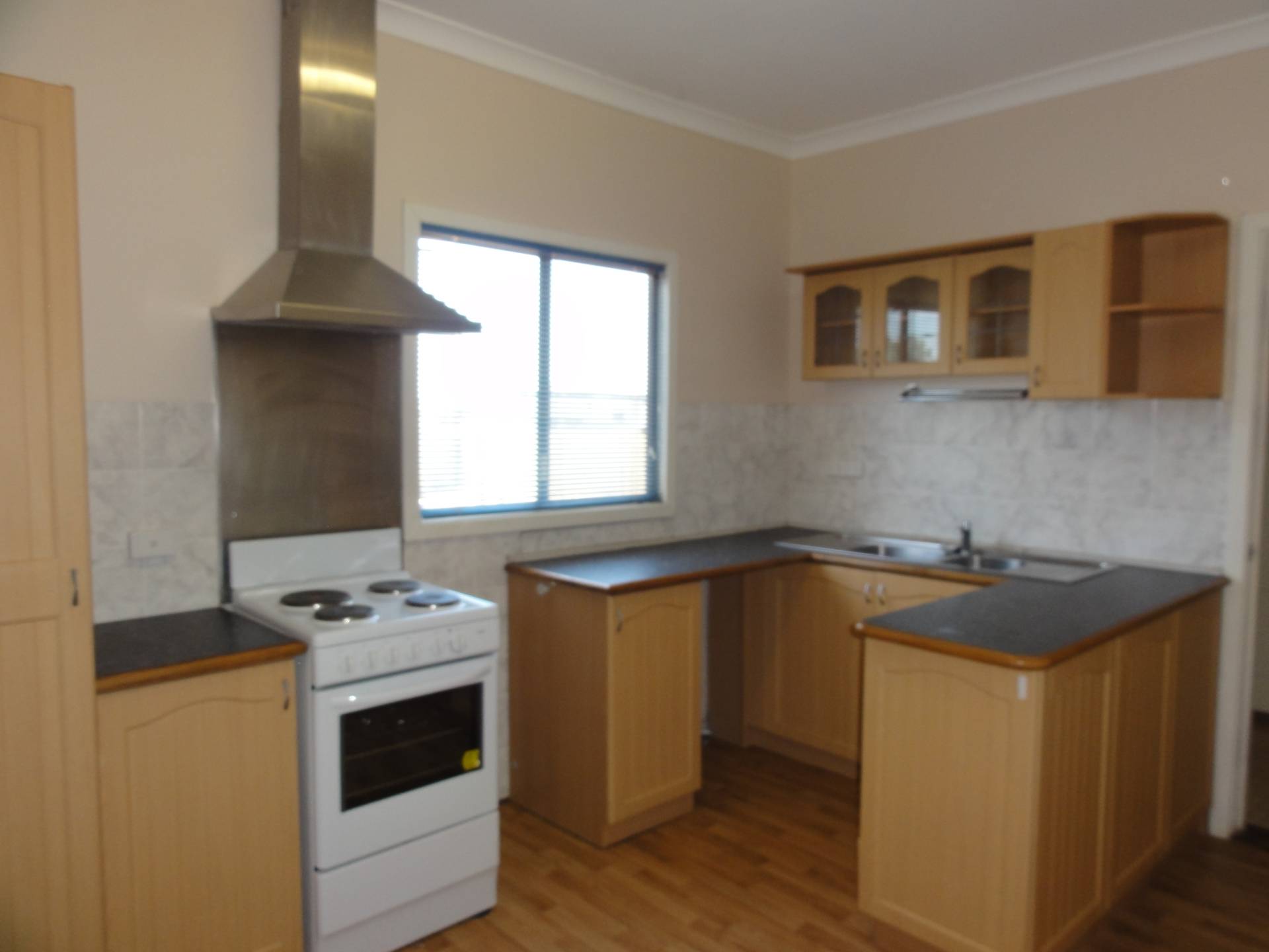 The open lounge and dining area is serviced by a split system air conditioner. The timber look lino flows through the passage way and into the renovated kitchen. This modern kitchen features Electric cooking and bevelled edge finishes to all cabinetry.