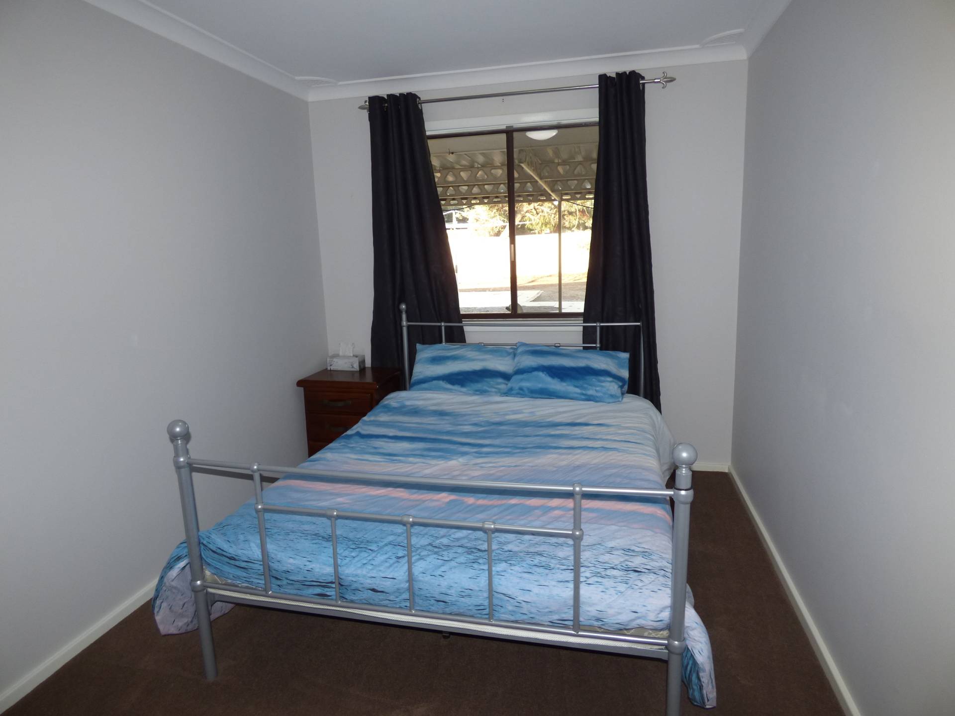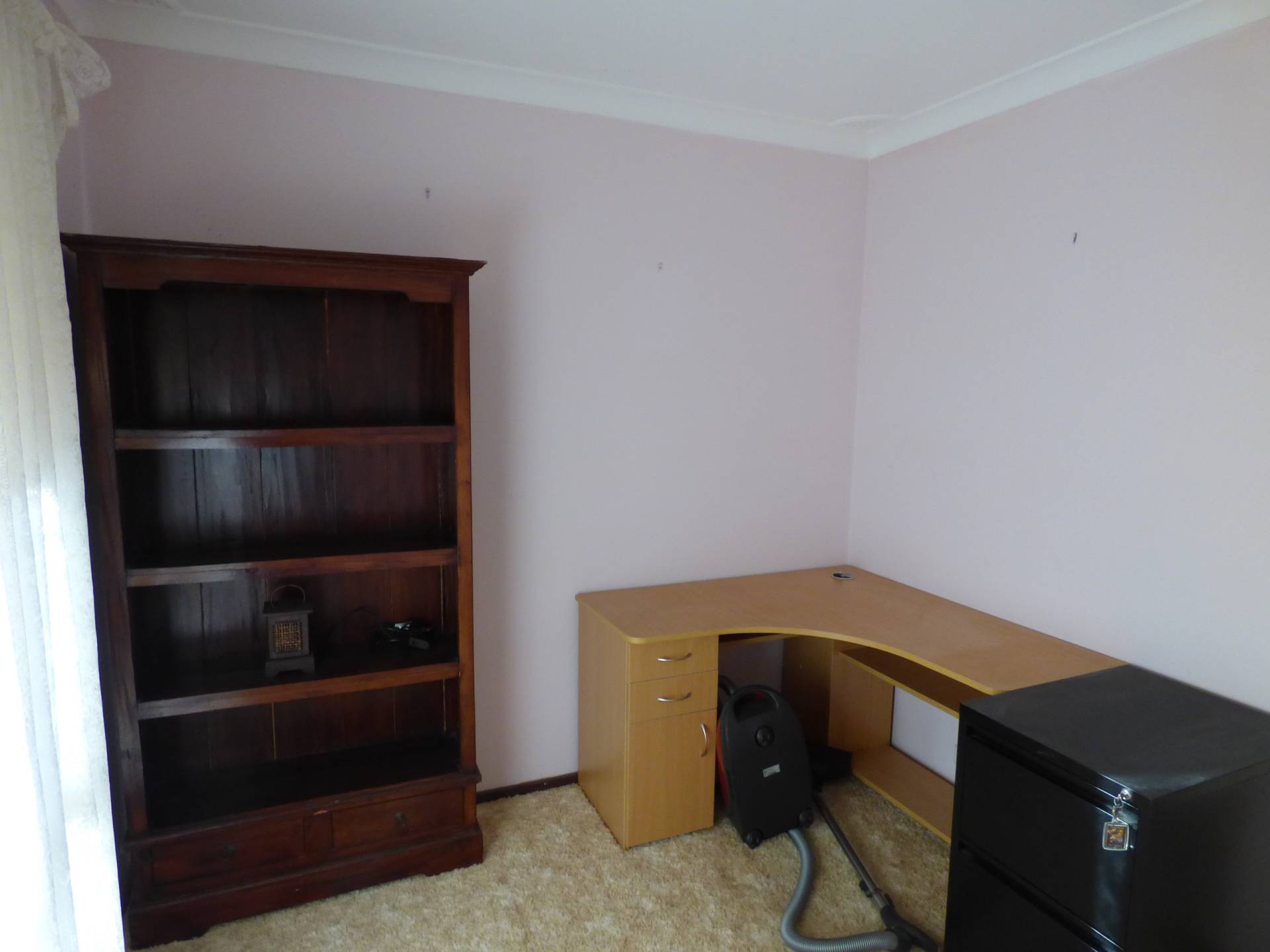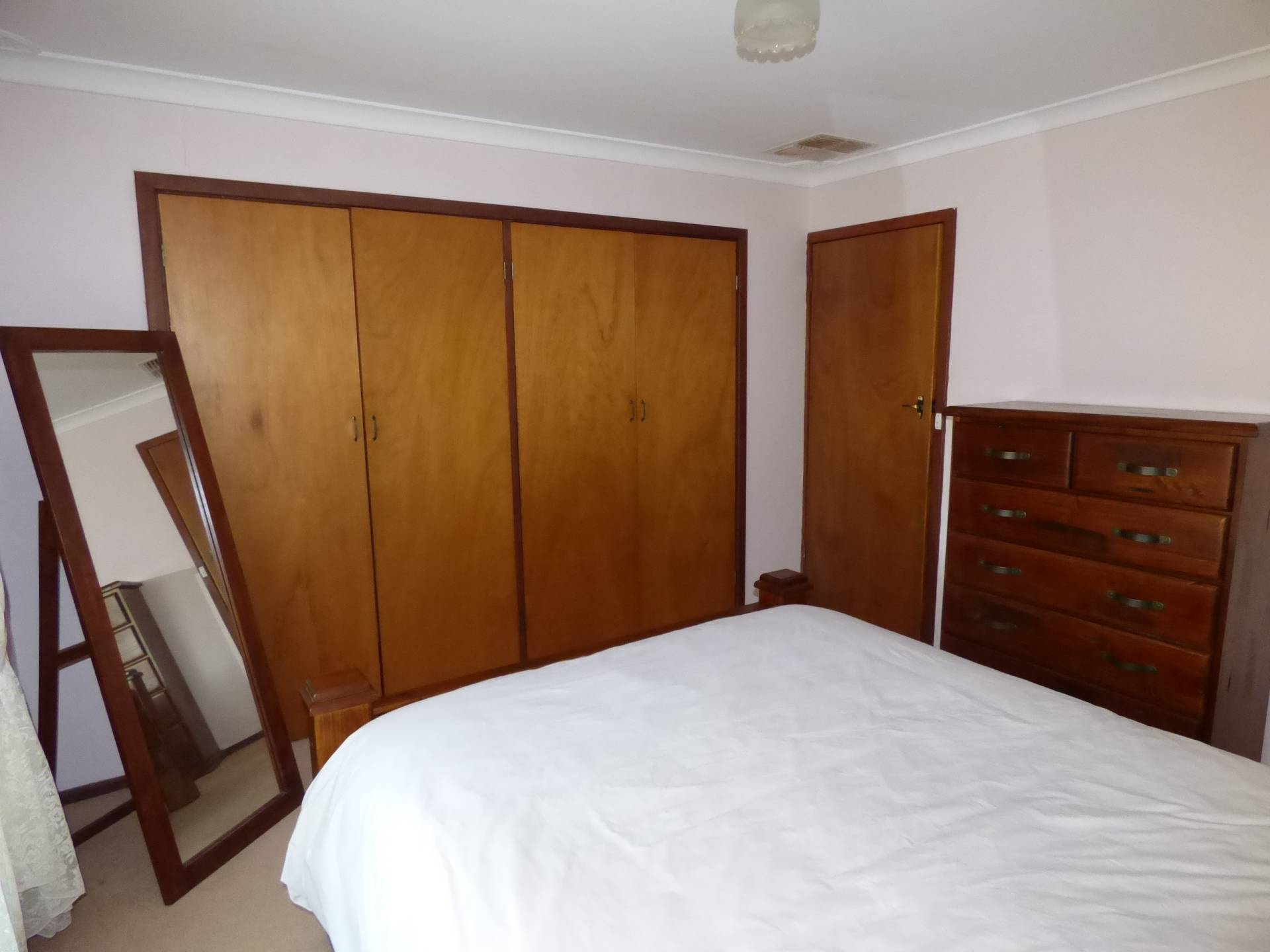 The master bedroom has a queen-sized bed with built in robes as well as a tall boy. Two of the other rooms have a single bed each and the fourth room is currently used as a study.