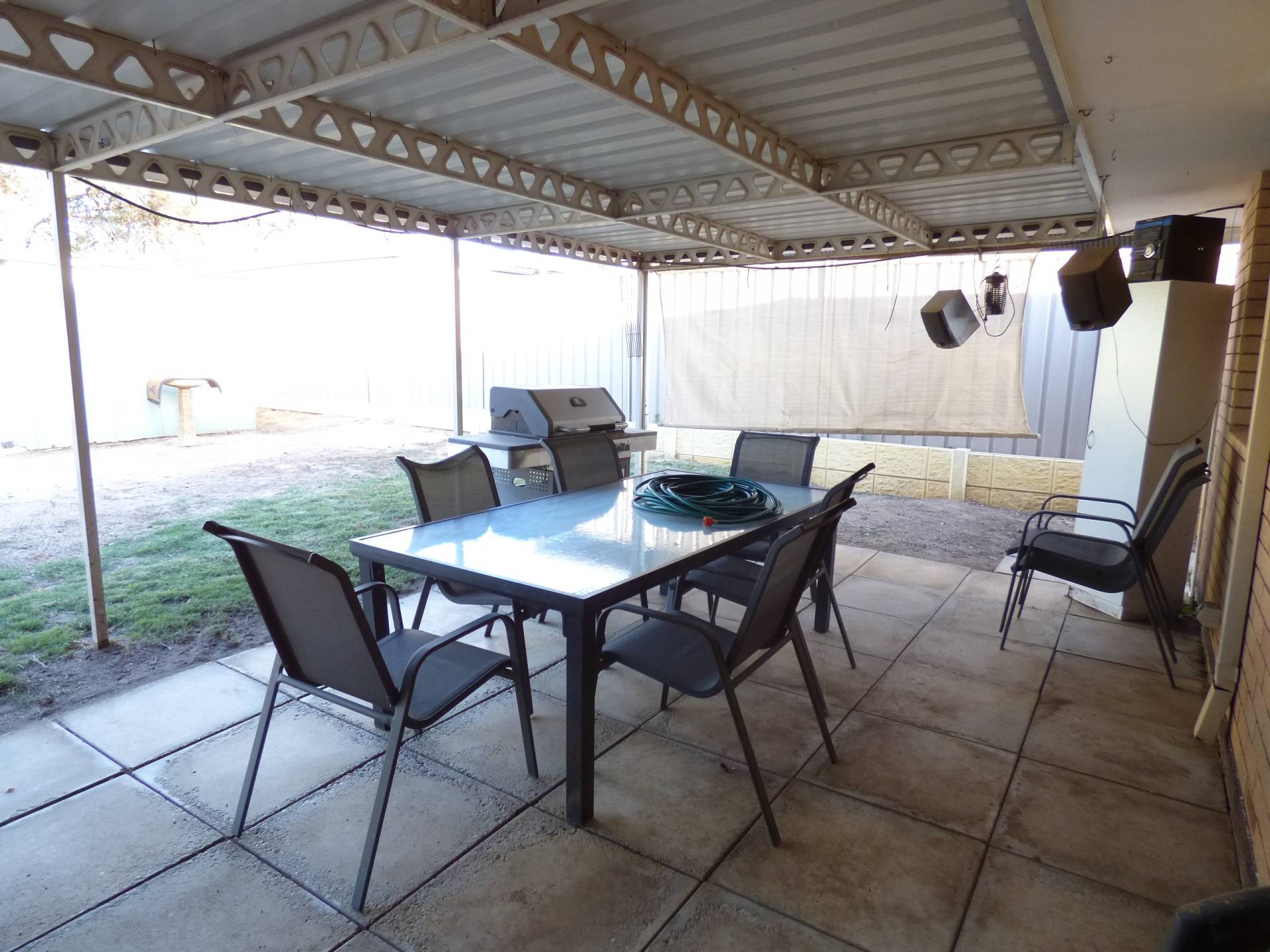 The front and rear yards are both low maintenance. The rear includes a paved patio space with a dining setting and BBQ for the tenants to use.