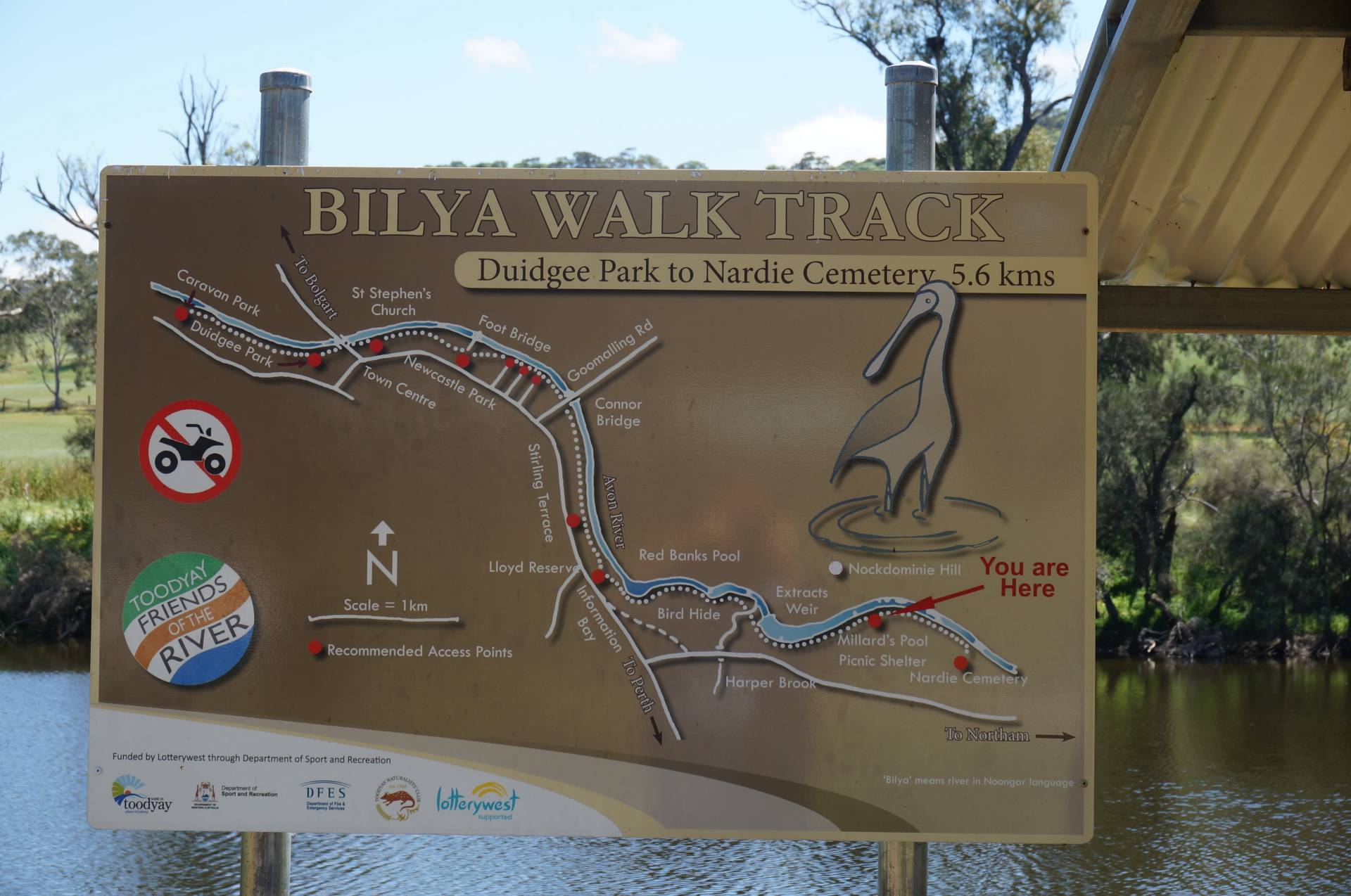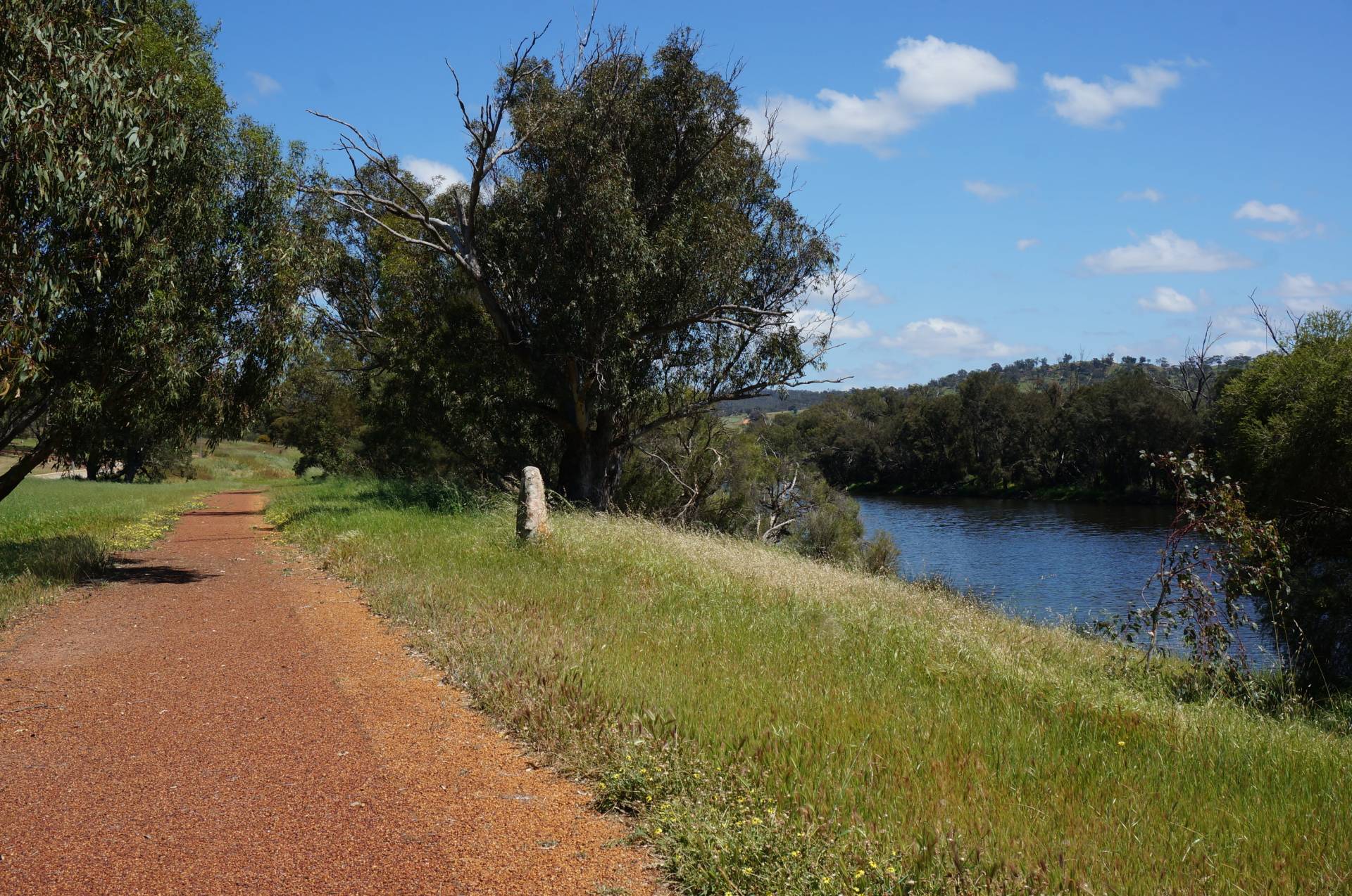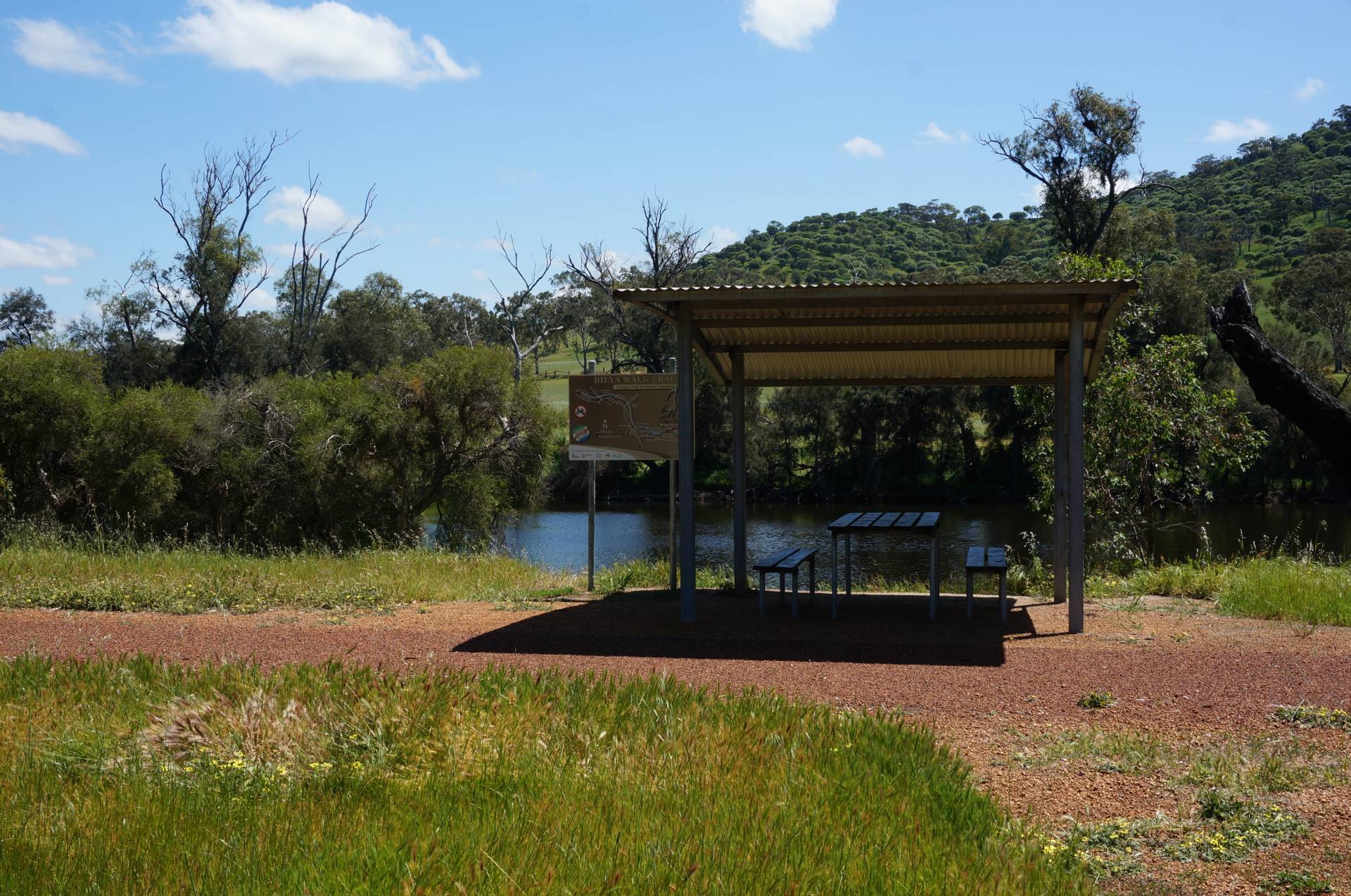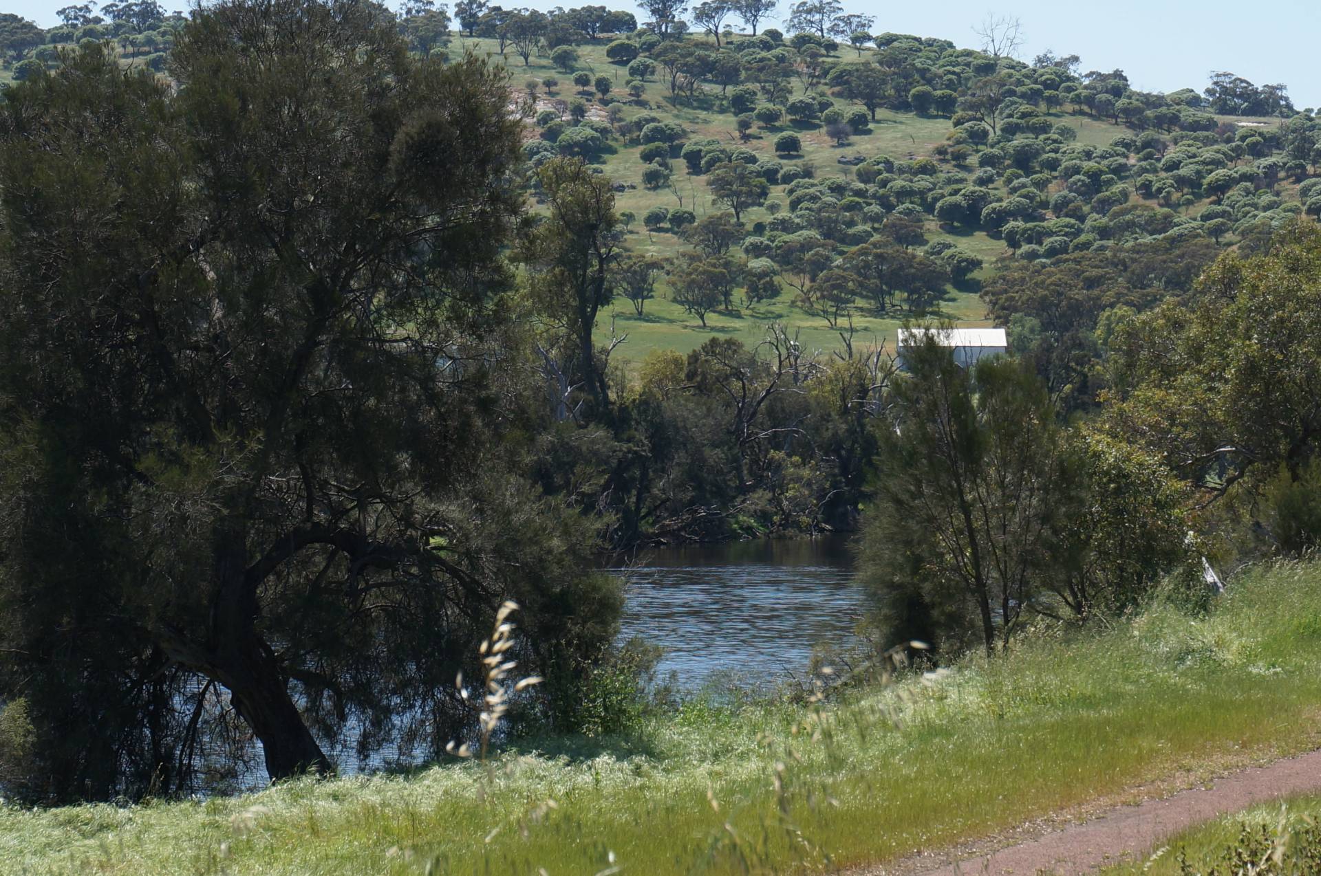 The block rises from its frontage on Campbell Chase cul-de-sac, back to the Toodyay-Northam road. The river is literally just metres across the street and also the Bilya walking track which provides a pleasant stroll along the river all the way into town (Toodyay). This section of the river in front of the block is known as Millard's Pool, being above the Extracts weir it always has plenty of water and looking picturesque.