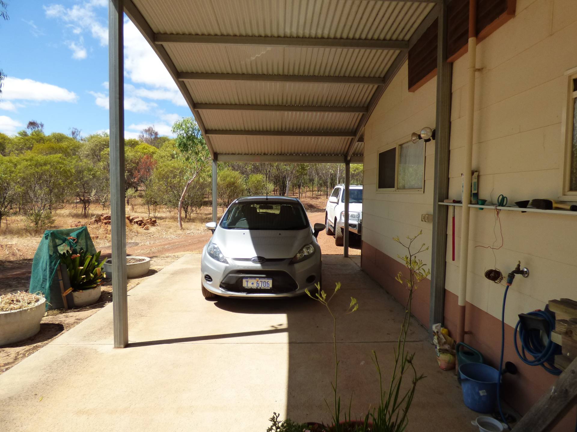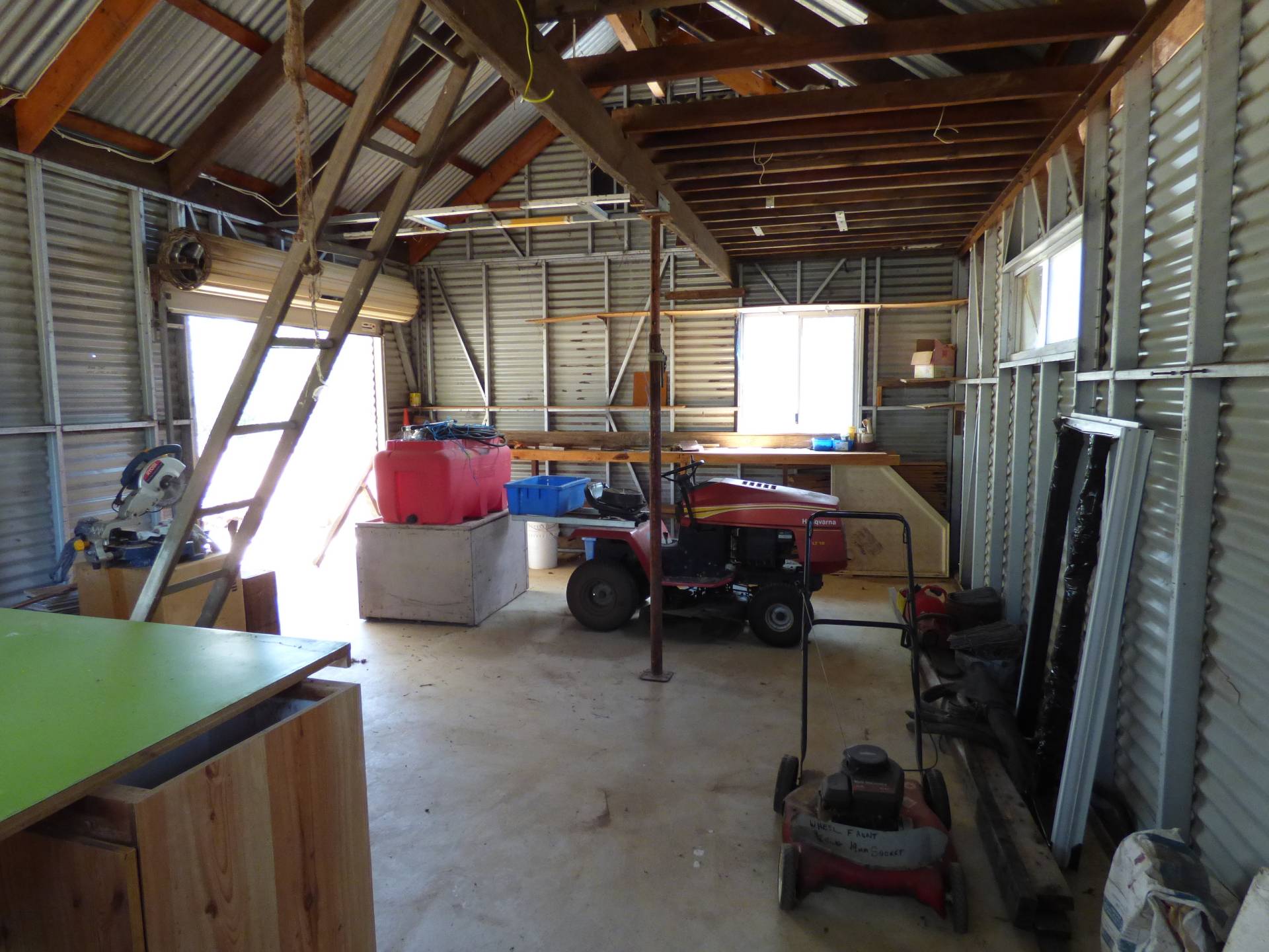 There is a lovely 7.5m x 5m brick chalet with power, lighting and a tile fire which would suit many uses. There is also a 7.5m x 5m colorbond powered workshop with concrete floor built to match the chalet. Close to these buildings is a vegetable garden and fruit trees with their own reticulation system. There is a dam near the veggie patch which collects water run off from the block.