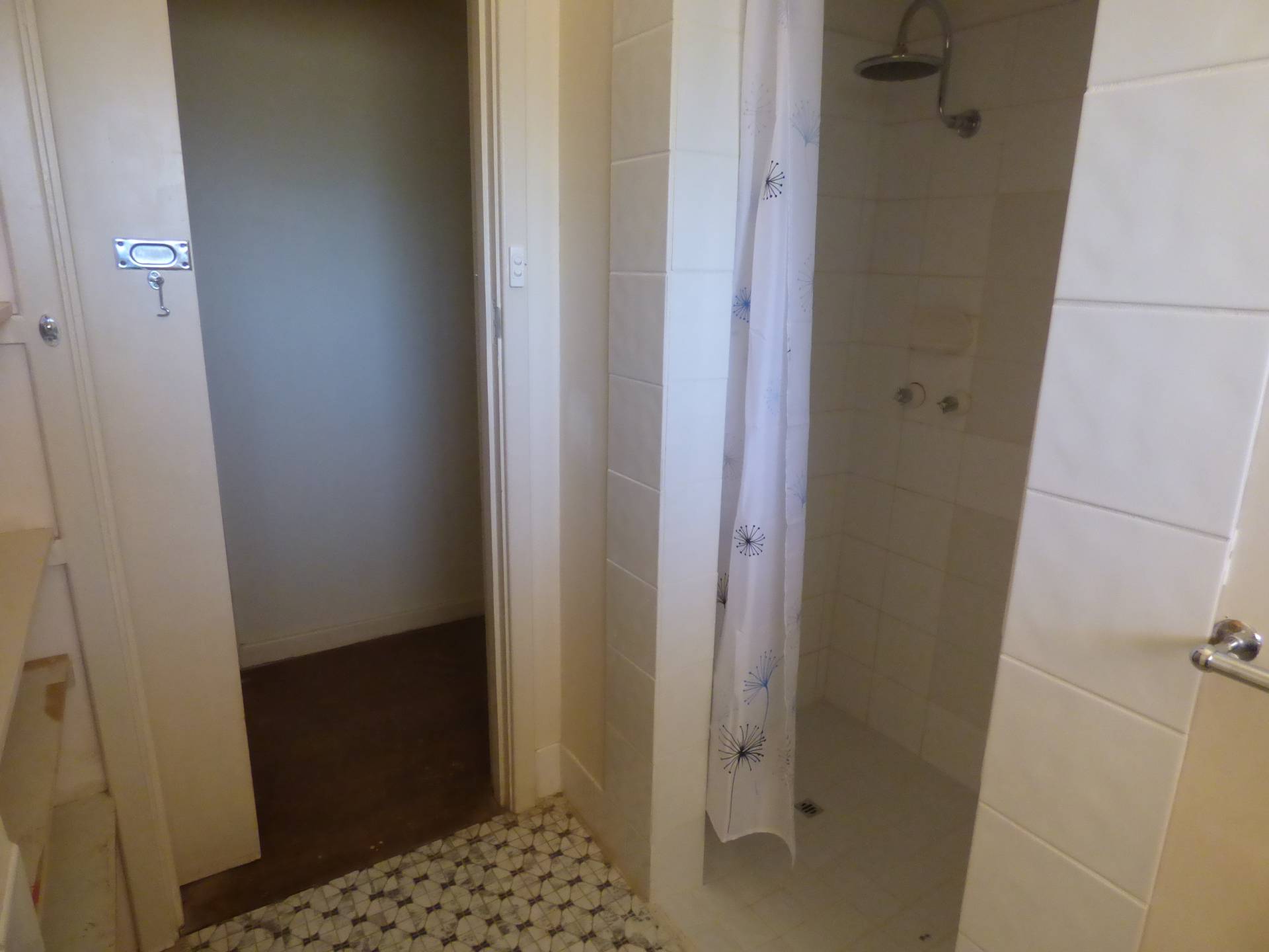 The tiled bathroom features a bathtub and a shower nook. The separate toilet is located off the laundry which has its own access door.