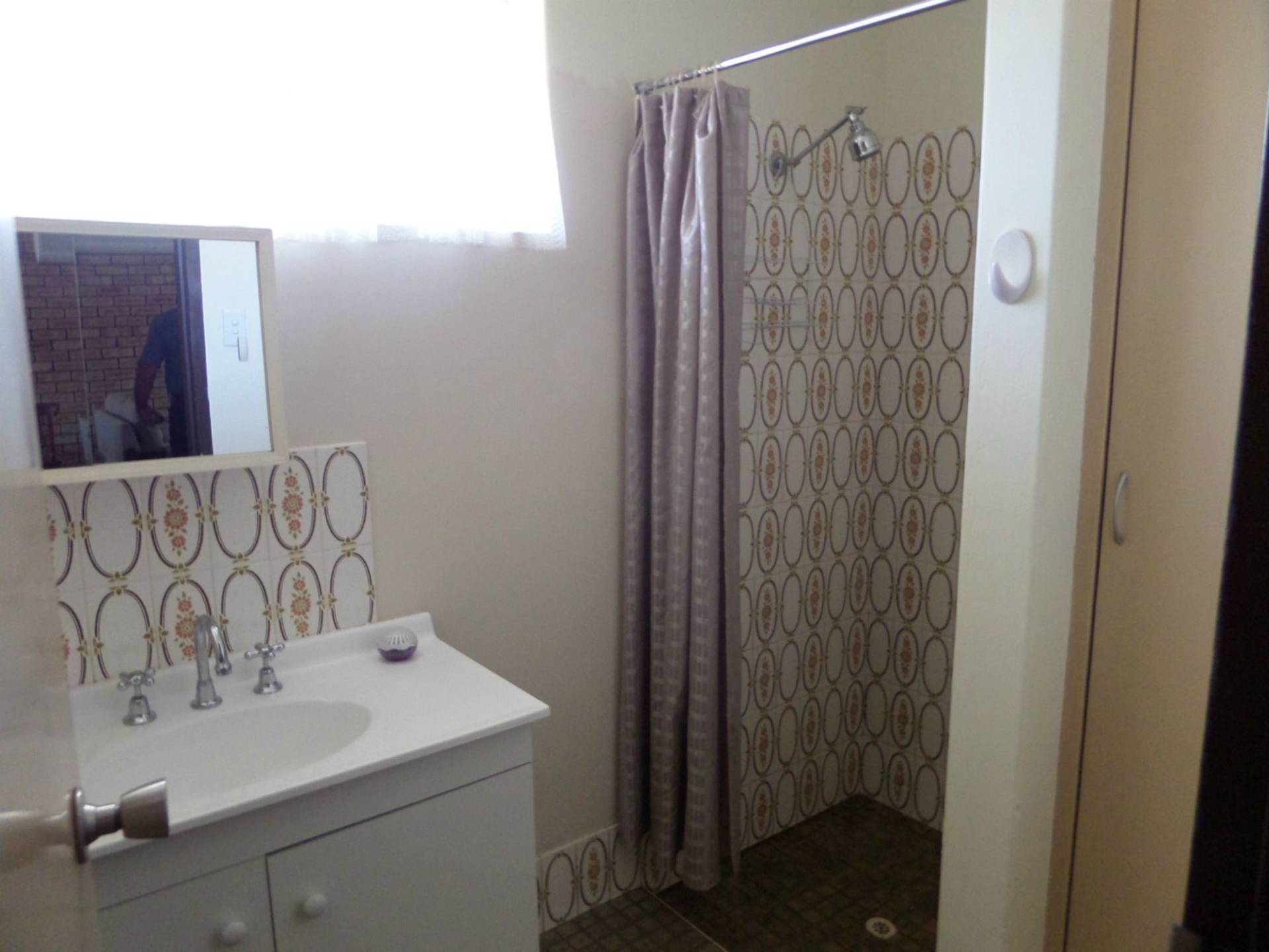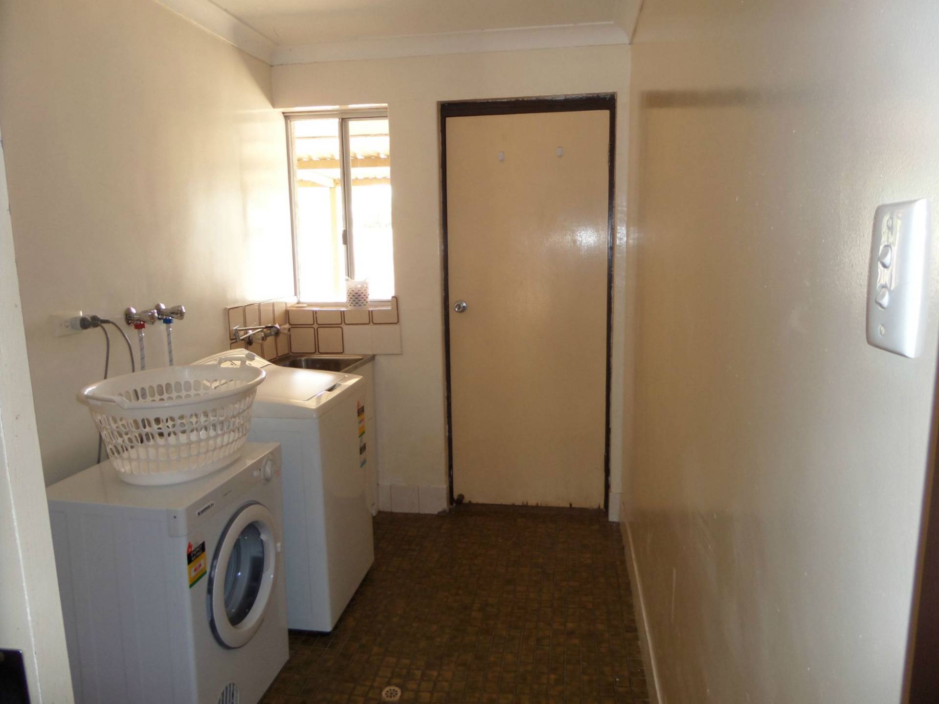Neat and tidy bathroom with built in linen cupboard and the laundry has a washing machine and drier ready to go.