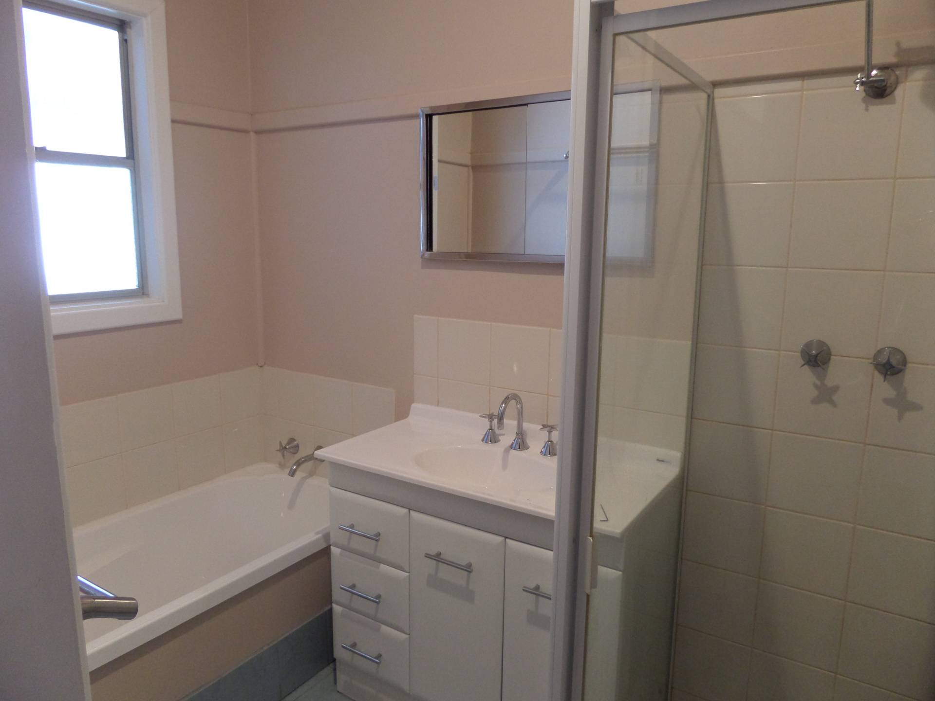 The toilet is separate to the bathroom and contains a large corner shower and bath tub which are serviced by an Electric Hot Water Unit. A separate toilet is alongside the bathroom.