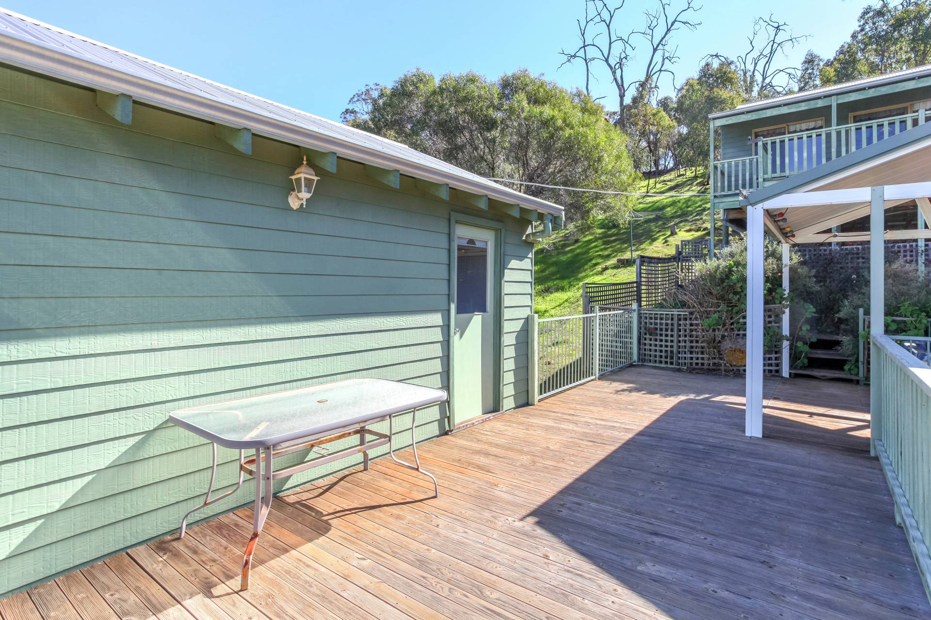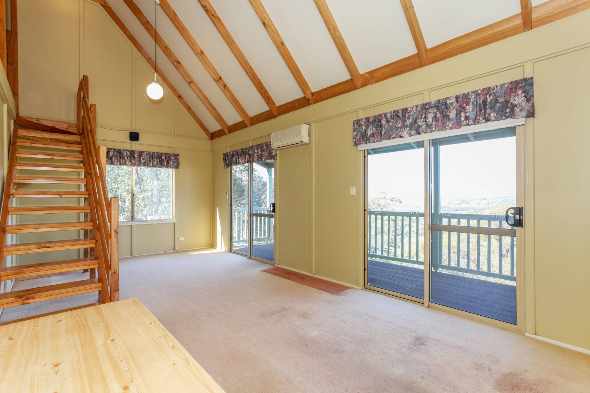 The first level has an open plan lounge, kitchen, dining area with views over the valley. There are two bedrooms to the left hand side when you walk in and the bathroom is on the right.