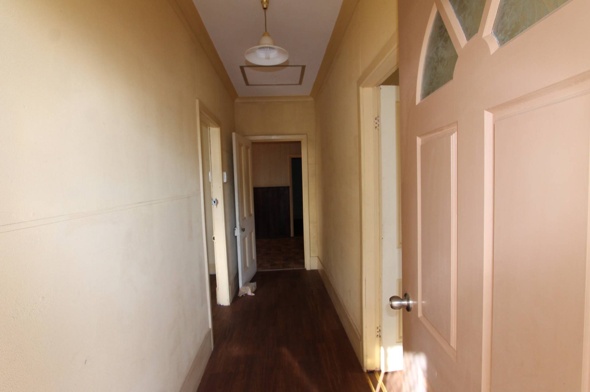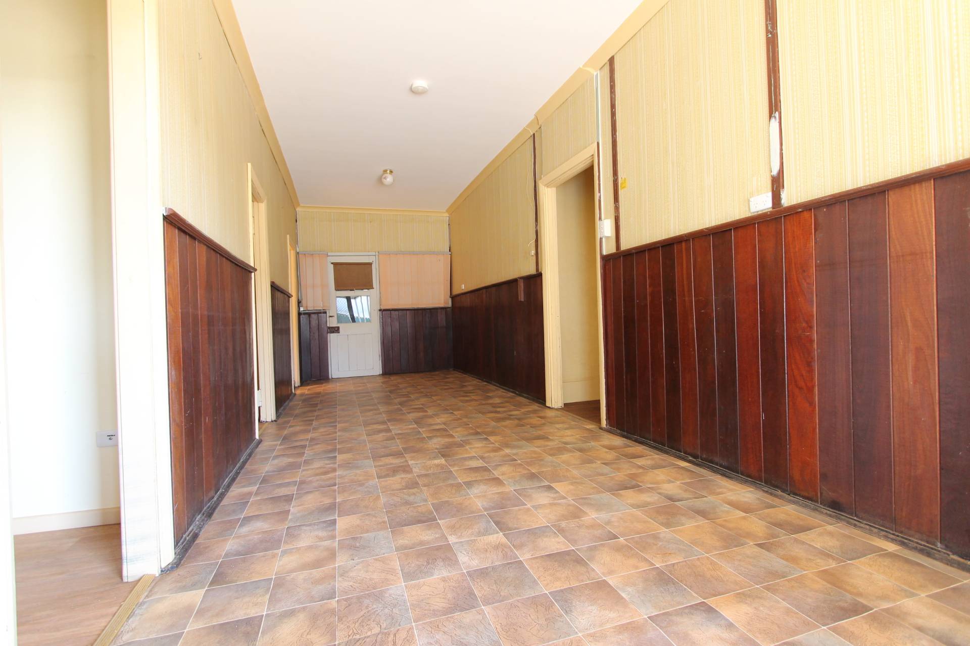 At the end of the entry hall is another long hallway with traditional Jarrah timber boards to the dado rail. This hallway leads to the kitchen, second bedroom and main bathroom.