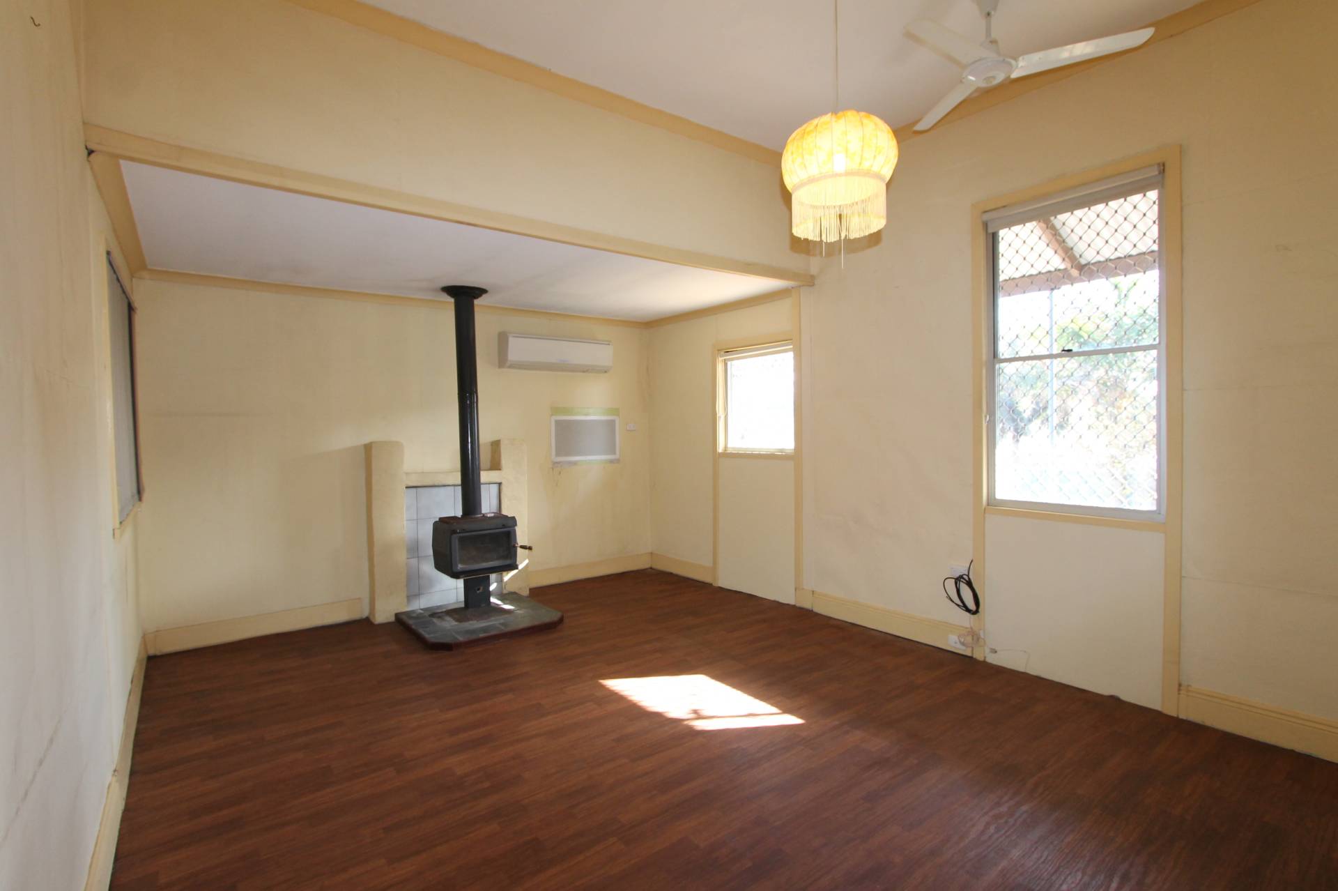Through the front door you will find a formal entry hall with the large lounge room to the right and huge master bedroom to the left. The lounge room features a with slow combustion fire and split system air conditioner and ceiling fan for year-round comfort. The master bedroom has high ceilings and a ceiling fan.