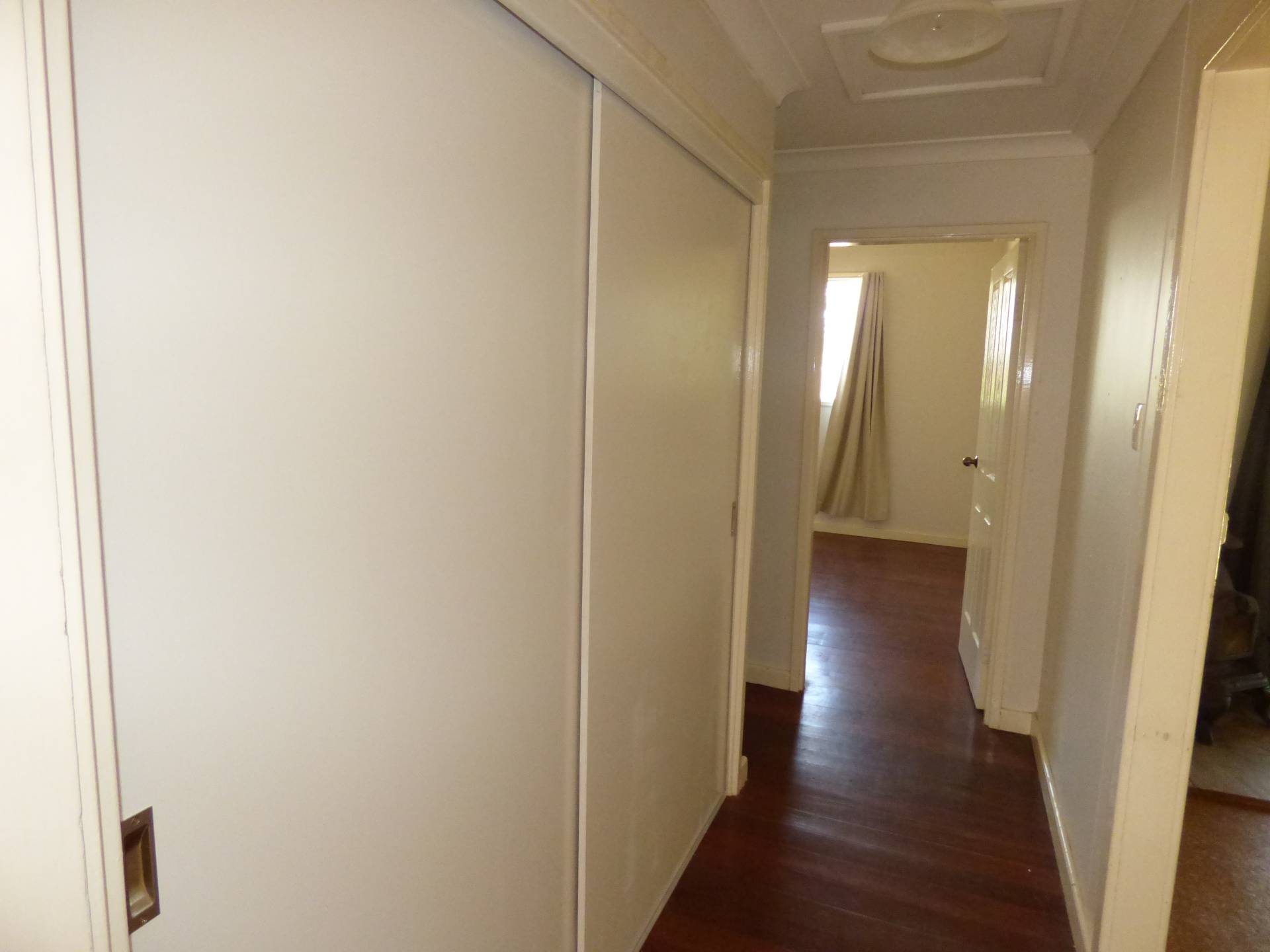 The first bedroom is located off the lounge area and is well sized. Two other bedrooms are at opposite ends of the hall way. In between (in the hall) is a large, double door linen cupboard with plenty of storage space.