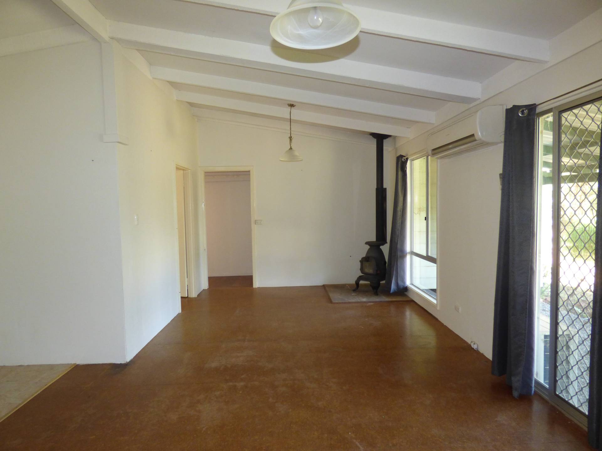 On entrance, you have a small, semi enclosed front verandah to watch the world go by. The lounge room is located to the front of the house and is serviced by a split system air-conditioner and fire place to keep you warm.