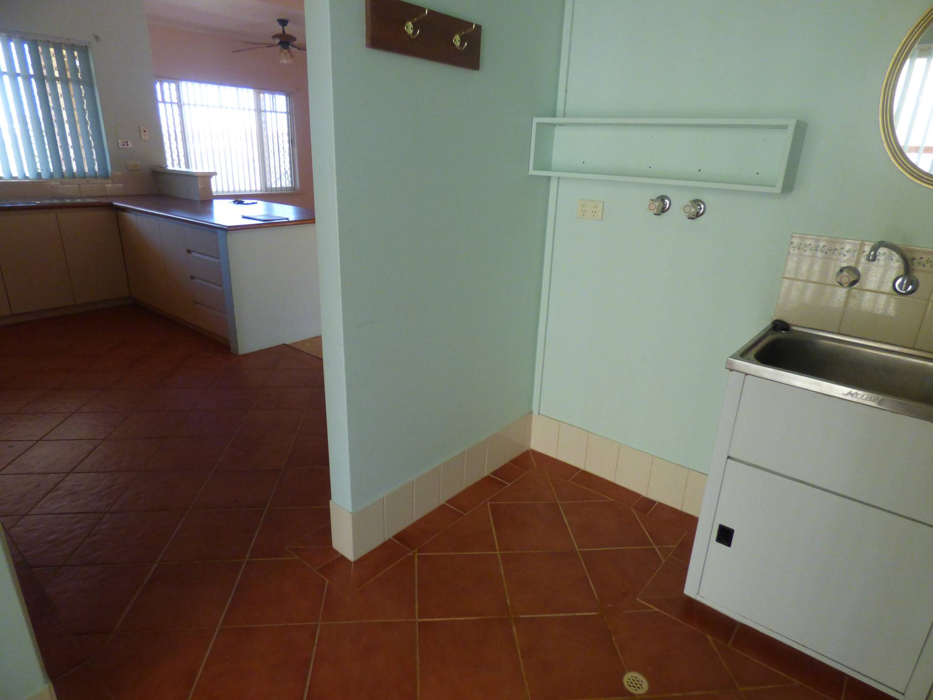 To the rear of the kitchen is the laundry with another single door linen cupboard, sliding glass door to access the carport and a separate toilet