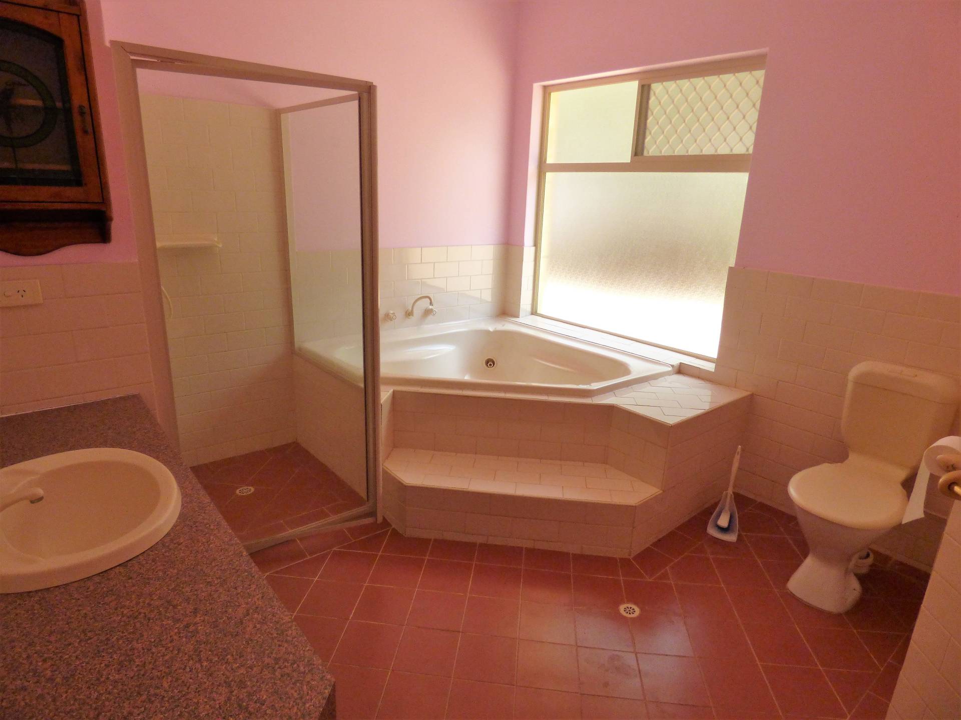 The bathroom is huge with a large vanity, large corner spa bath, separate shower and a second toilet.