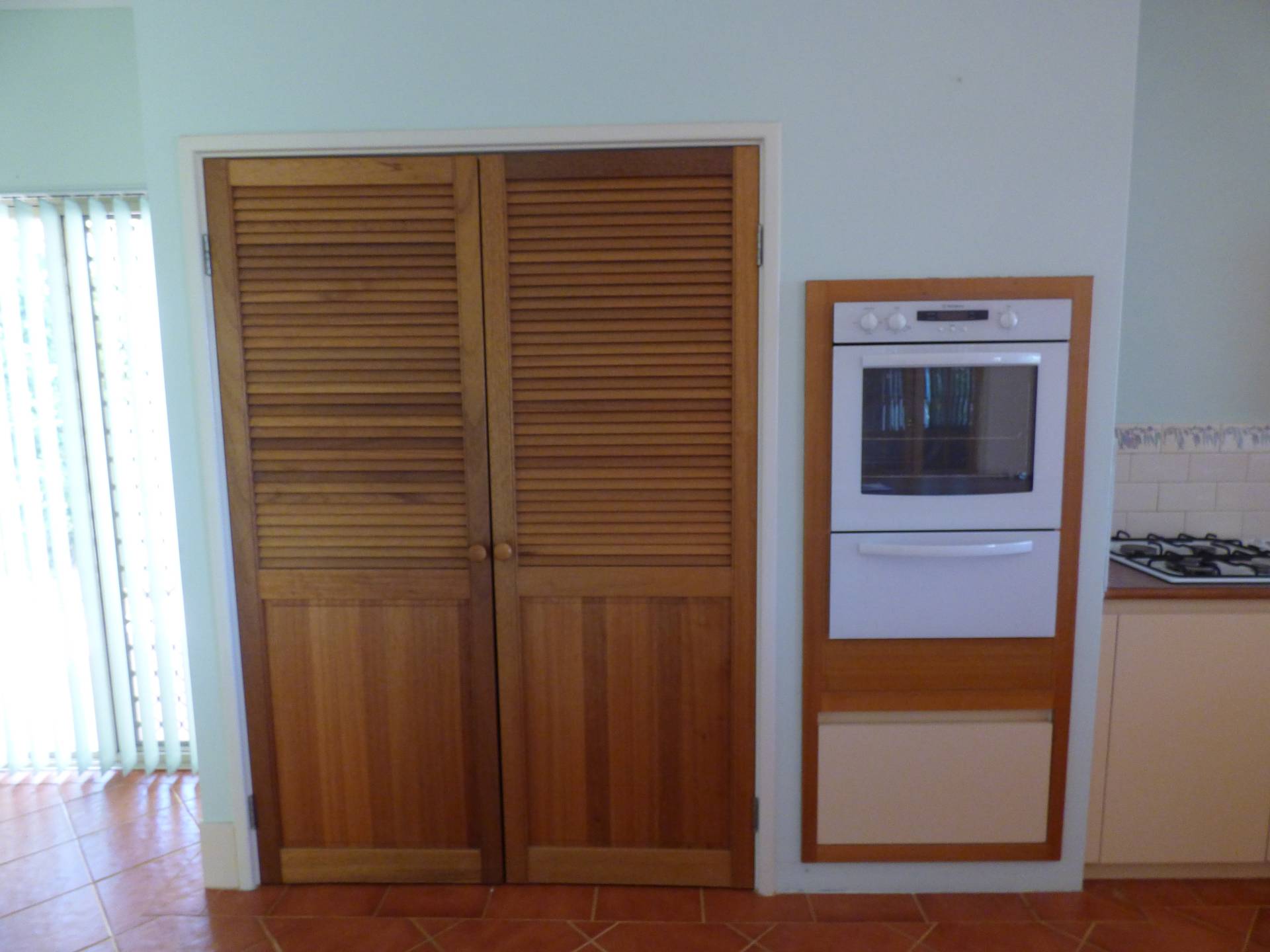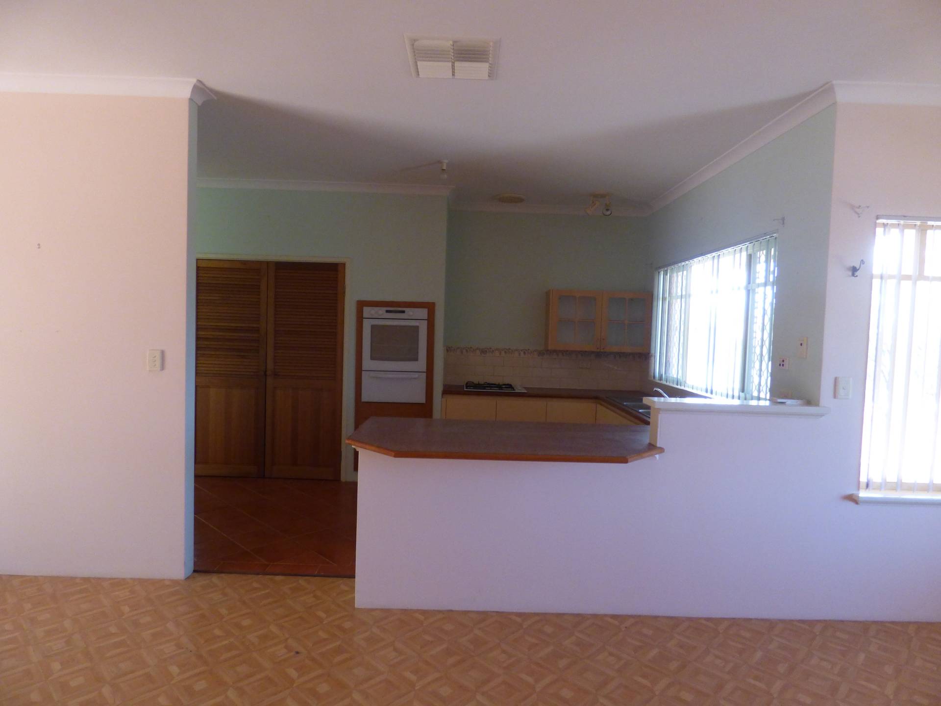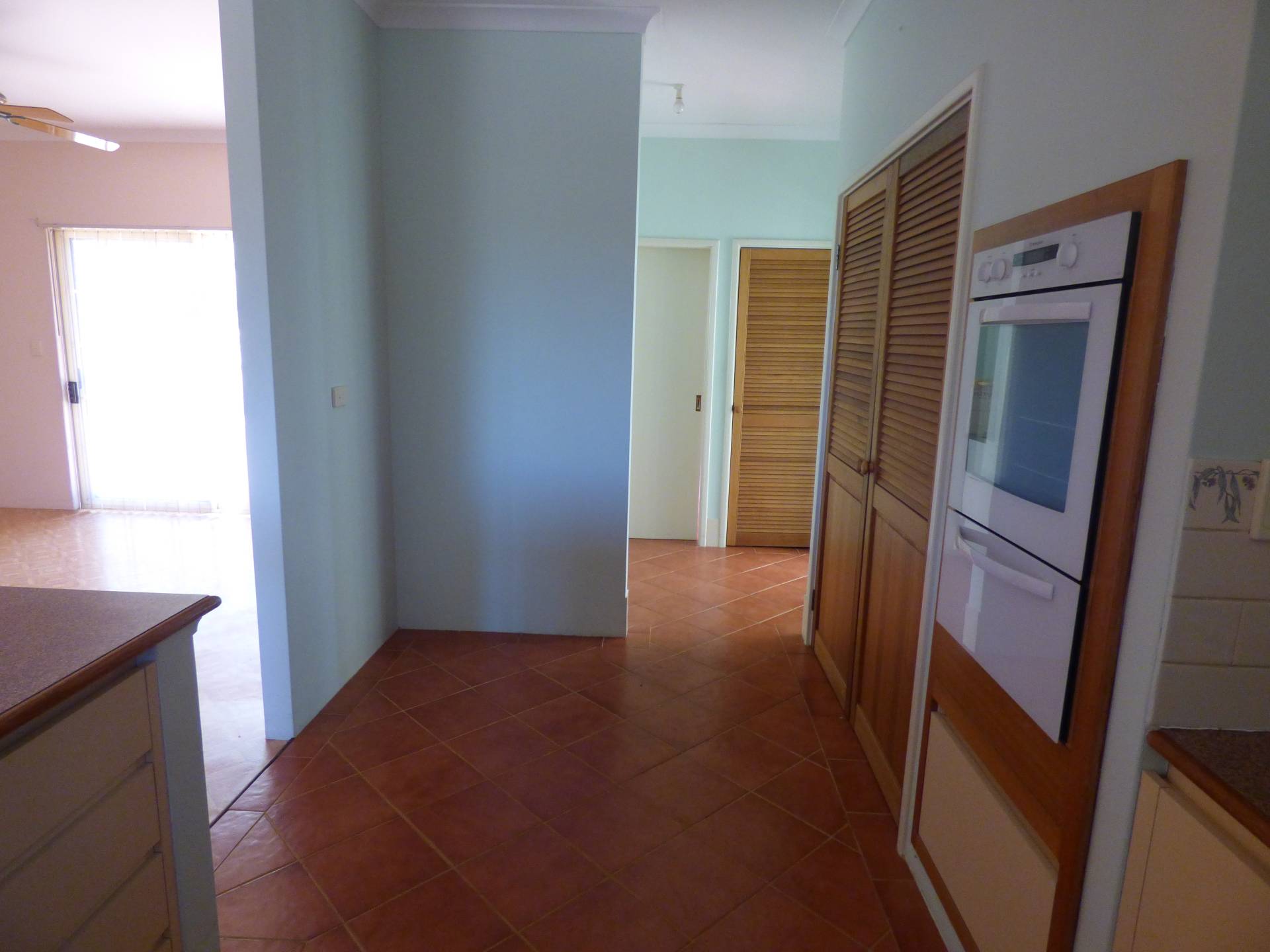 The kitchen is tucked away with ample bench space and plenty of storage space with a large, double door pantry. The kitchen has great views over the hills and has electric cooking.