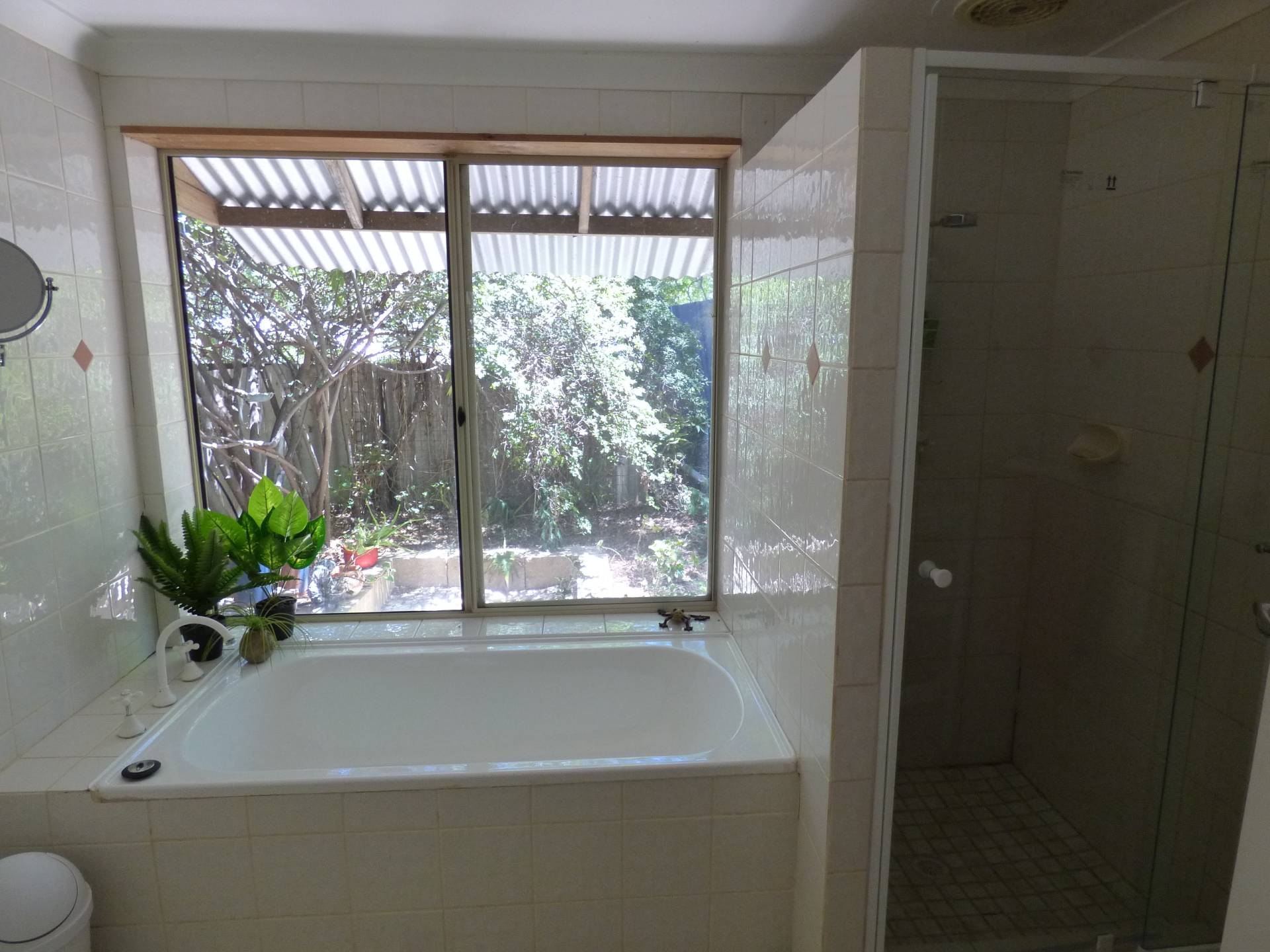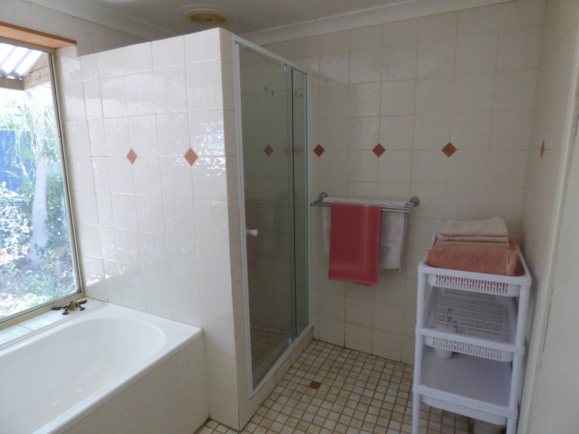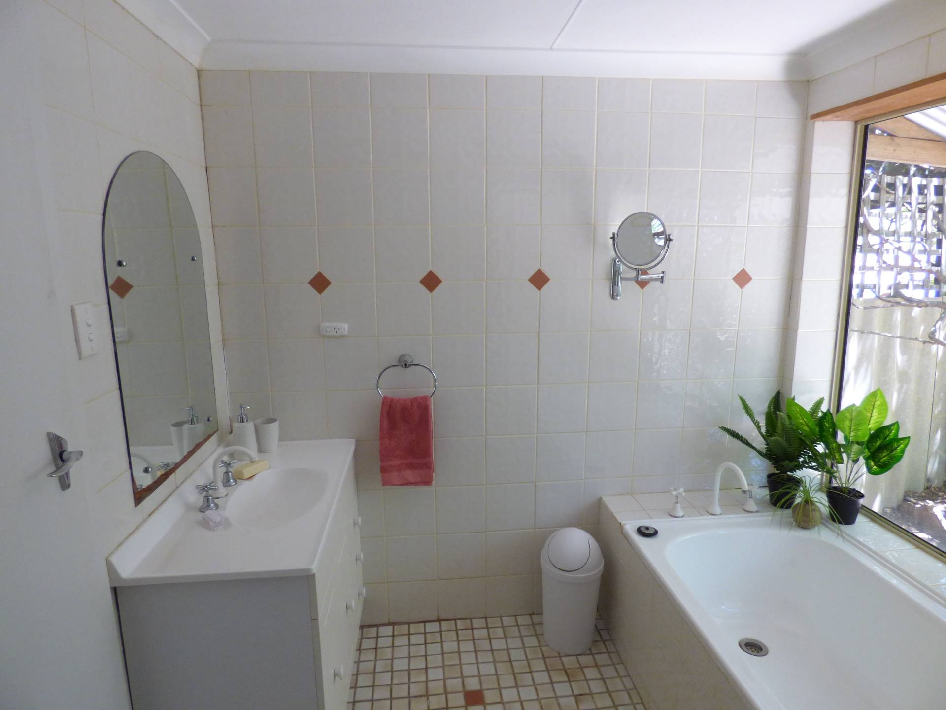 The walk through laundry features a built in linen press and separate toilet and leads to the light and fresh bathroom. This space features a separate private shower and bath tub.