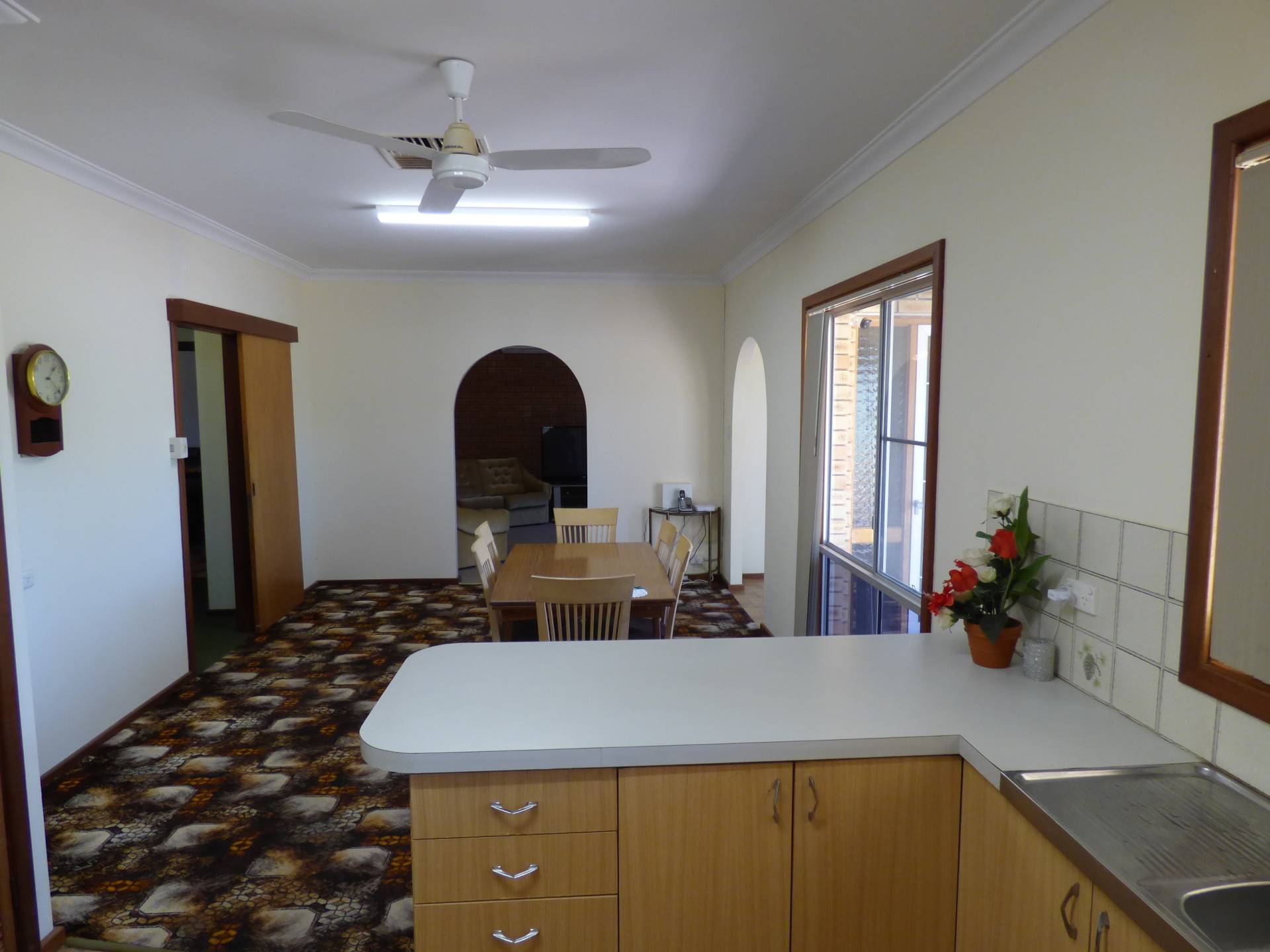 The open plan kitchen and dining room is welcoming and comfortable with great natural light and has the added bonus of both a ceiling fan and evaporative ducted air conditioning which services the entire house.
