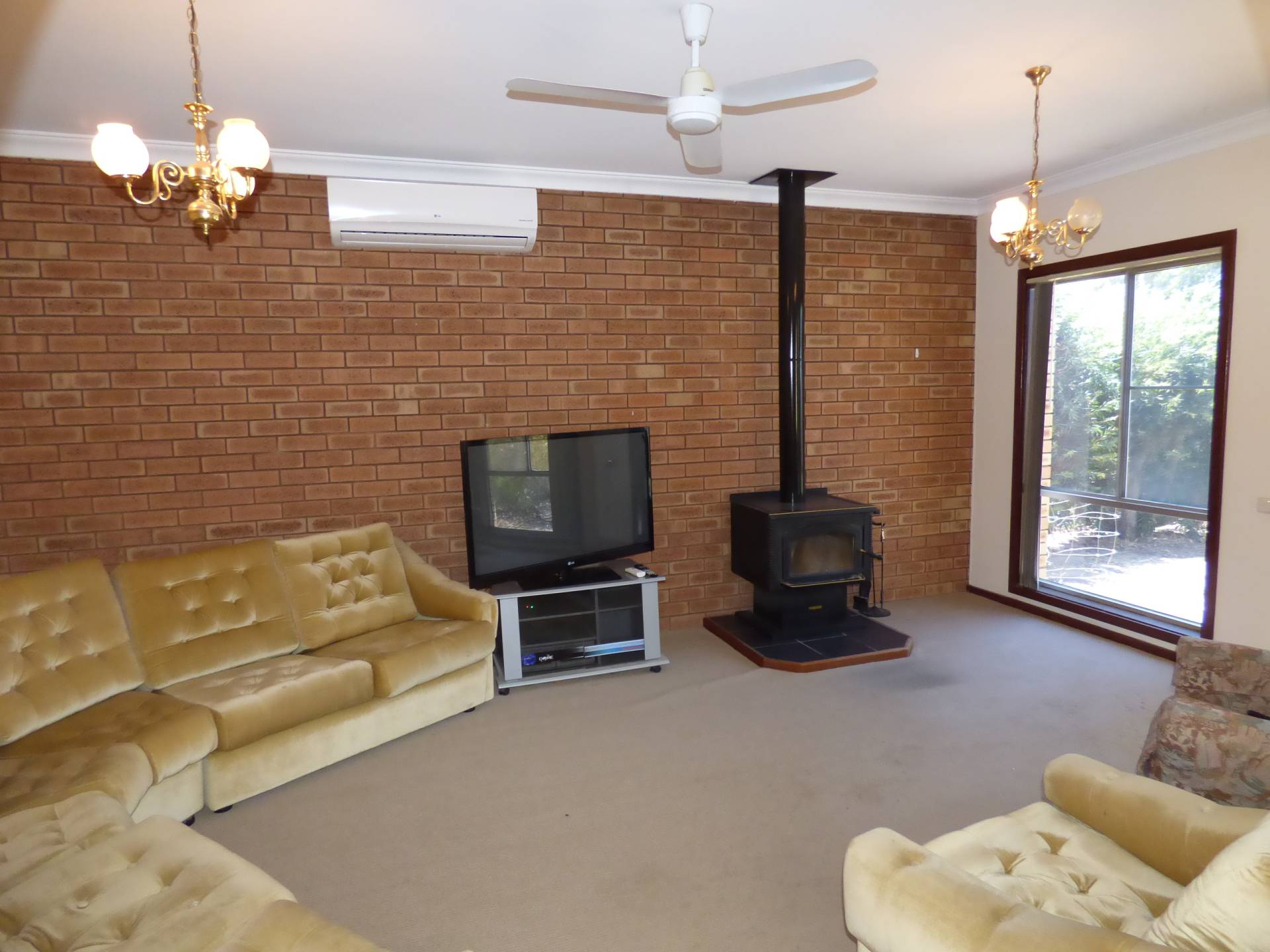 Walking through the tiles entry you have dual access to both the separate lounge room and the dining space. The lounge room is serviced by a wood log fire, ceiling fan AND wall mounted air conditioner to help you combat the hot and cold.