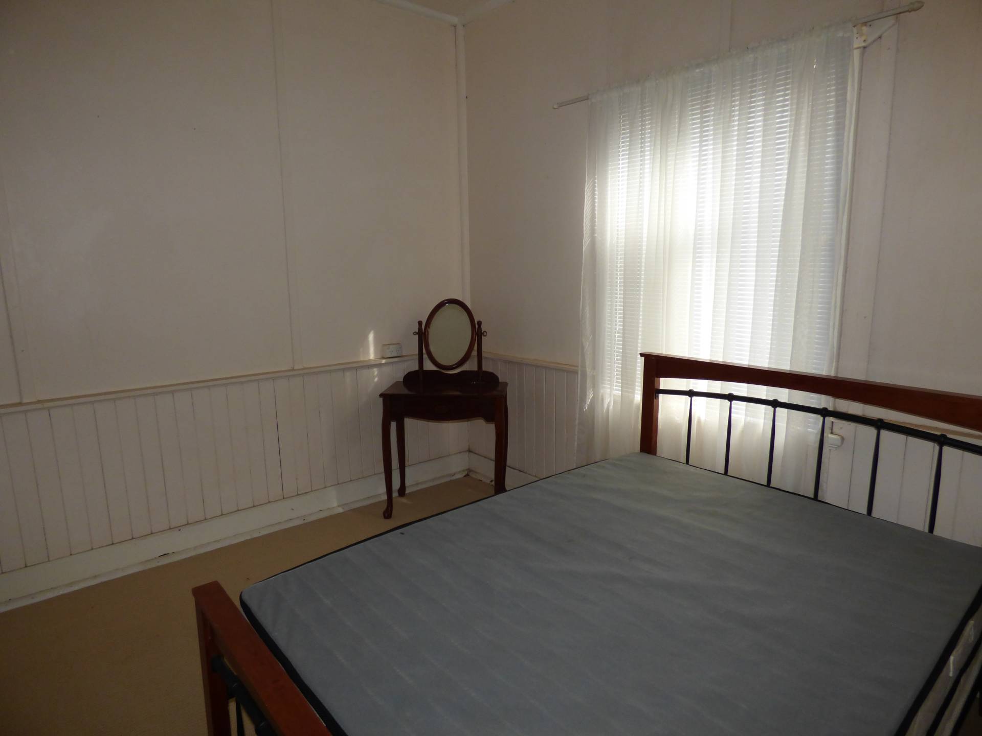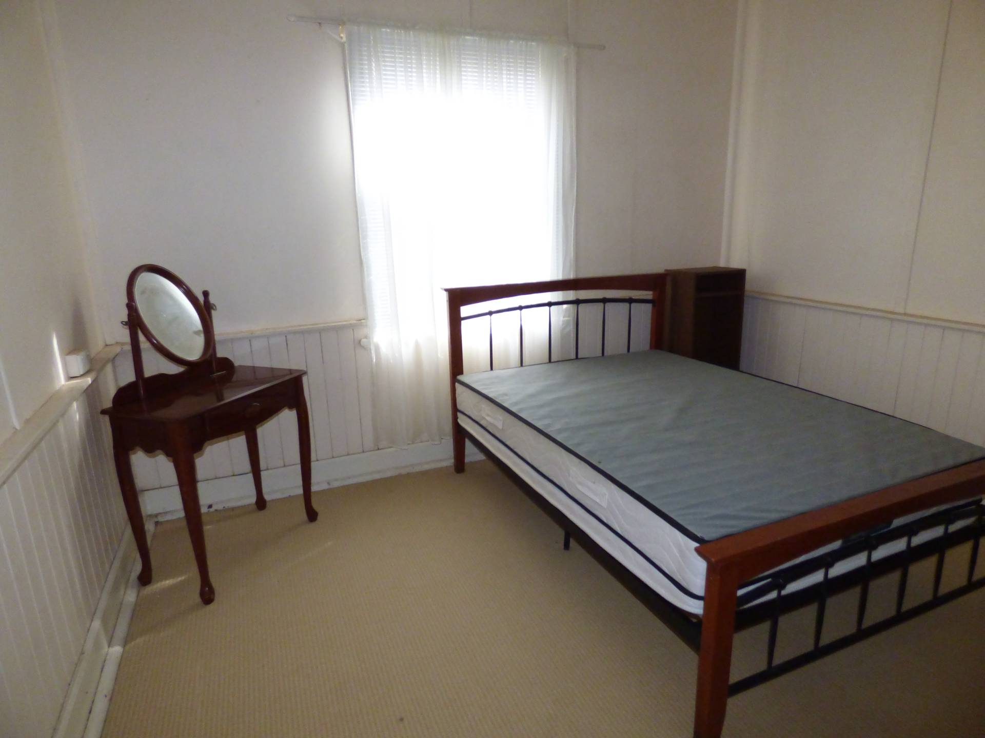 The second bedroom is located off the kitchen area which is carpeted also and of decent size.