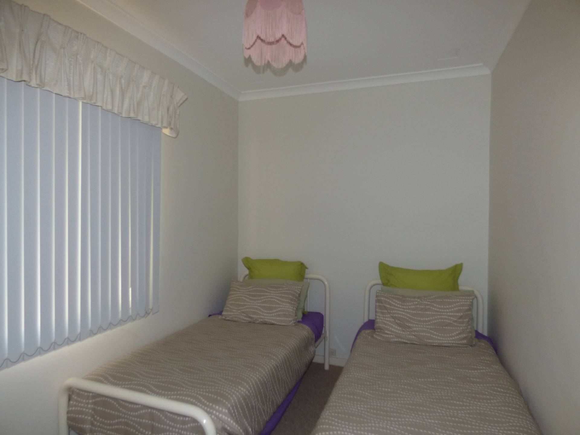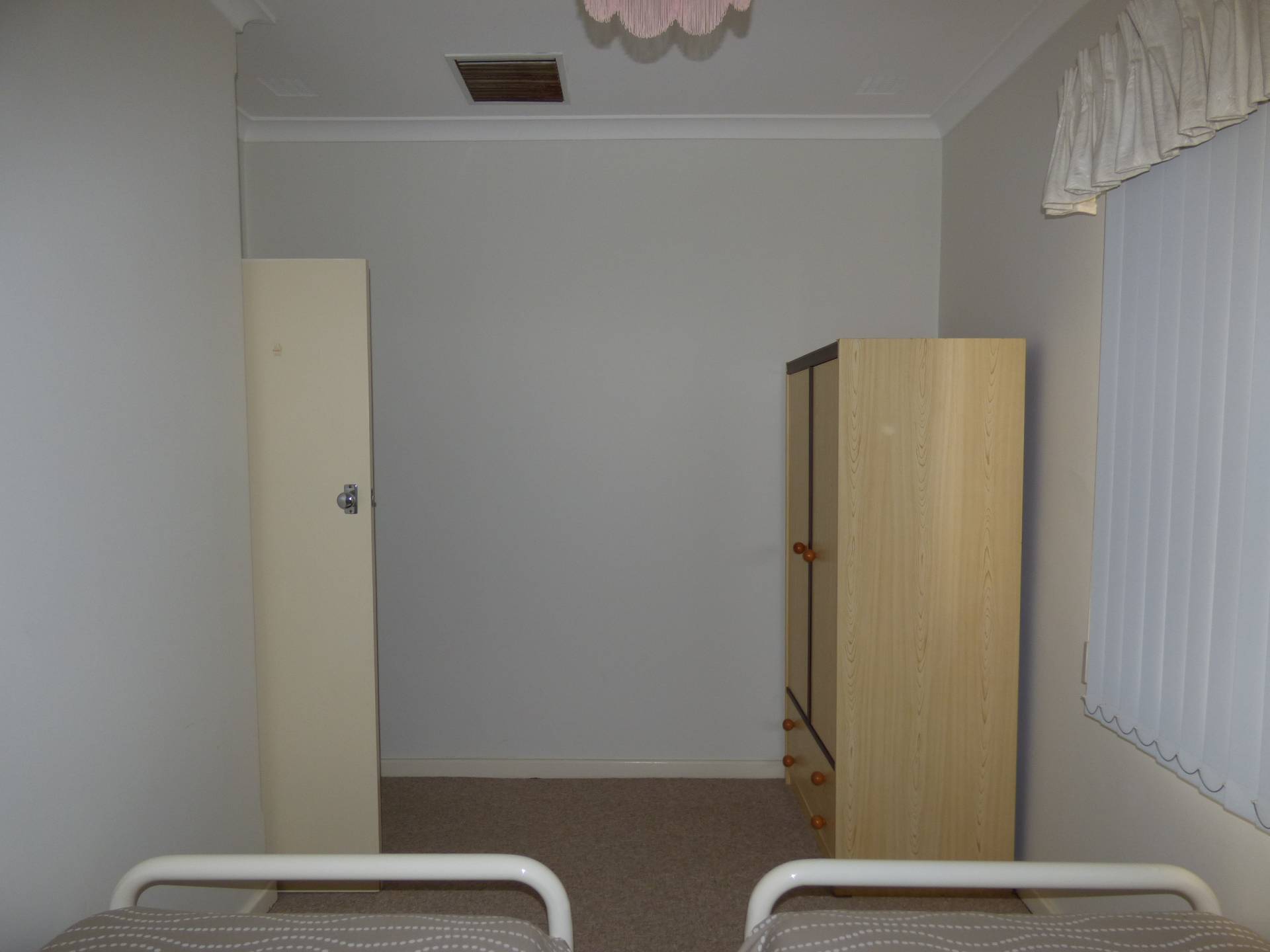 All 3 carpeted bedrooms are located at the front of the house along with the bathroom. All 3 bedrooms are serviced by the evaporative air conditioner.