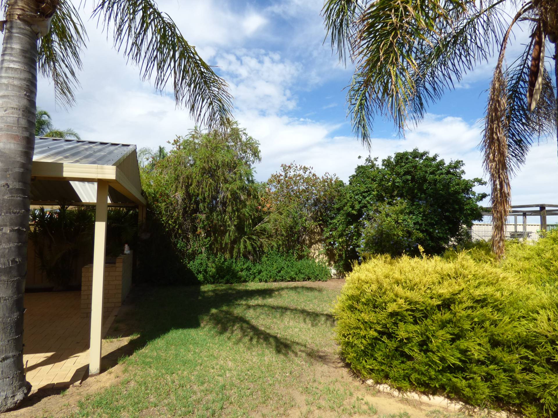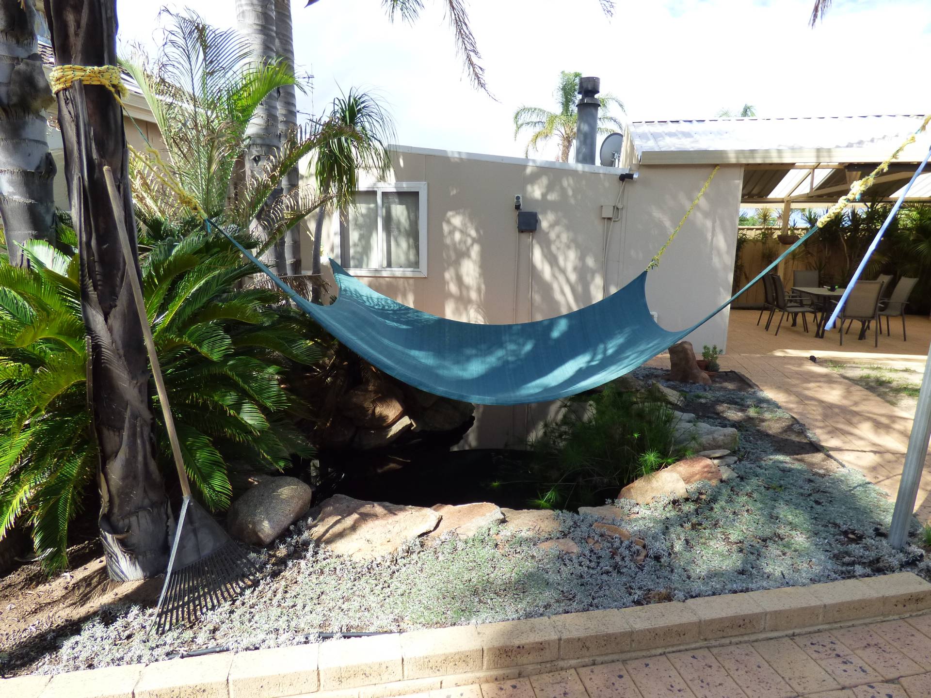 The back yard has a lawn area and to the side of the house is the huge paved patio and a fish pond – fish included!