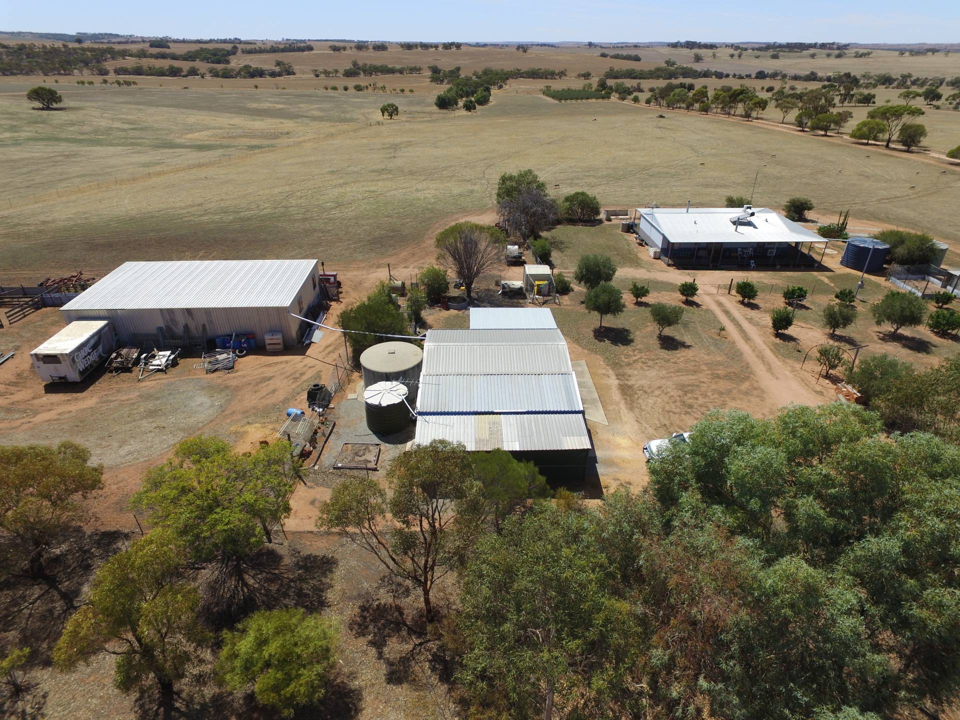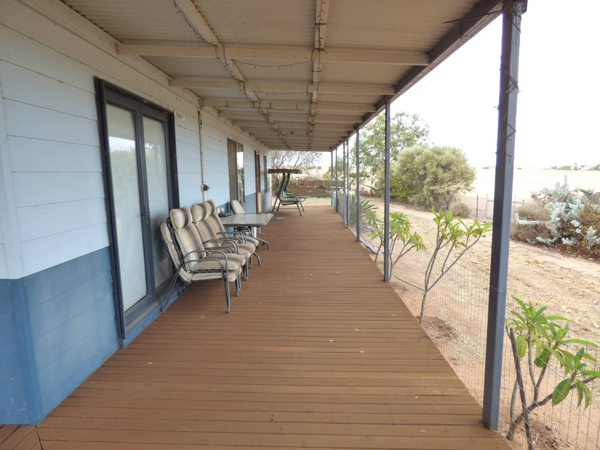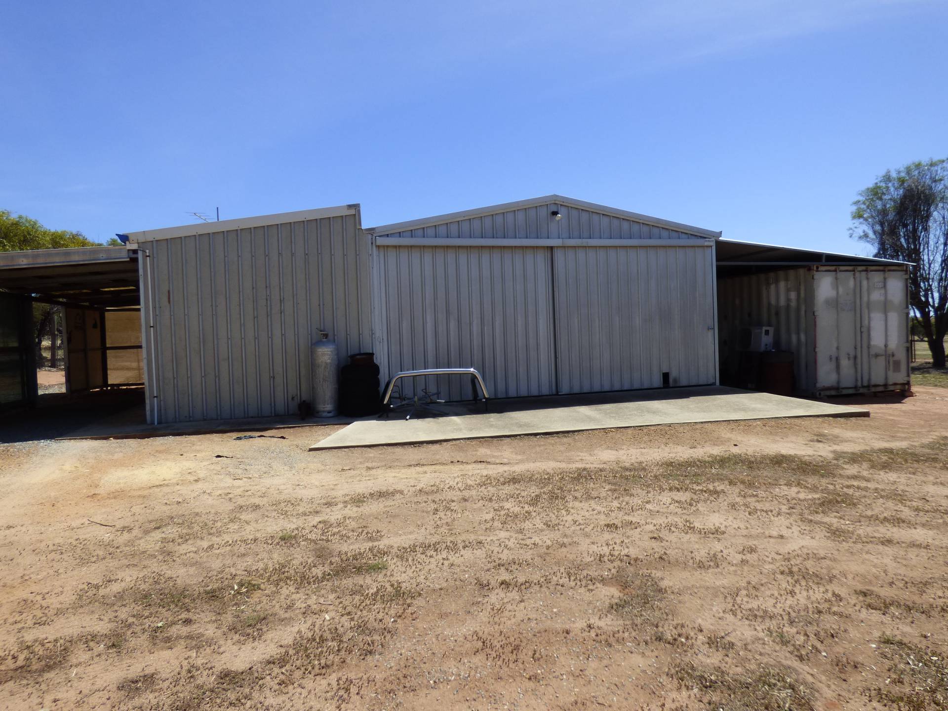 9m x 7m shed with concrete floor and power with carports either side.