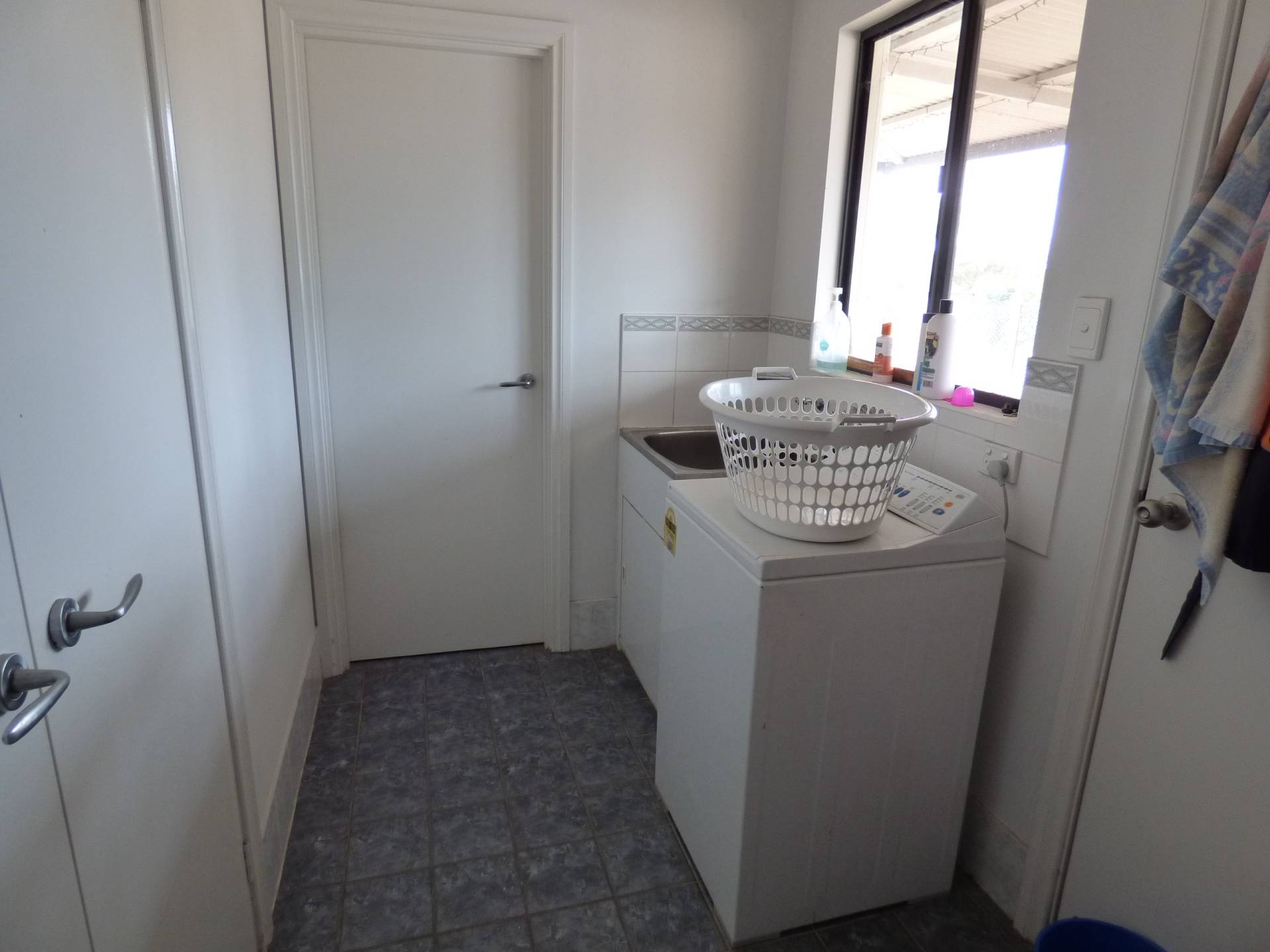 The laundry has a built in linen cupboard and there is a separate toilet off of the laundry.