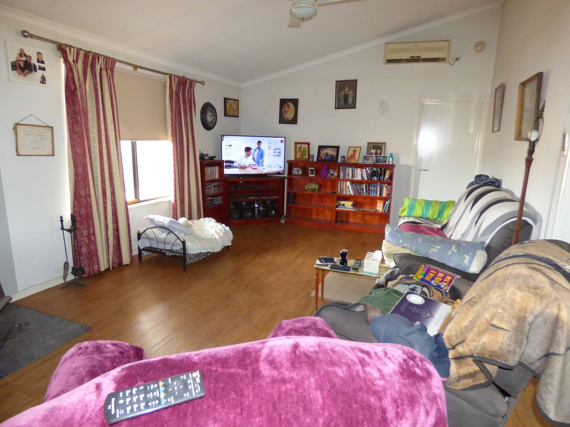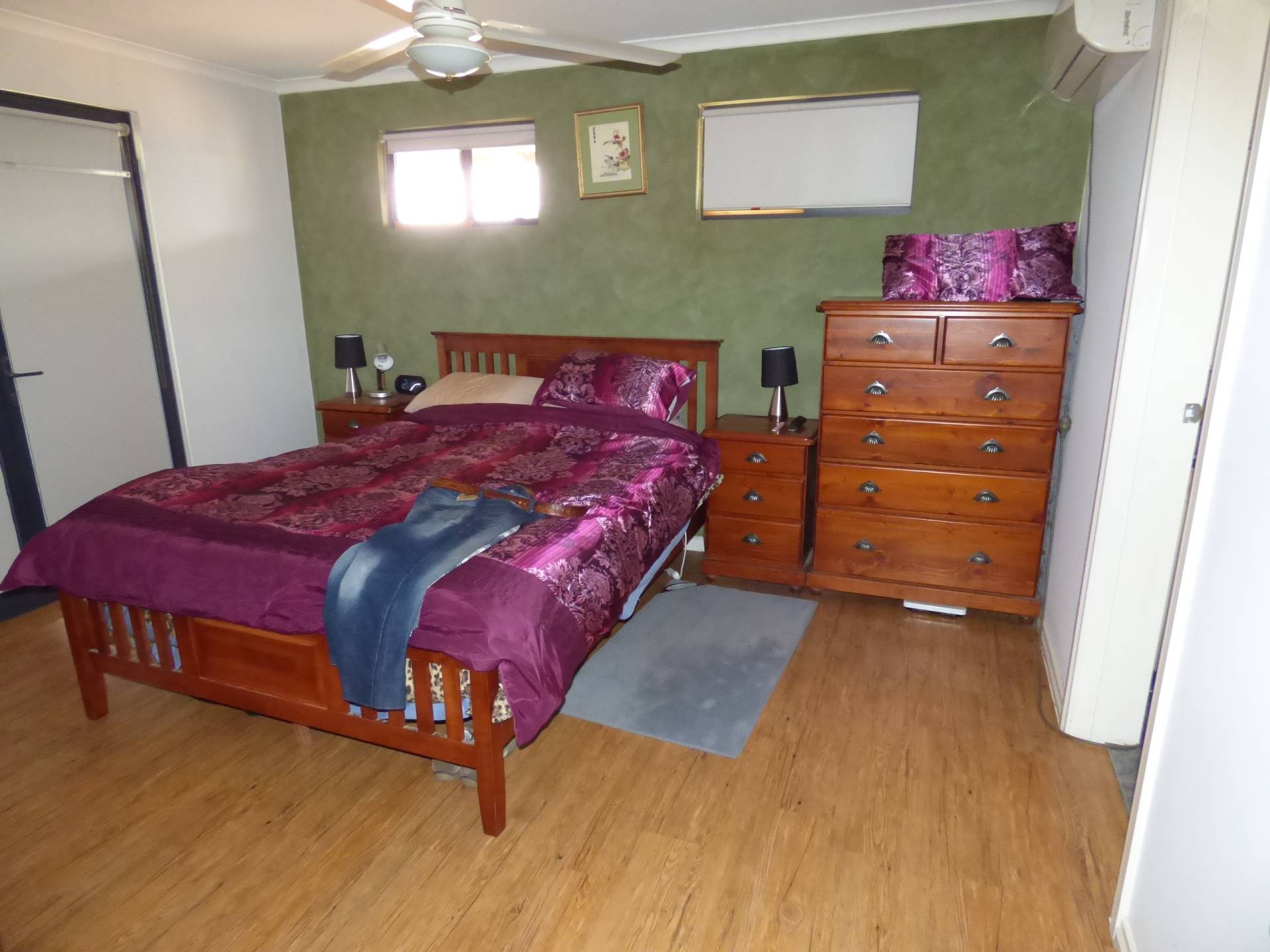 The lounge room has a Bushman wood fire for winter warmth and a split system air conditioner for summer. Off of the lounge is the master suite with a BIR and large ensuite bathroom.