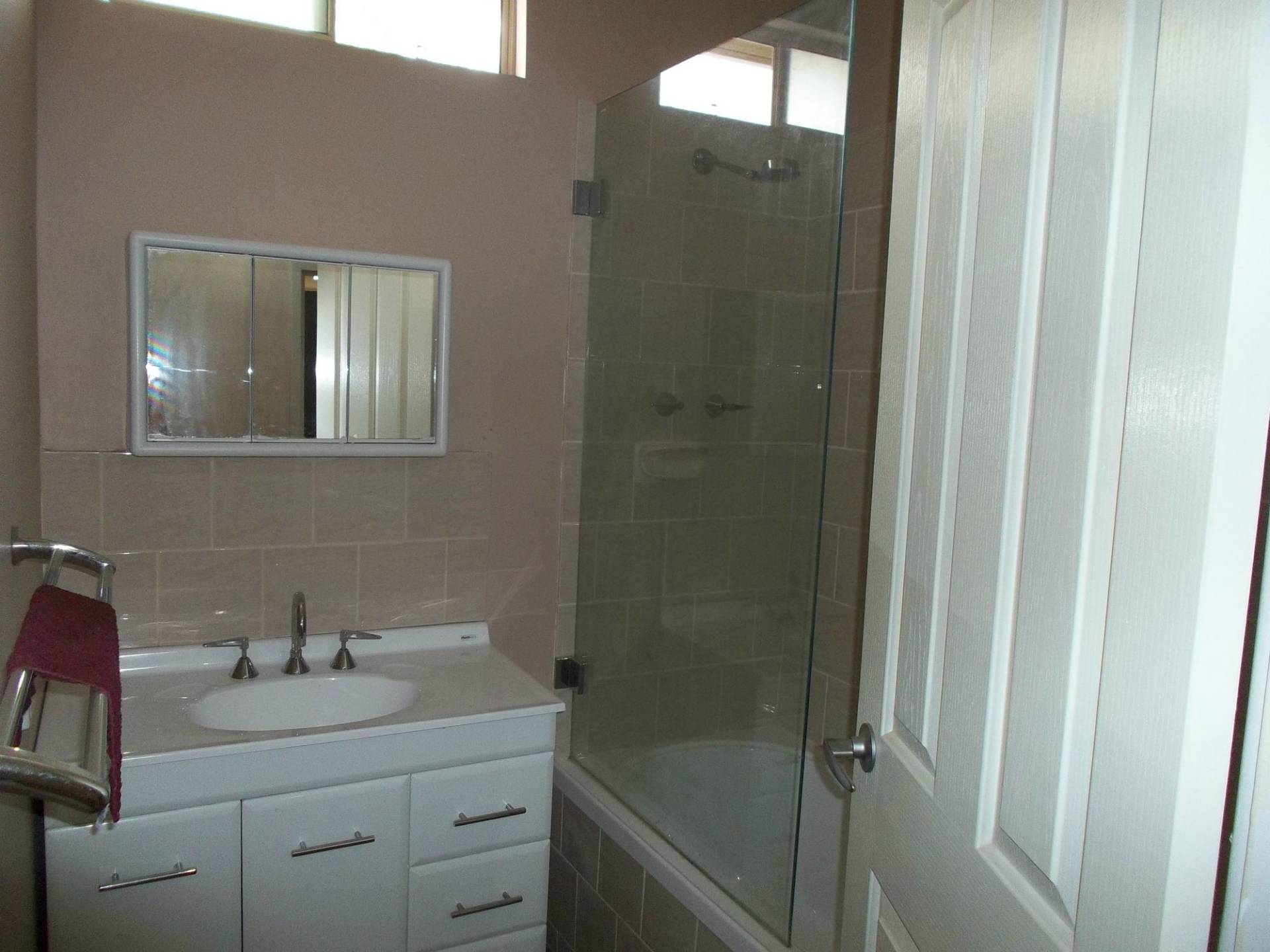 Neat bathroom and separate toilet and laundry off the kitchen.